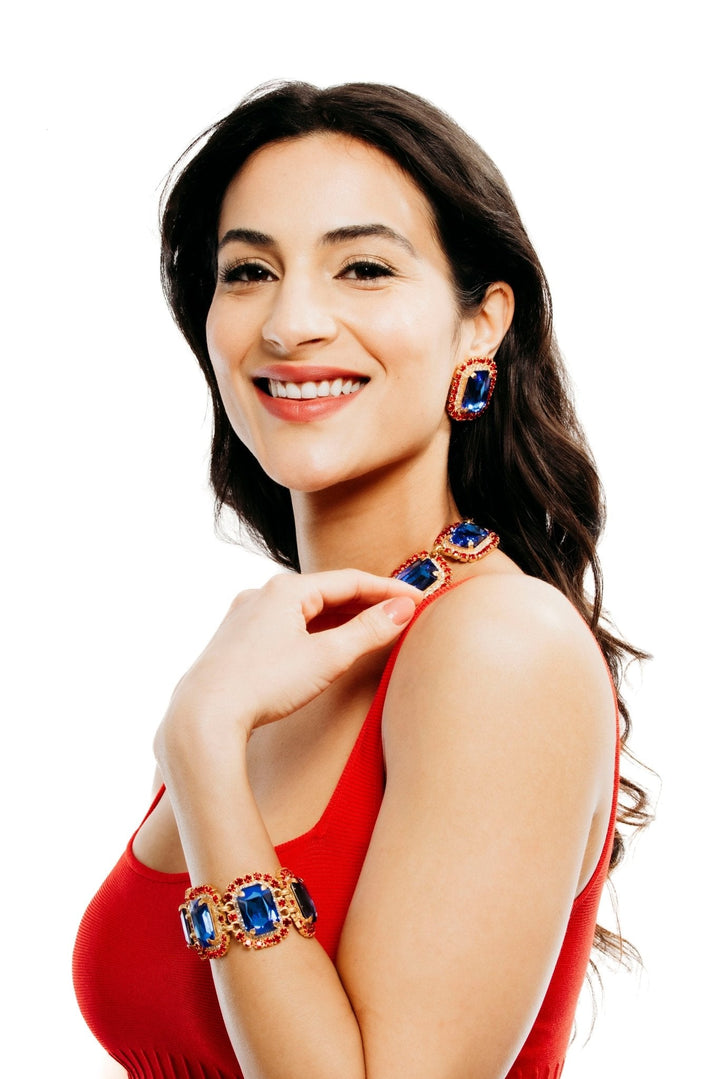 This Allira Bracelet by Elizabeth Cole – Make a bold statement with this glamorous bracelet featuring oversized octagons and sparkling crystal details. Available in patriotic red, white, and blue or classic clear crystal, this piece adds a fun touch of luxury to any occasion.