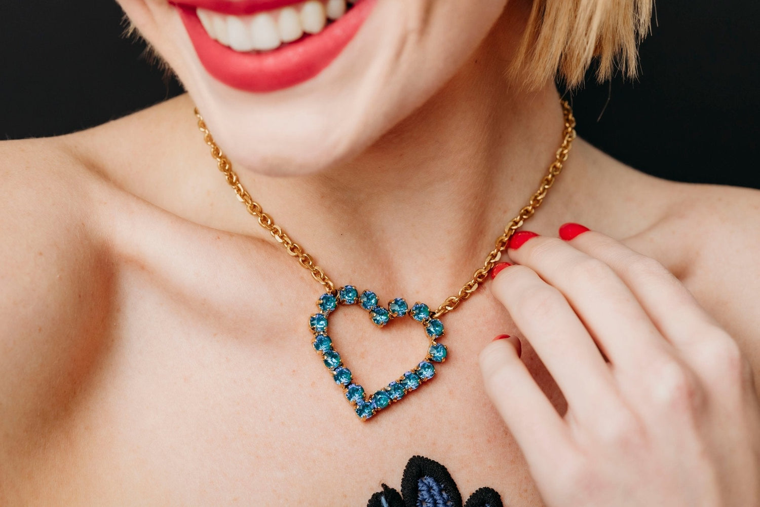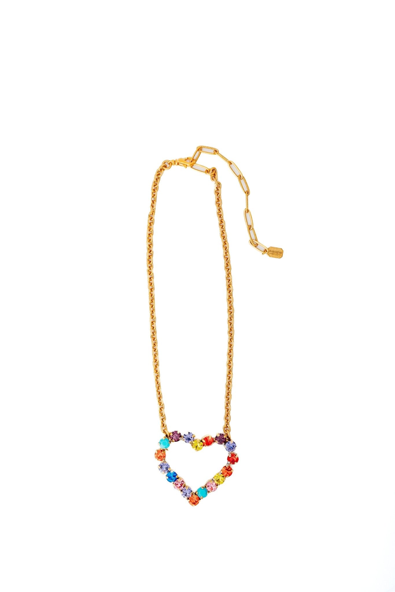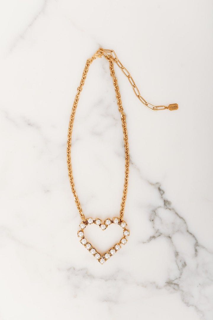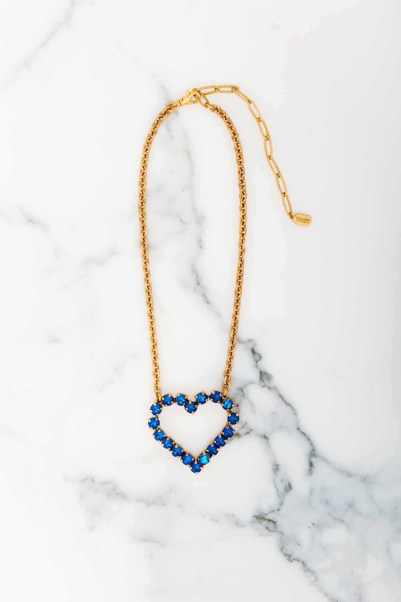 This Amora Necklace by Elizabeth Cole – A timeless piece featuring an open link chain and stationary open heart pendant. Available in blue, pink, faux pearl, and multi-crystal, this necklace adds charm and elegance to any outfit, making it perfect for any occasion.