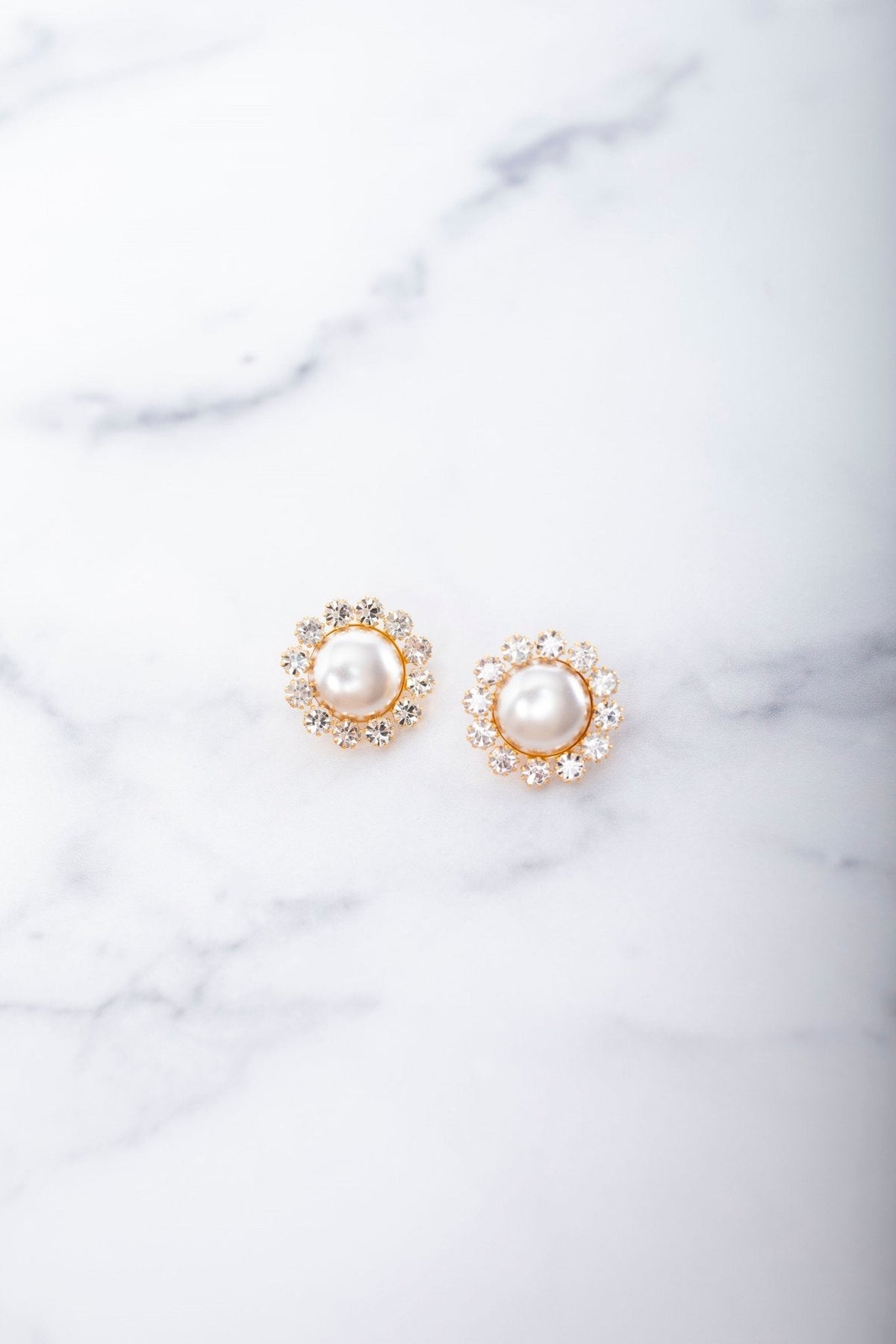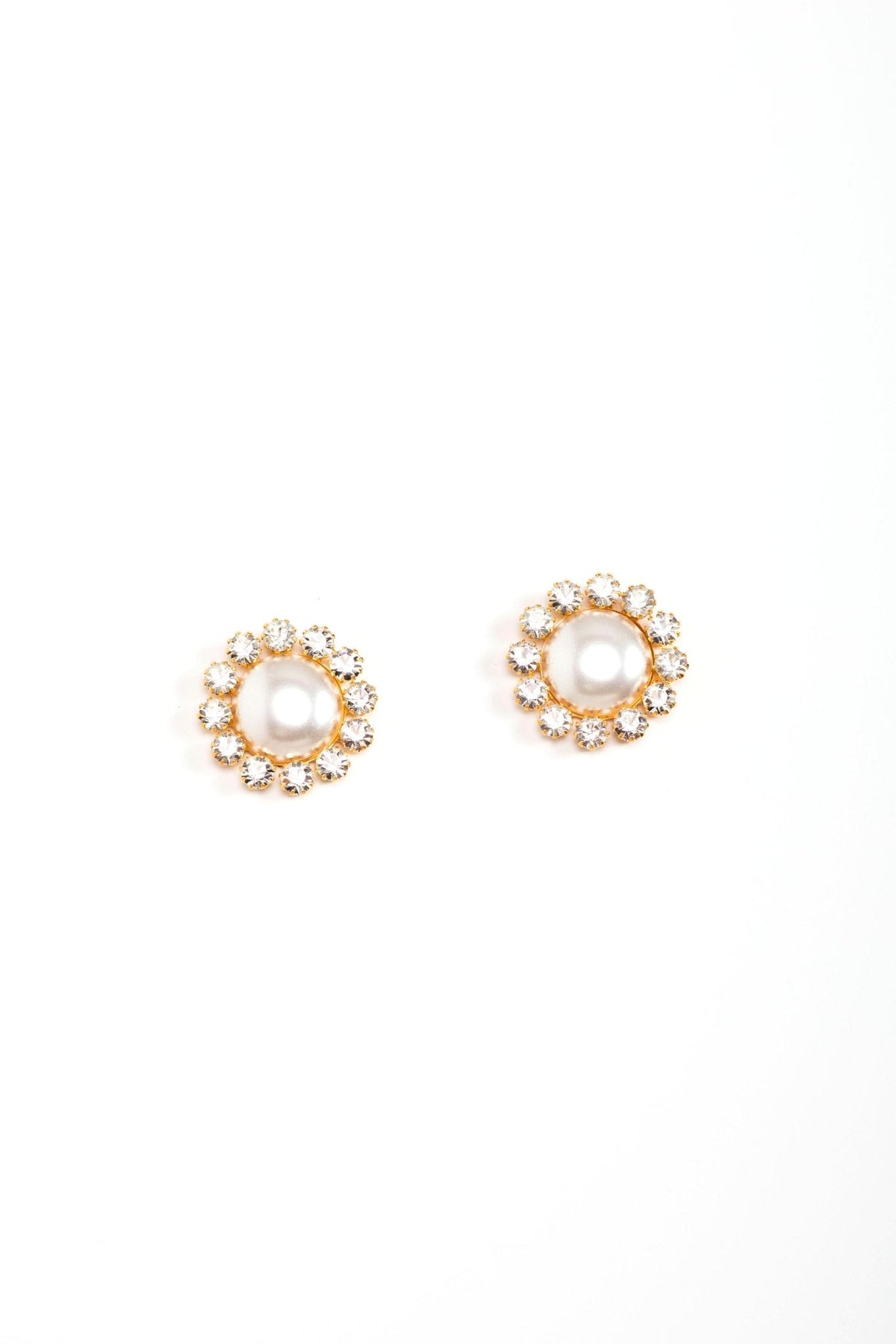 Swarovski Crystals, Glass Pearls, Glass Stones, 24kt Gold Plate, Post Closure, Made in the USA. Length: 1' / 2.54 cm, Weight: 6.7g
