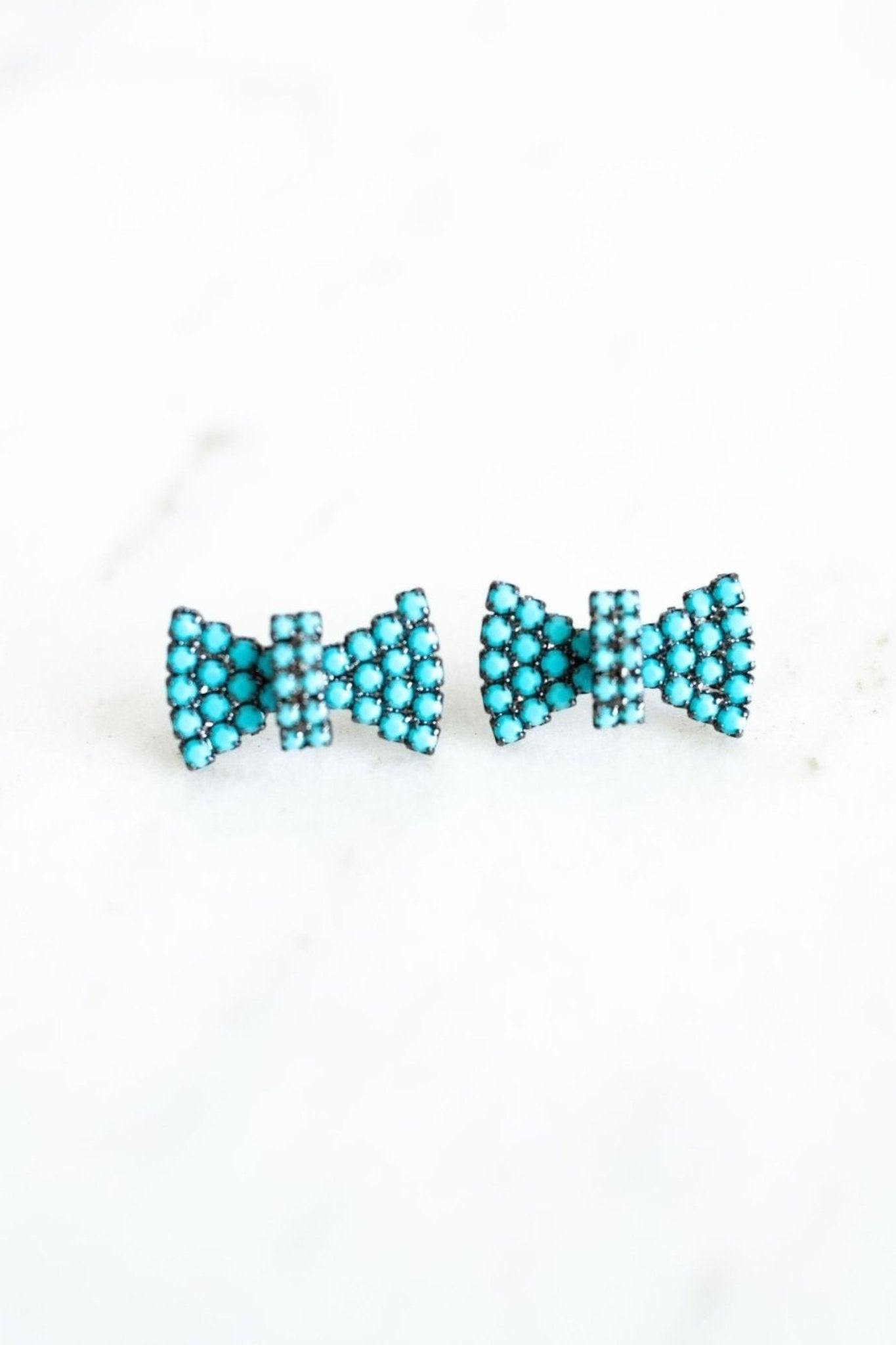 These Bitty Bow Earrings by Elizabeth Cole – Playful and petite, these crystal bow stud earrings sit jauntily on your lobes, offering a whimsical touch to your look. A fun and charming accessory for any occasion.