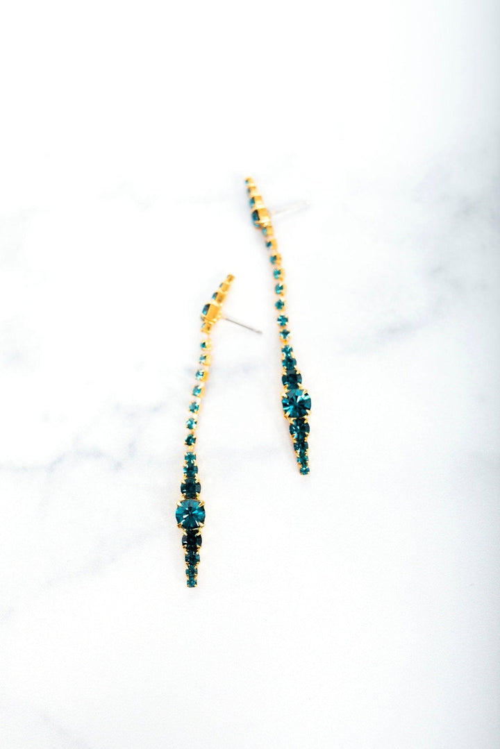 Czech Crystals, 24kt Gold Plate, Post Closure, Made in the USA. Length: 2.5' / 6.3 cm, Weight: 2.4g