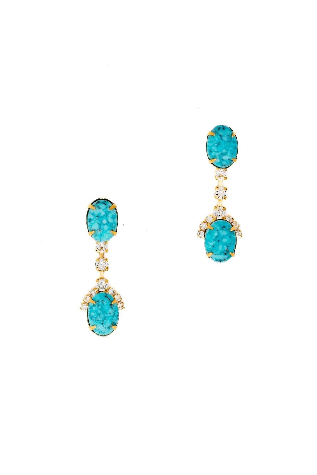 Faux Turquoise, Crystals, 24kt Gold Plate, Post Closure, Made in the USA