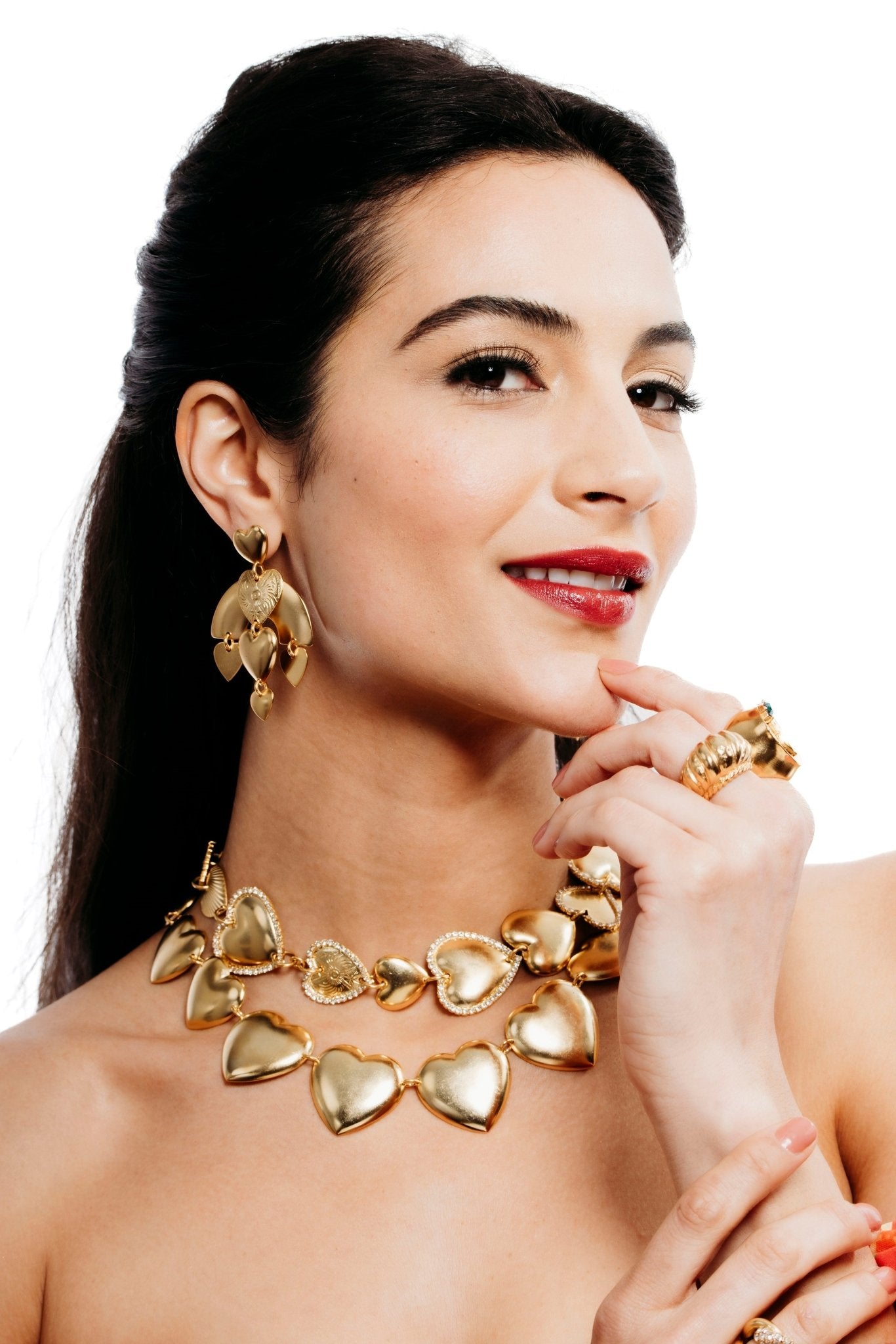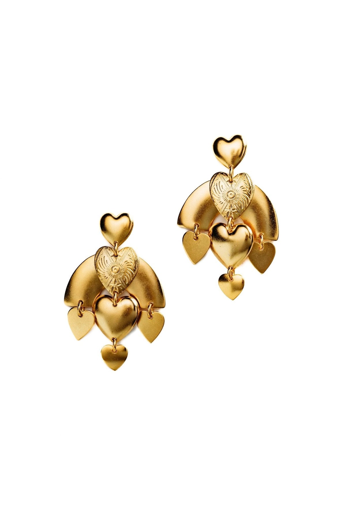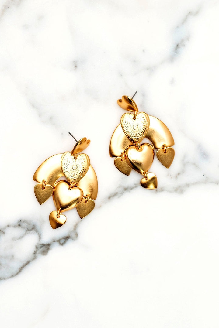 These Cara Earrings by Elizabeth Cole – Spread love with these whimsical earrings featuring graduated golden hearts that swing from golden arches. A charming and unique piece, perfect for adding playful elegance to any look.