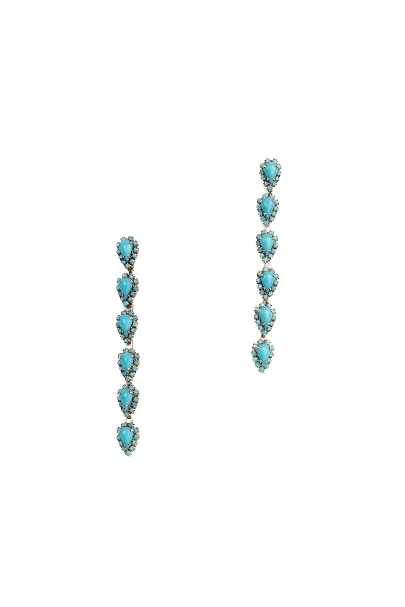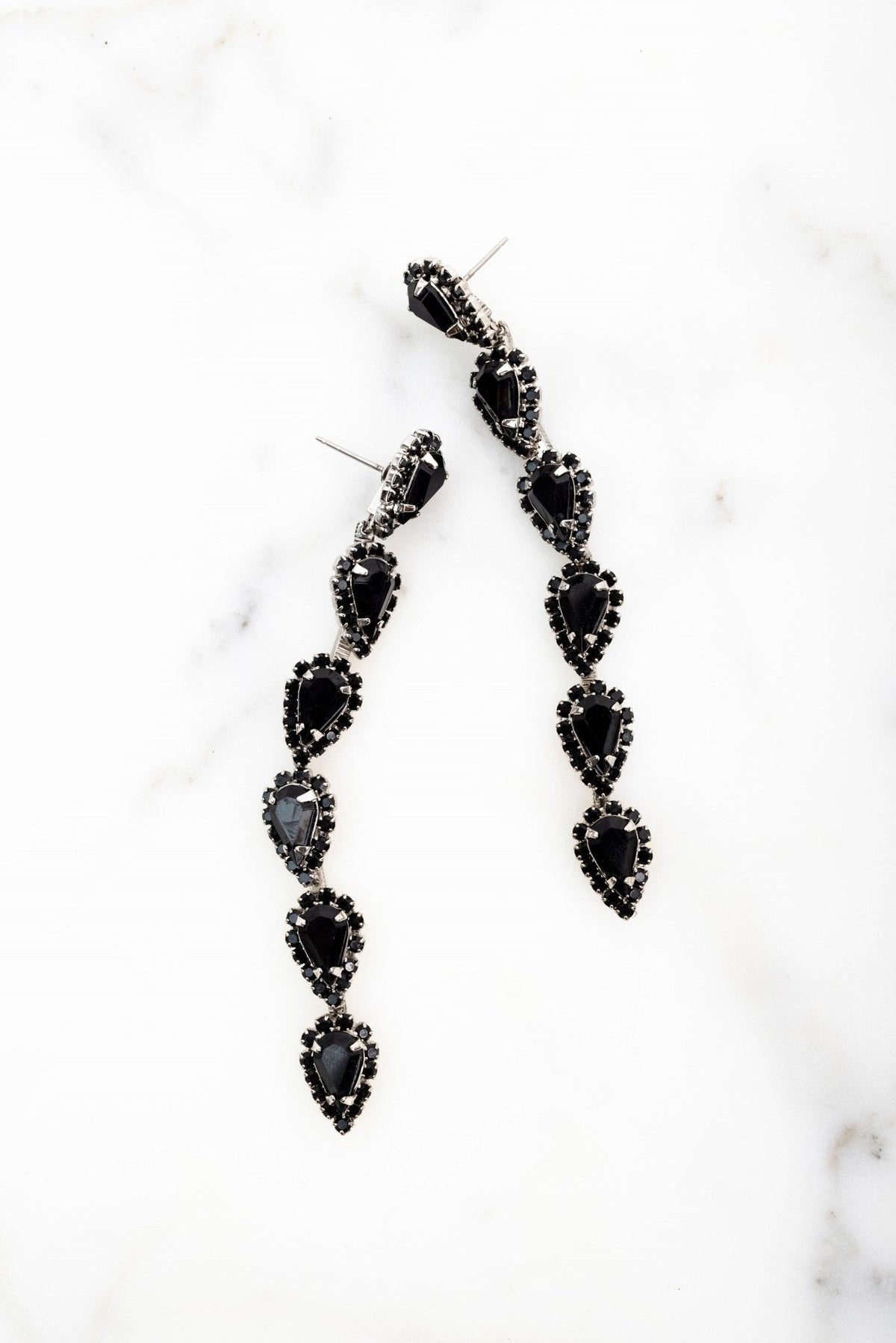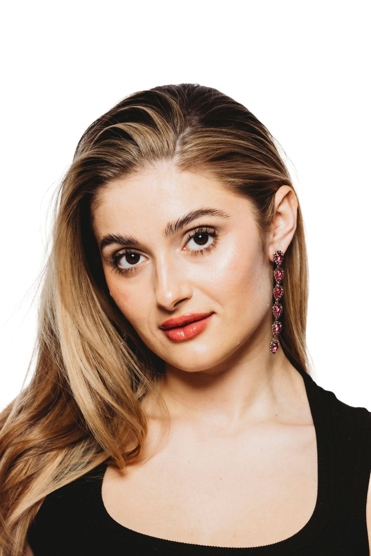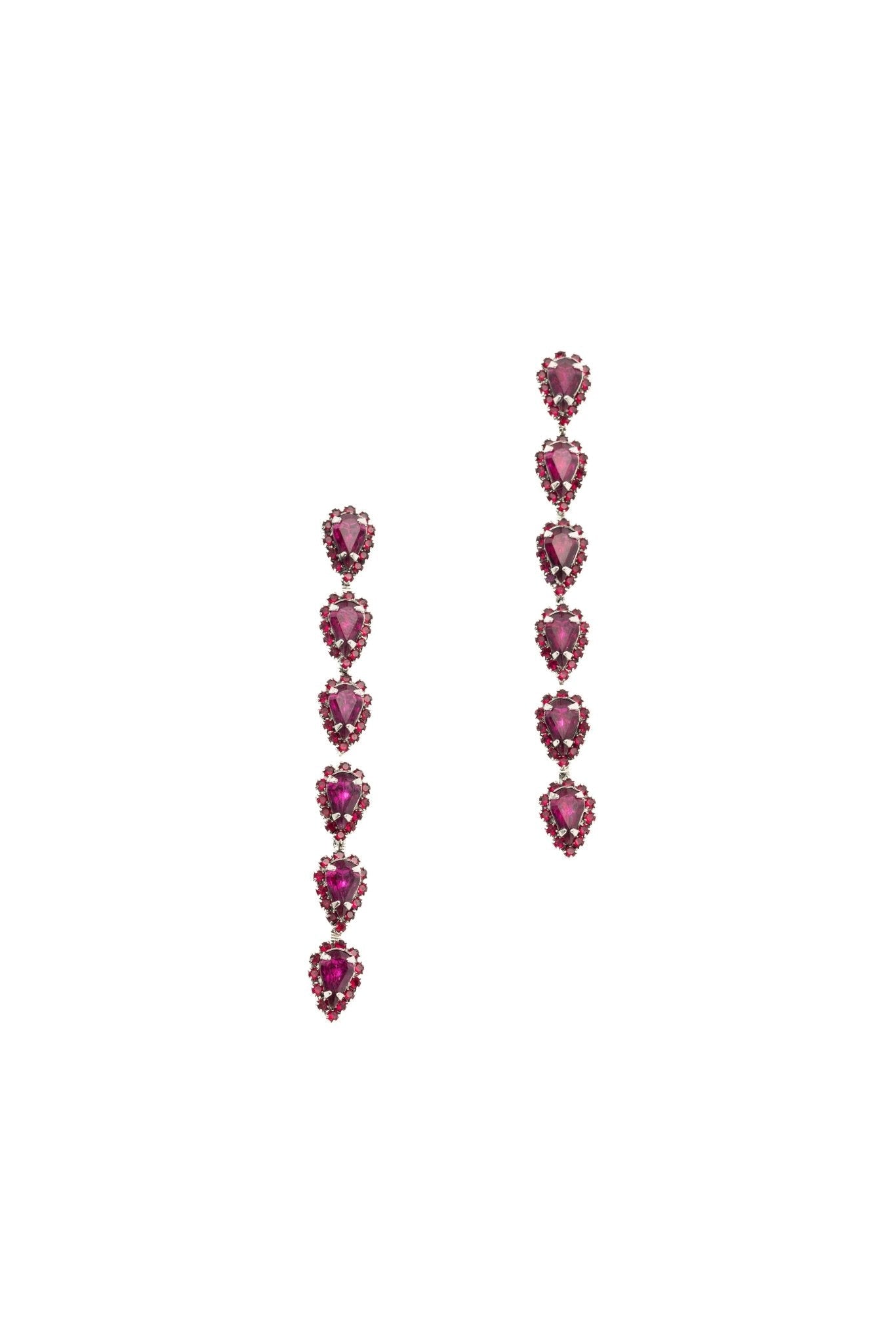 These Catríona Earrings by Elizabeth Cole – Playful and whimsical, these long linear earrings feature glittering petite pears surrounded by crystal details. Available in a variety of colors, they add a touch of sparkle to any outfit.