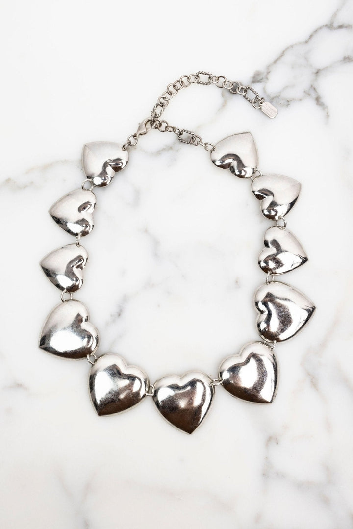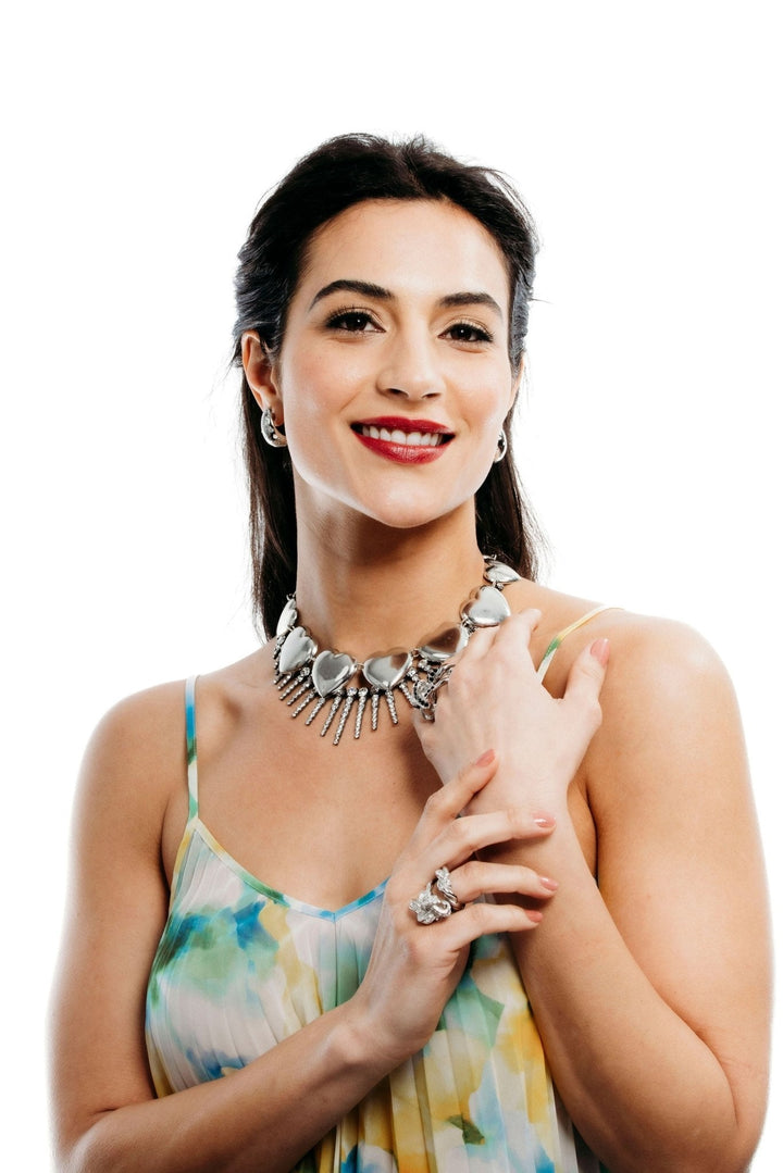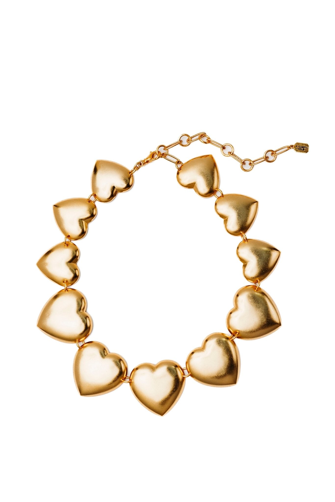 This Chrysilla Necklace by Elizabeth Cole – A heartwarming addition to your jewelry box, the Chrysilla Necklace features a playful cluster of golden hearts that make a bold, quirky statement. Perfect for any occasion.