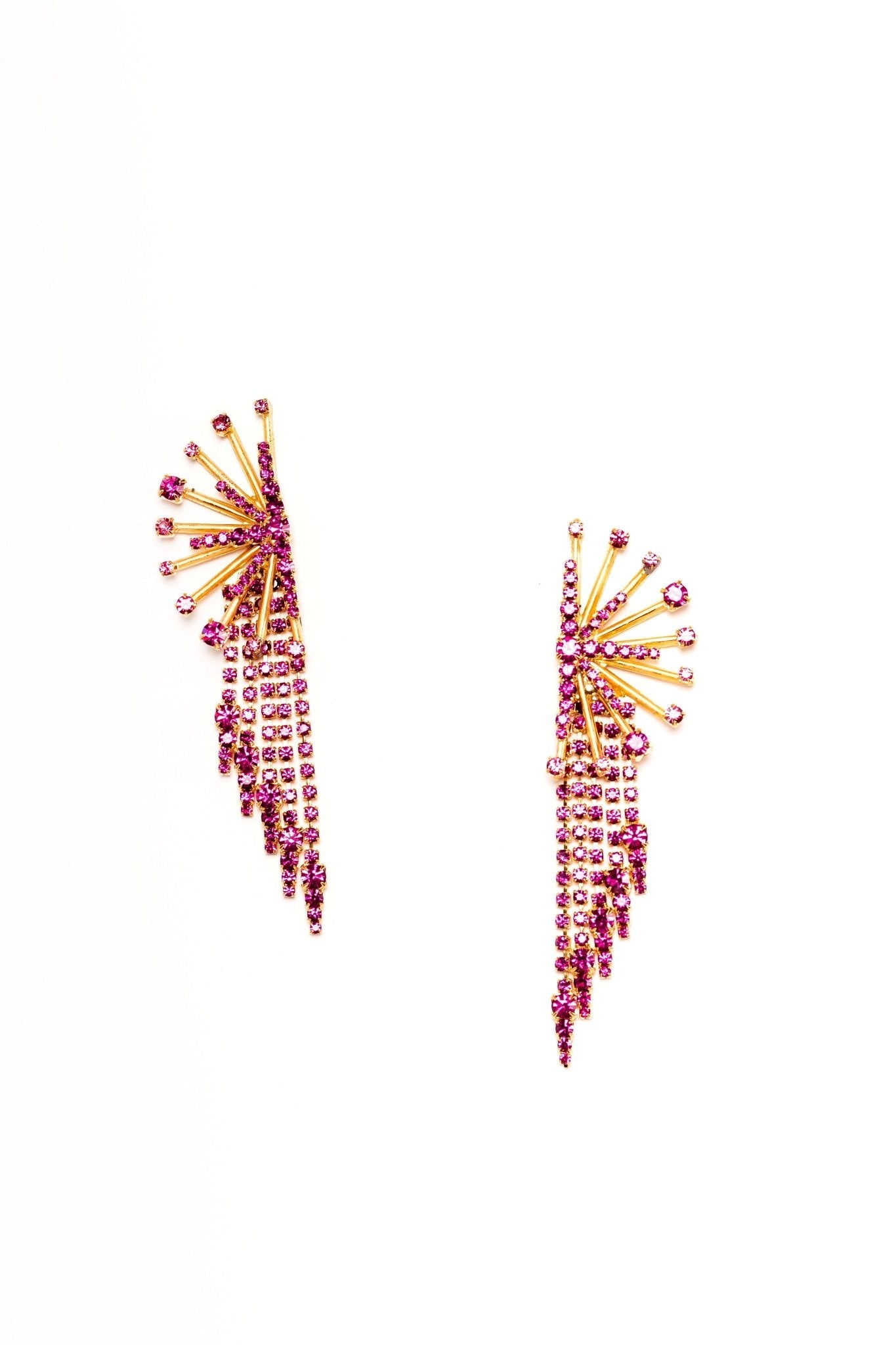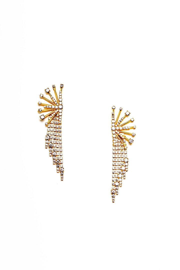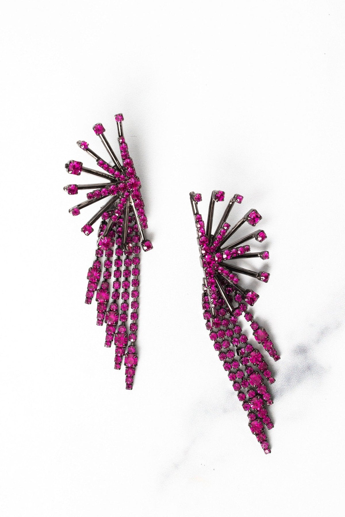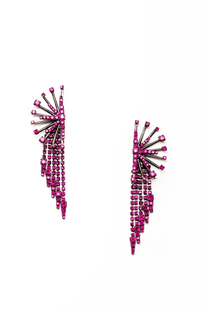 These Cressida Earrings by Elizabeth Cole – Make a statement with the Cressida Earrings, featuring a spray of glittering crystals and a dazzling crystal fringe. Available in various colors, these earrings elevate any look to the next level.