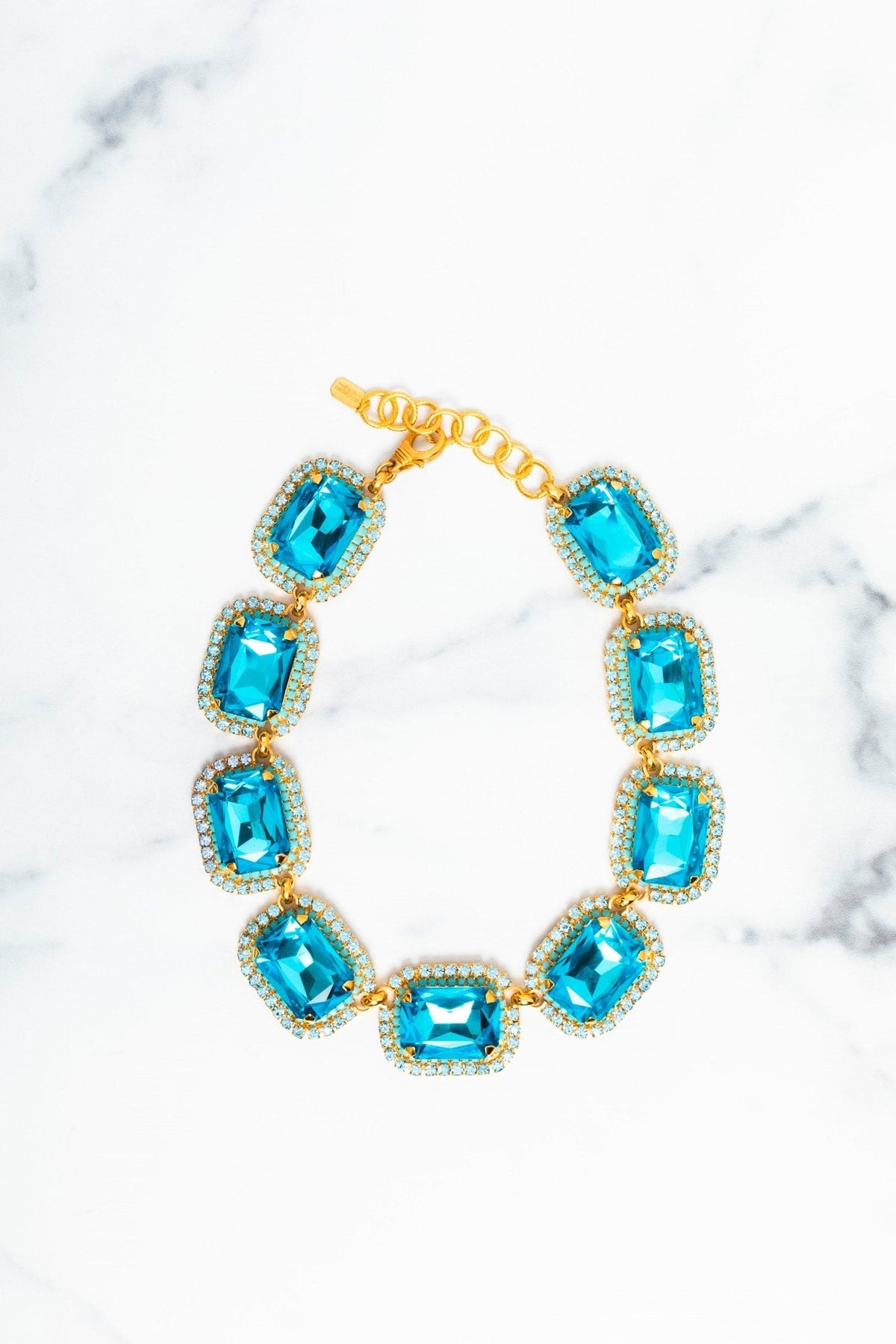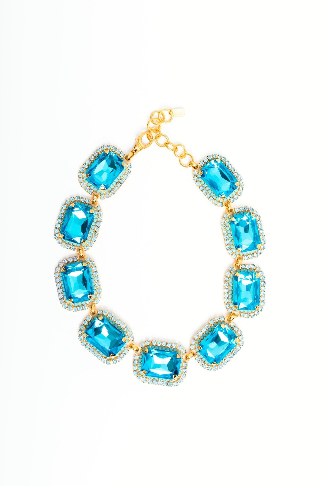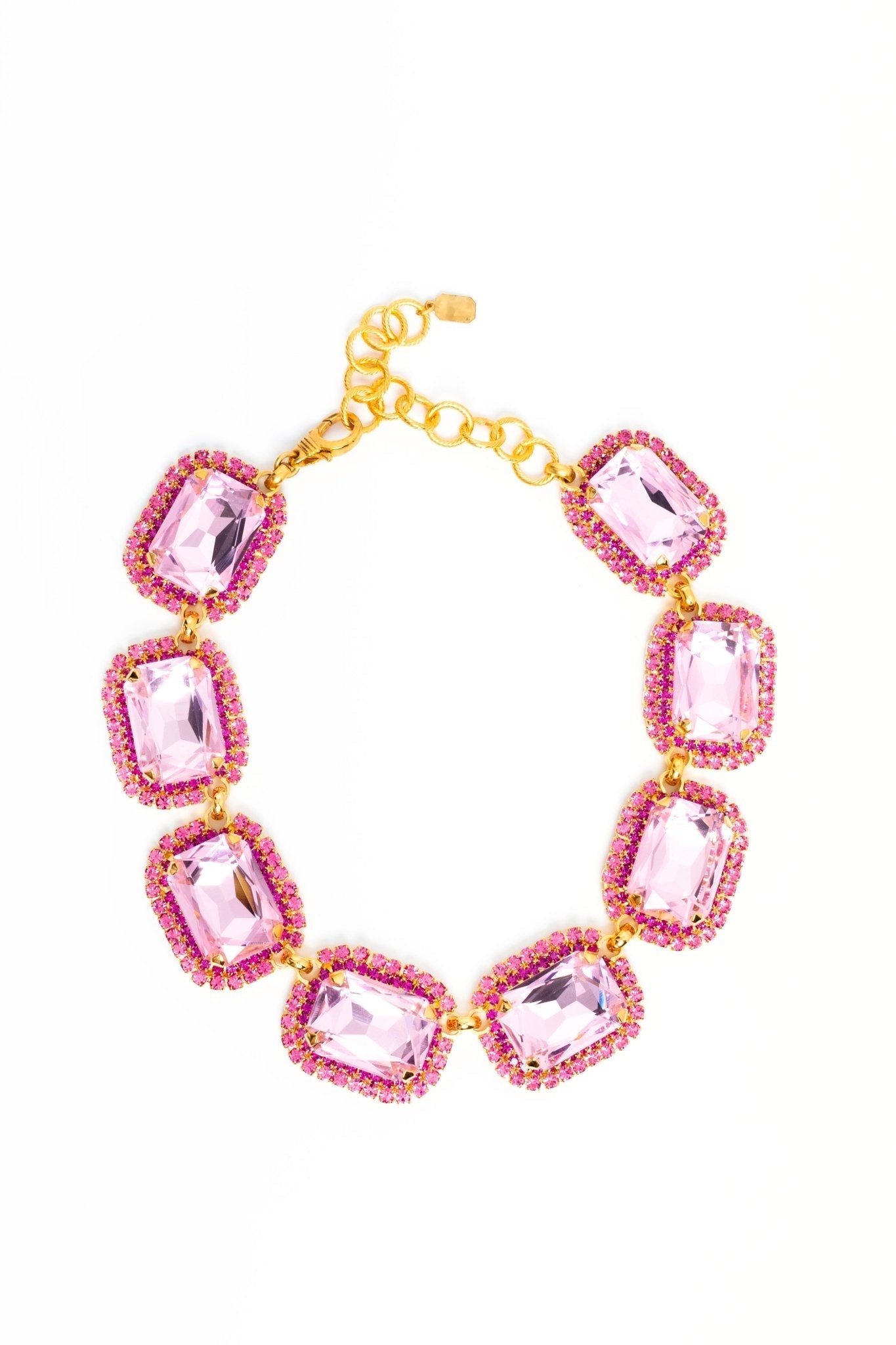 This Danika Necklace by Elizabeth Cole – Make a bold statement with the Danika Necklace, featuring oversized octagons flanked with petite crystals in ombre pinks or blues. A triple threat of style, sass, and sparkle.