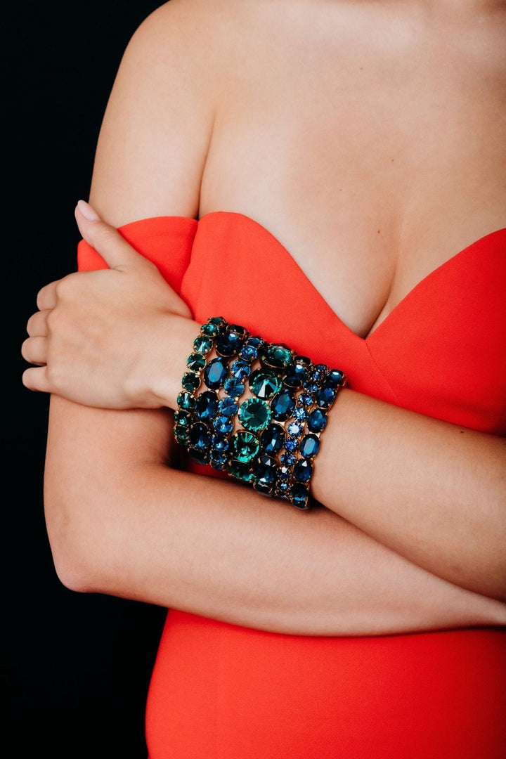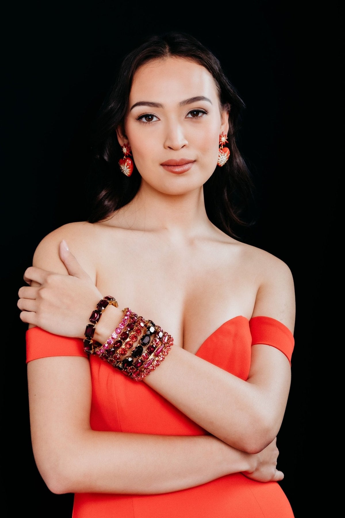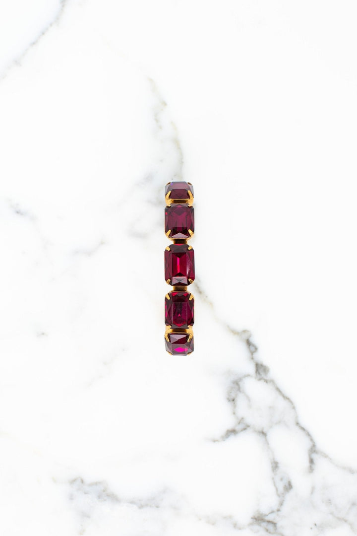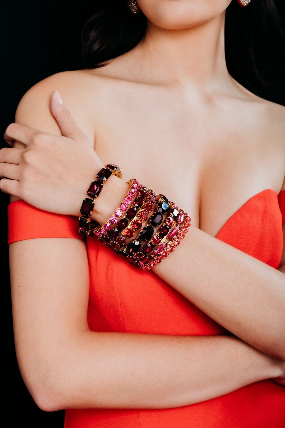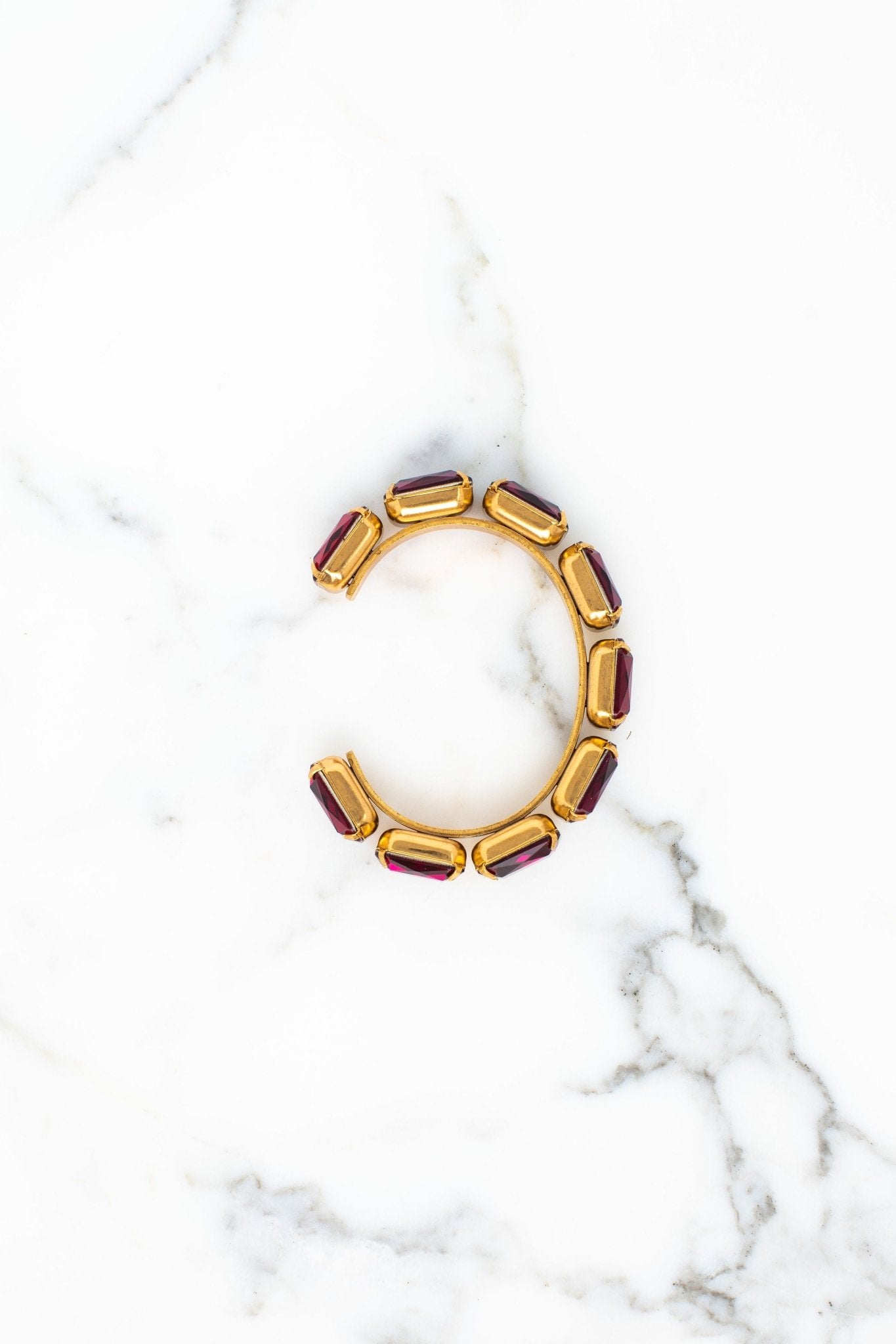 This Daria Bracelet by Elizabeth Cole – Shine brightly with the Daria Bracelet, an oversized crystal cuff that adds boldness and confidence to any outfit. Available in burgundy, pink, and blue, it’s perfect for turning heads.