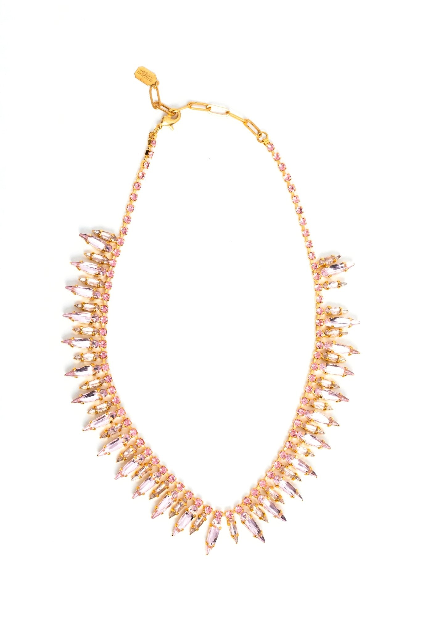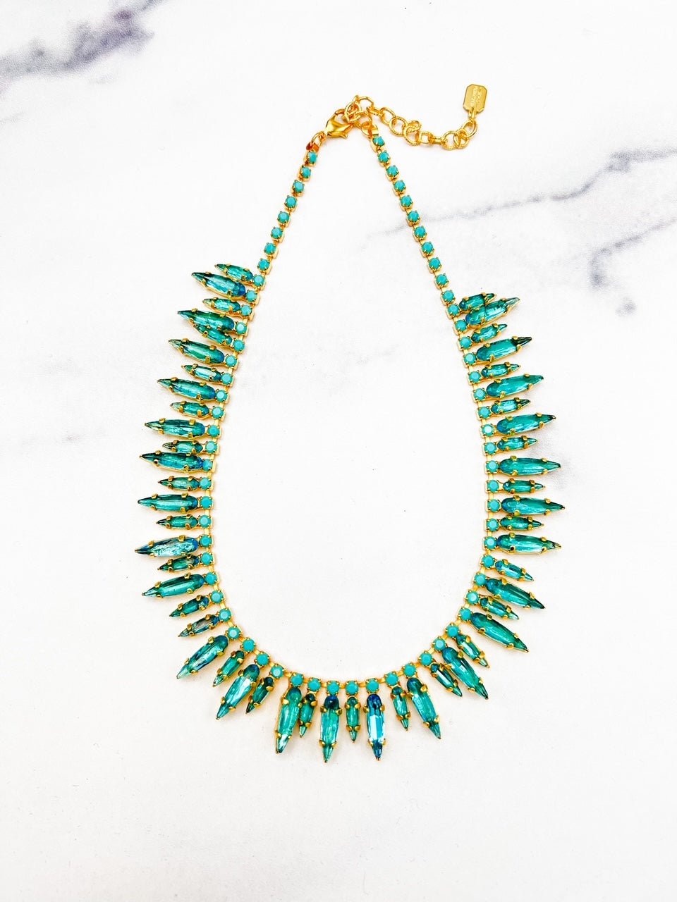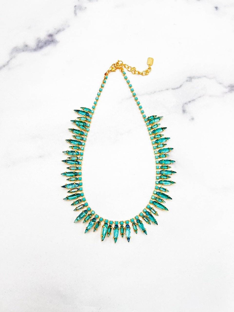 This Davina Necklace by Elizabeth Cole – Featuring alternating pear stones, the Davina Necklace provides an edgy, modern vibe. Whether worn on its own or as part of a personalized ensemble, it’s perfect for adding a pop of color with options in pale pink or brilliant blue.