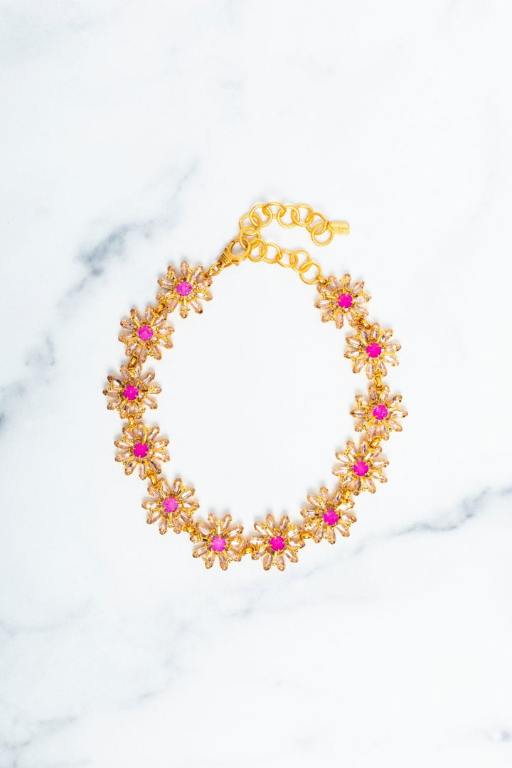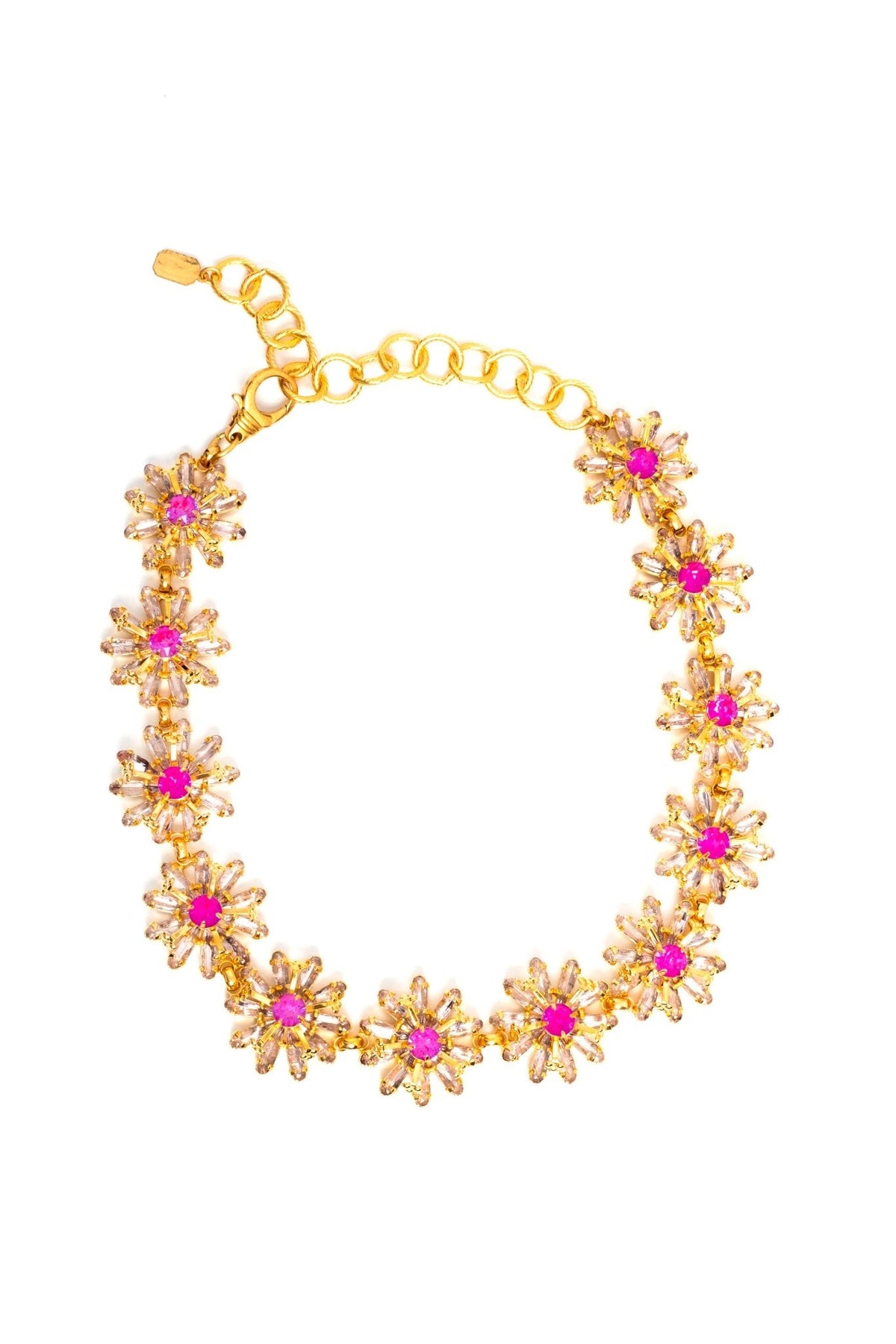 This Deserae Necklace by Elizabeth Cole – Adorn yourself with the Deserae Necklace, featuring finely crafted crystal flowers available in soft pink or bright yellow. This elegant statement piece brings abundant flowery detail to your look.