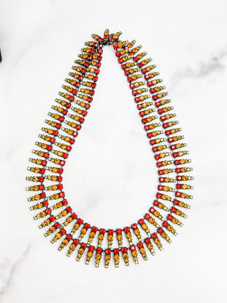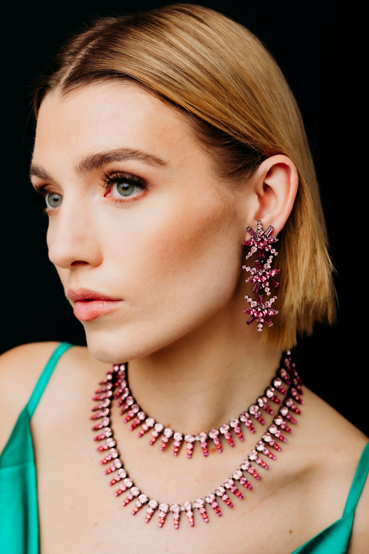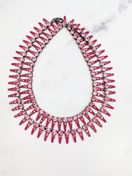 This Francesca Necklace by Elizabeth Cole – Make a bold statement with collections of graduated premium Czech crystals. Wear it single and long or double up for added style. Available in blue, classic jet, or pink.