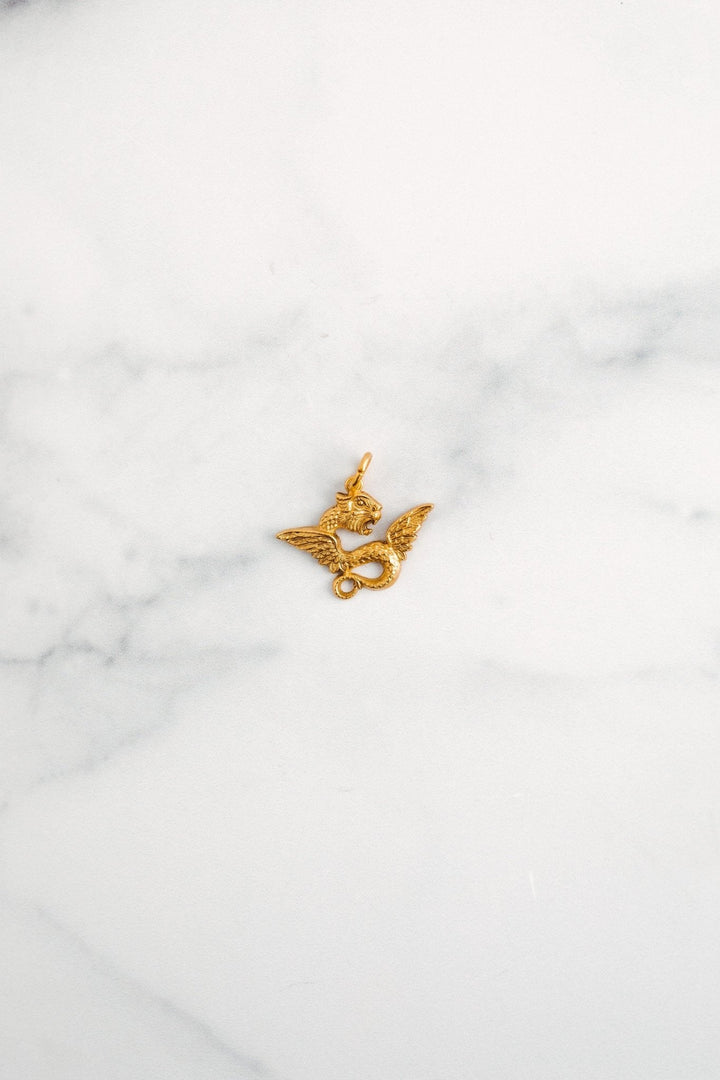 This Gryphon Charm by Elizabeth Cole adds a touch of myth and fantasy to your look. Its intricate design, inspired by the legendary creature, brings a whimsical and adventurous flair to any chain. Perfect for personalization, this charm offers a unique way to embrace both elegance and playfulness in your jewelry collection.