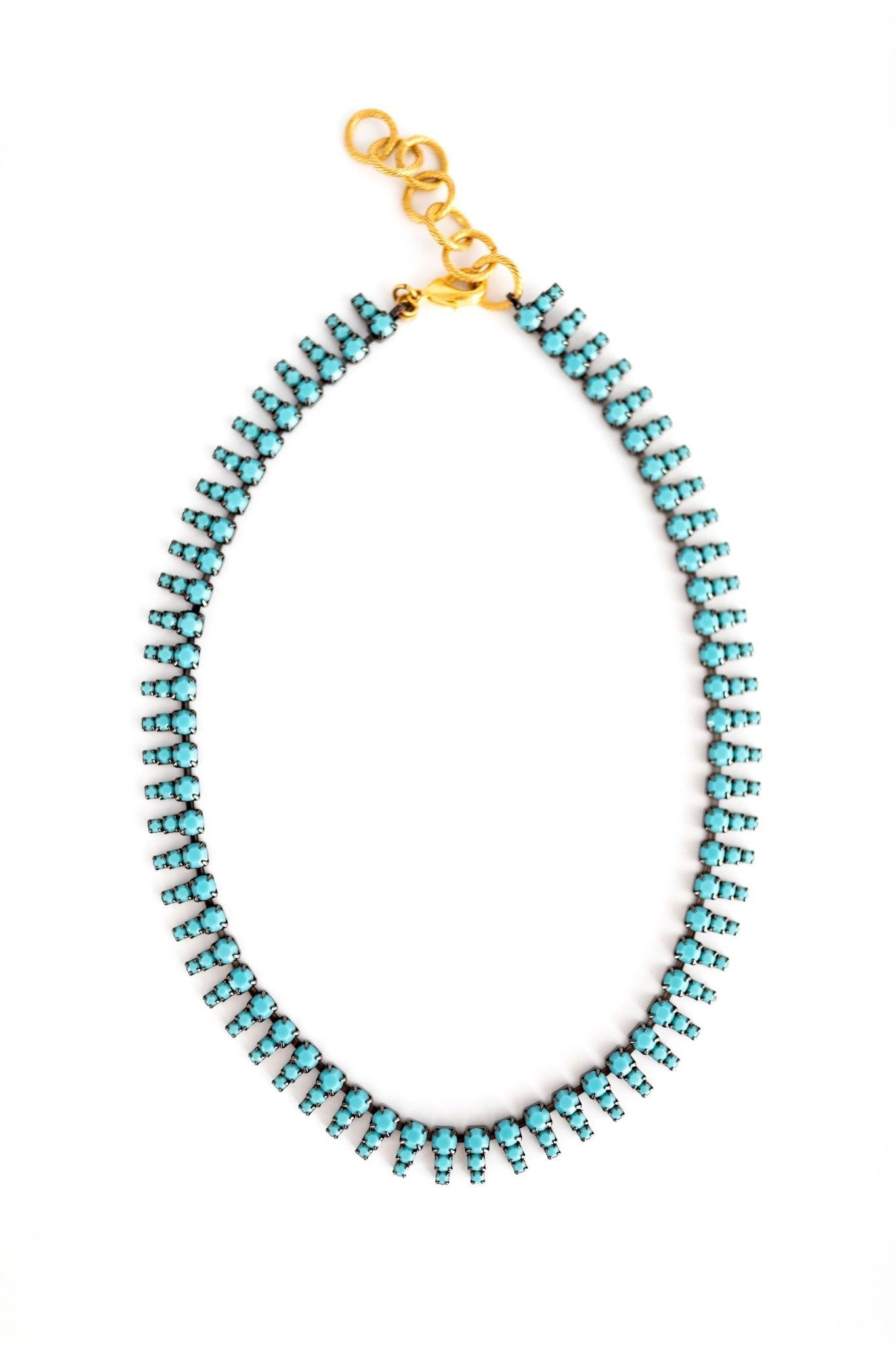 Crafted with Austrian crystals and 24kt gold plate. Length: 15' with a 3 1/2' extender. Lobster claw closure. Proudly made in the USA.