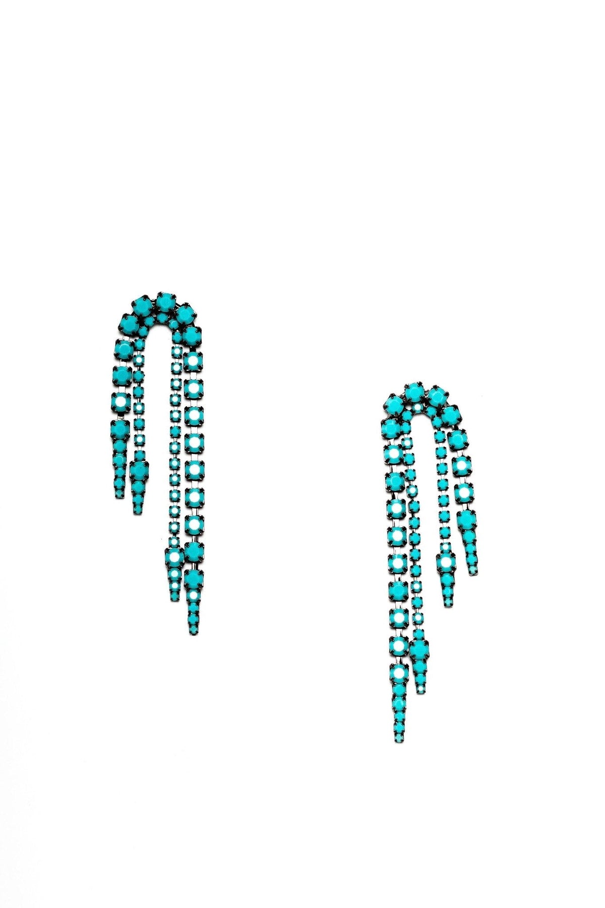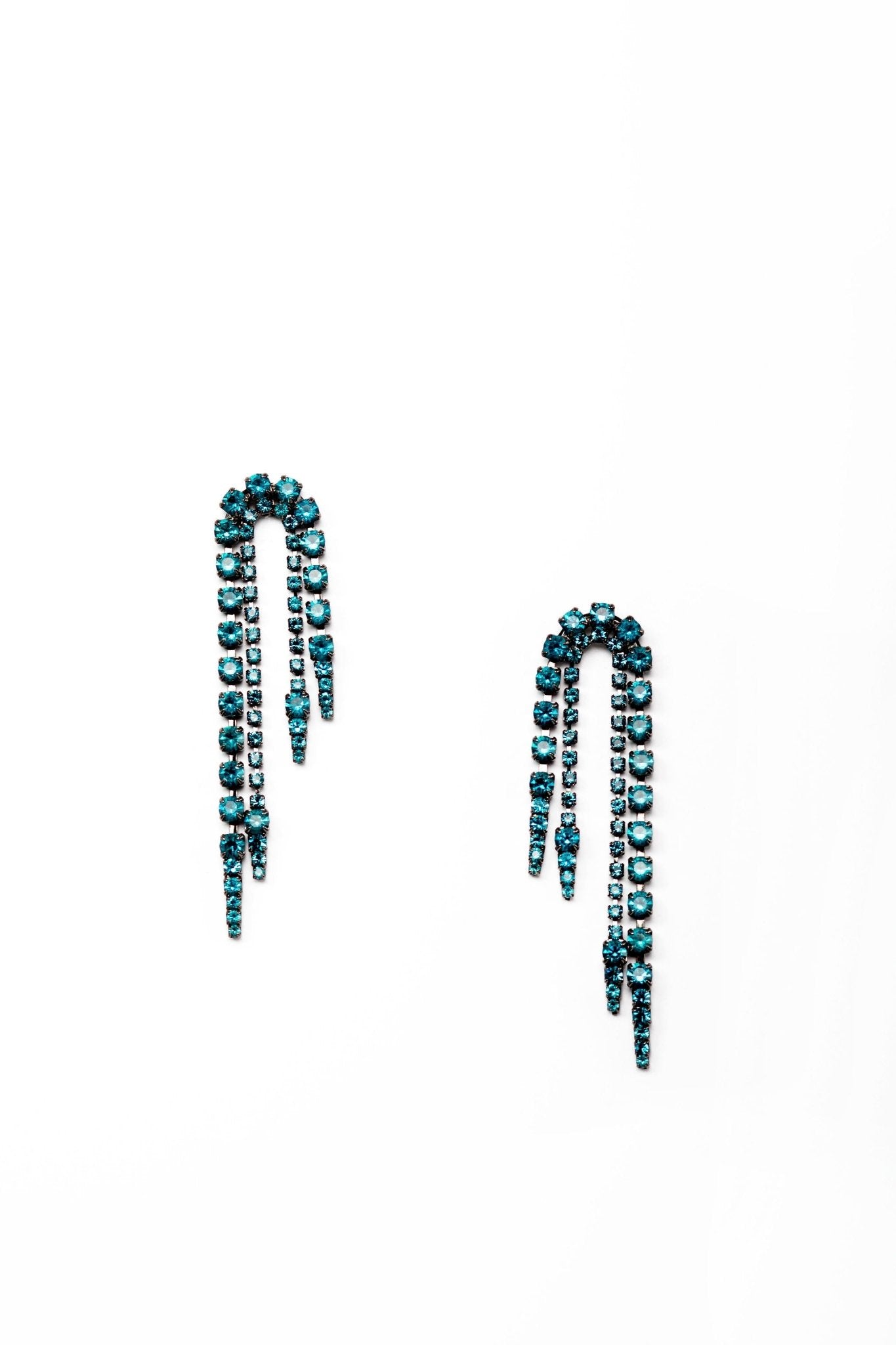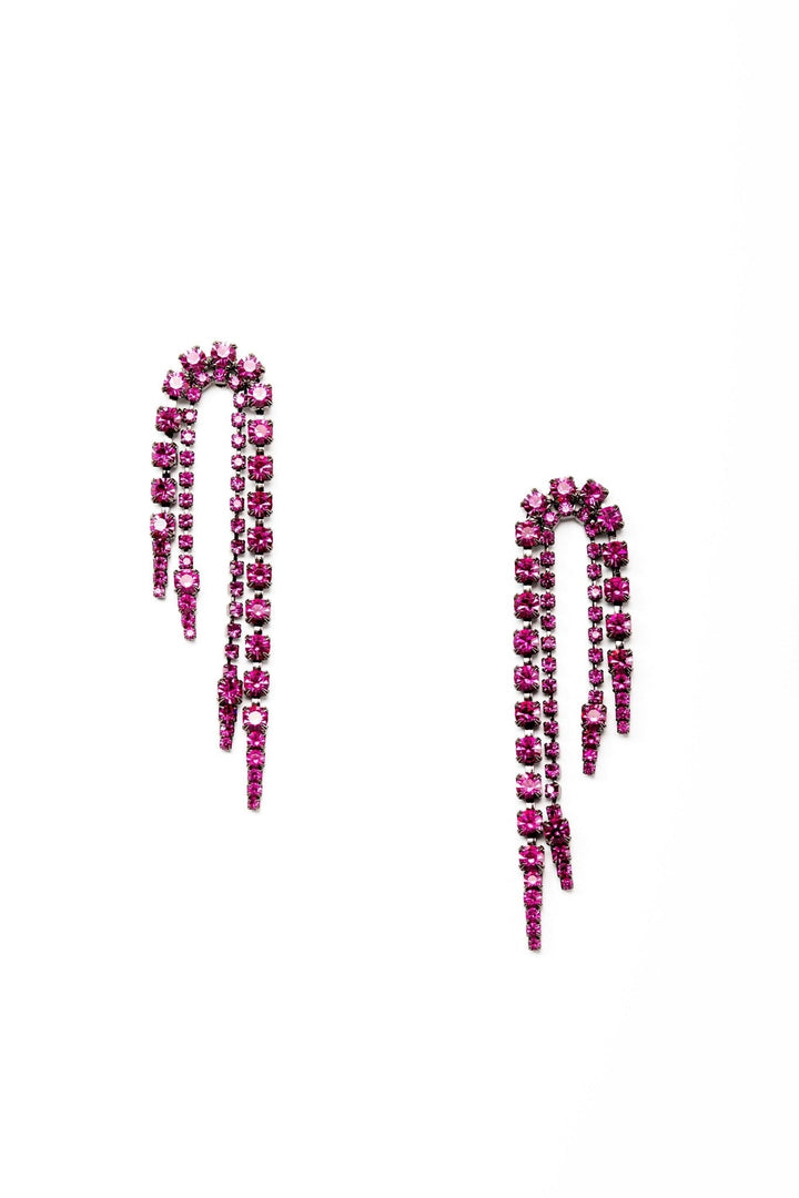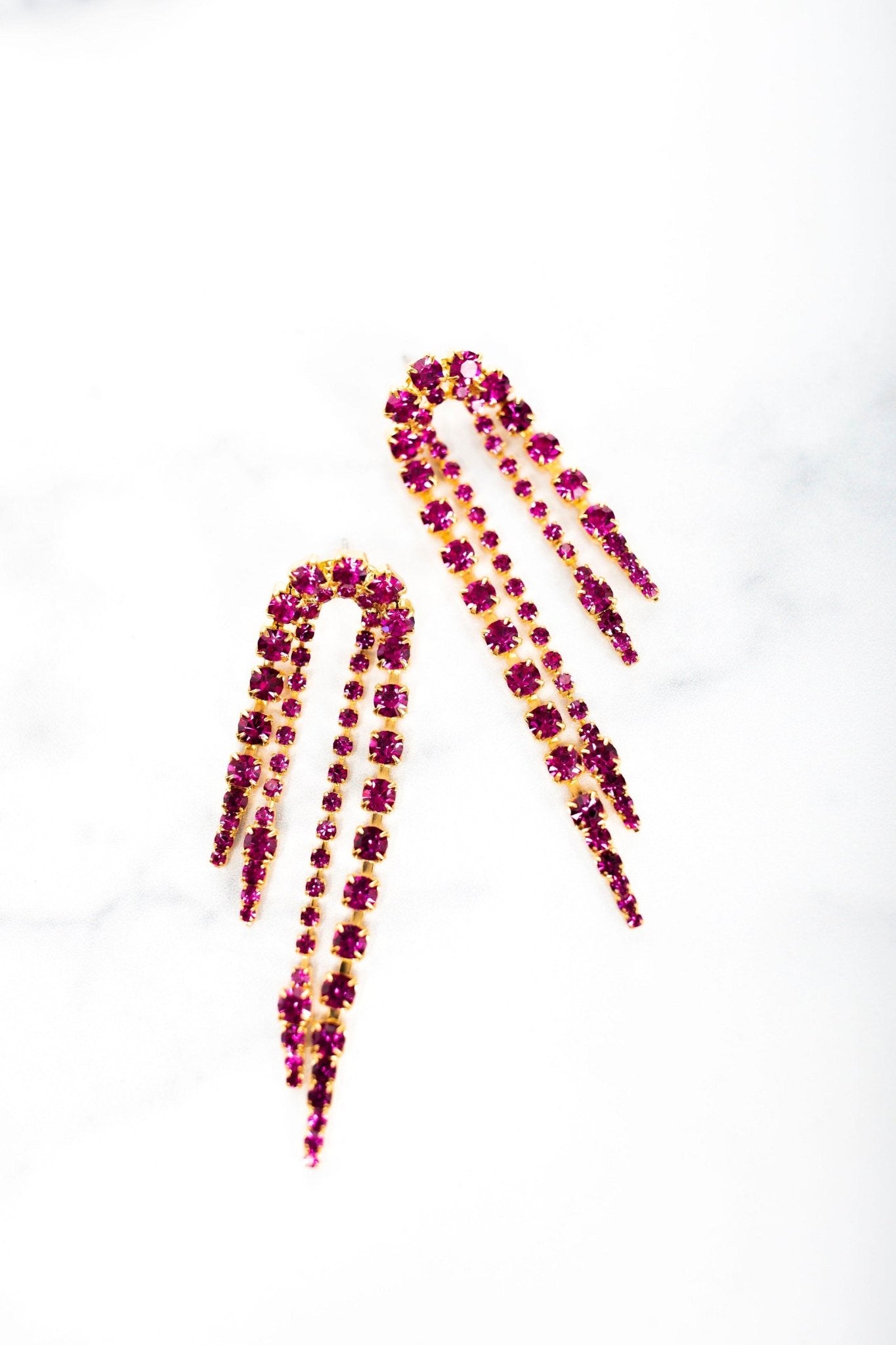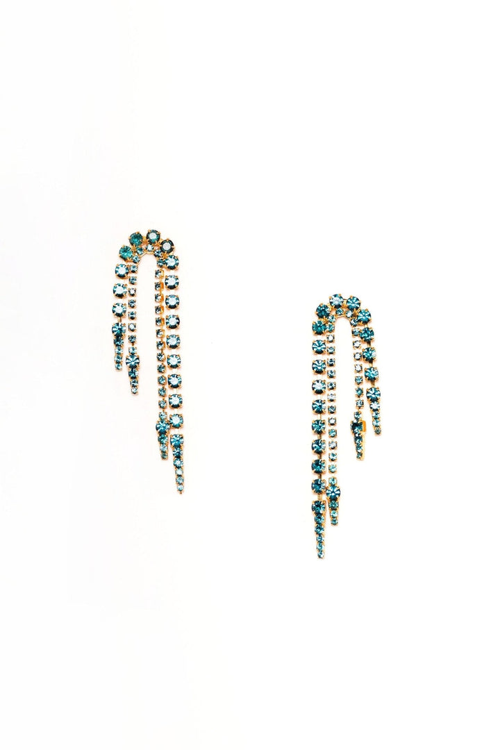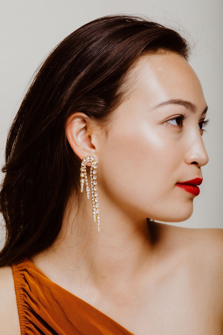 These Jayla Earrings by Elizabeth Cole offer an asymmetrical U shape design with glittering graduated crystals in vibrant colors, capturing the meaning of their name, 'to ascend.' These earrings are perfect for making a statement and elevating your look.