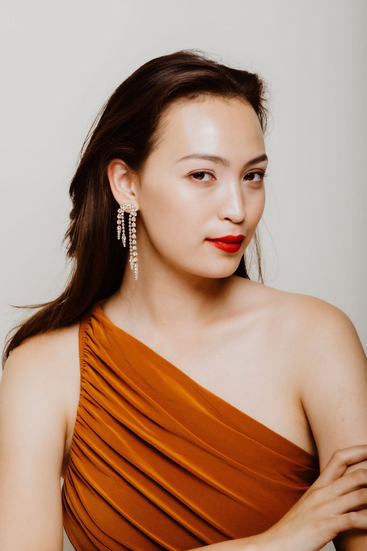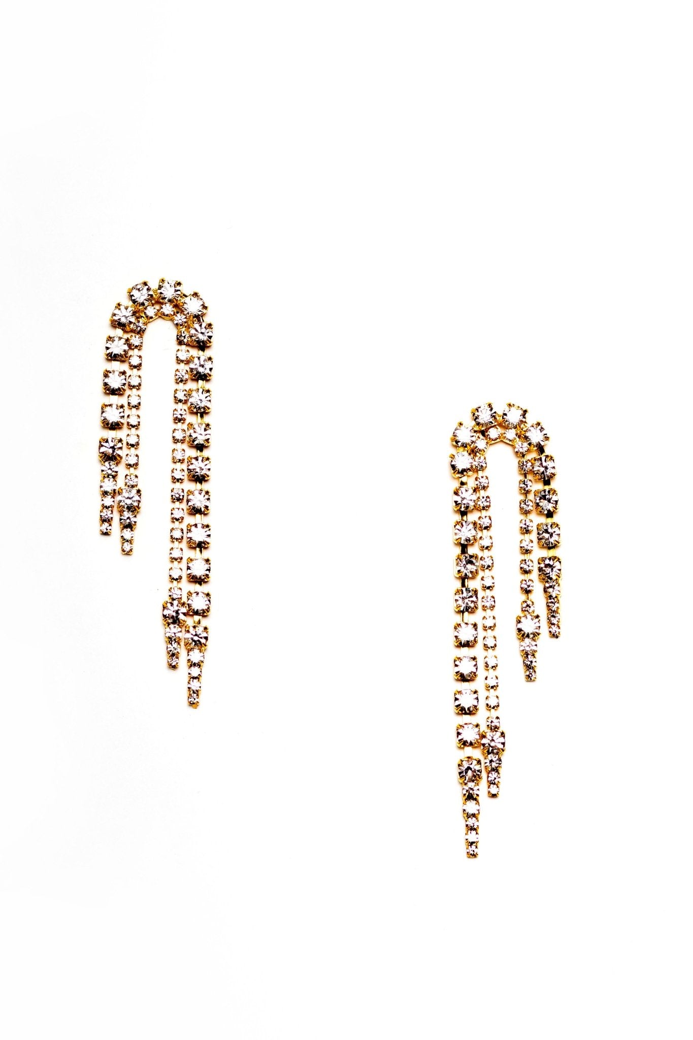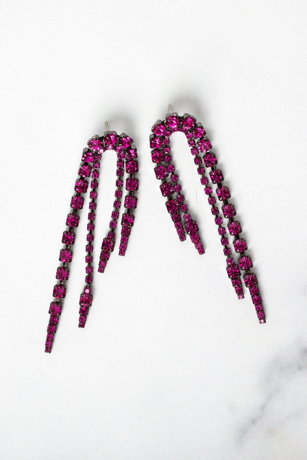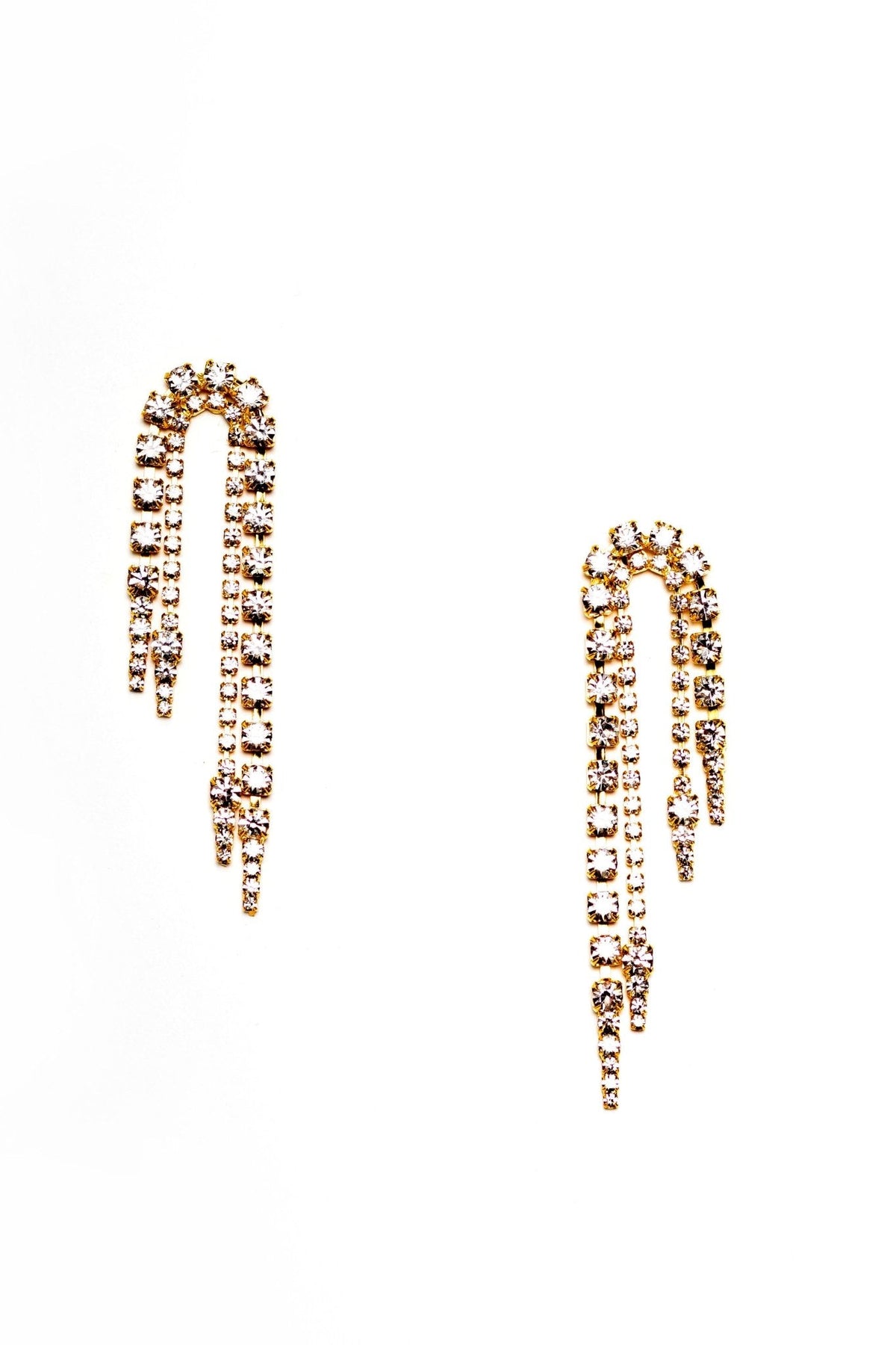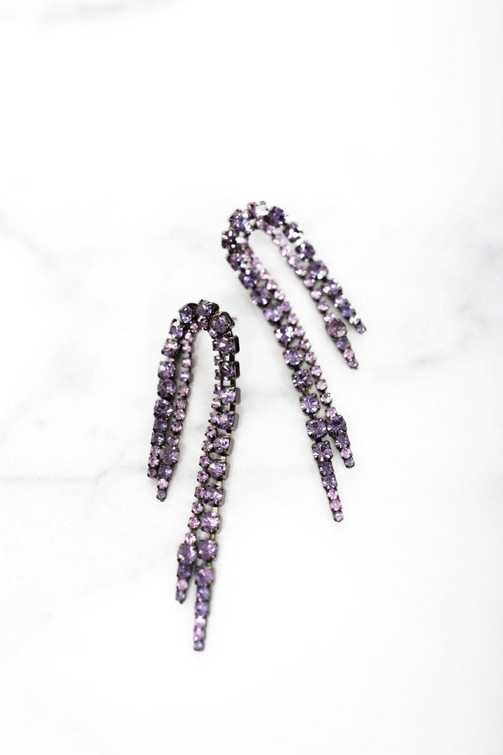 Czech crystals set in 24kt gold or hematite plate. Length: 3in (7.6cm), Weight: 7.3g. Post closure. Proudly made in the USA.