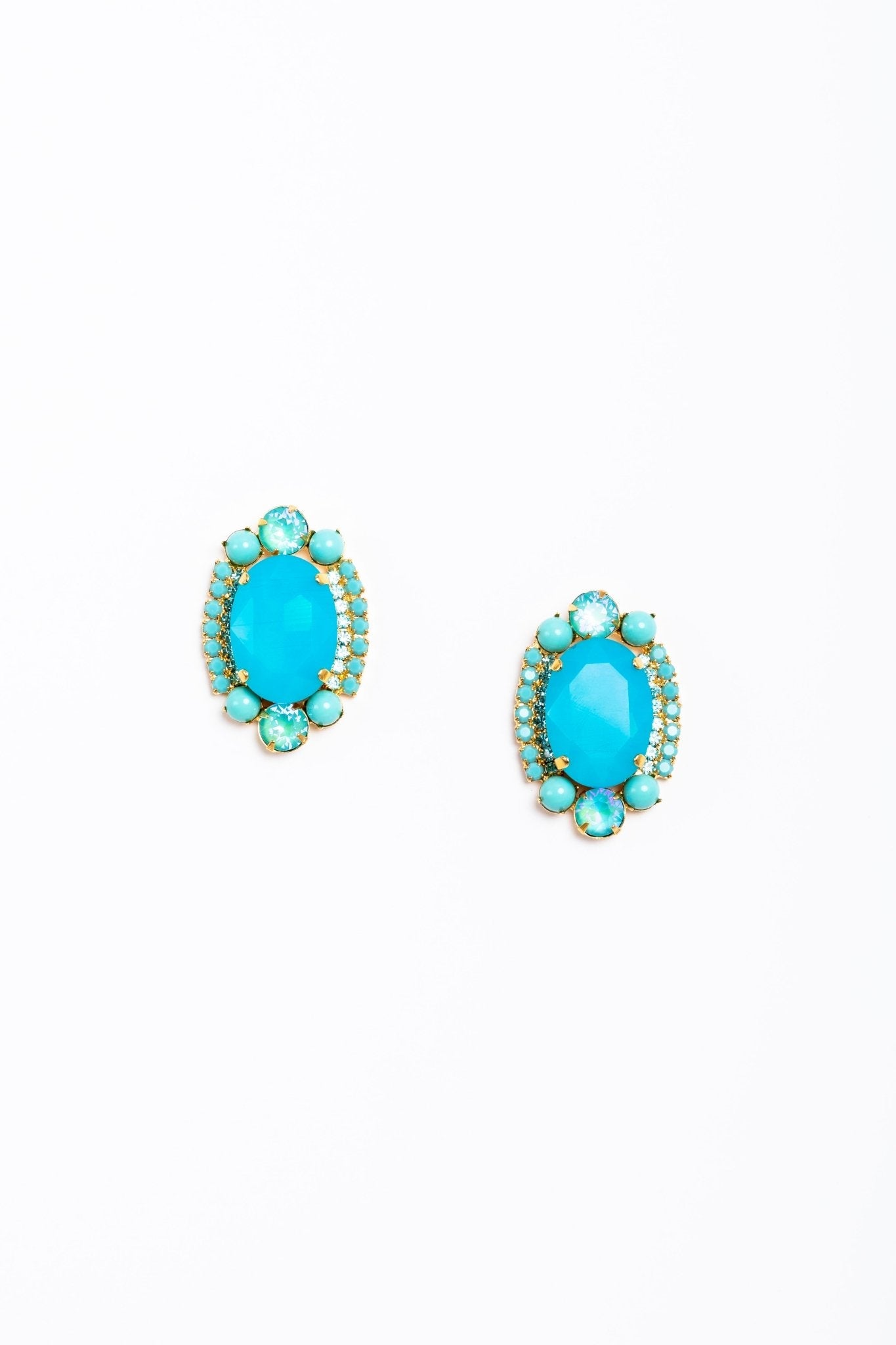 Czech crystals, 24kt gold plate. Post closure. Proudly made in the USA.