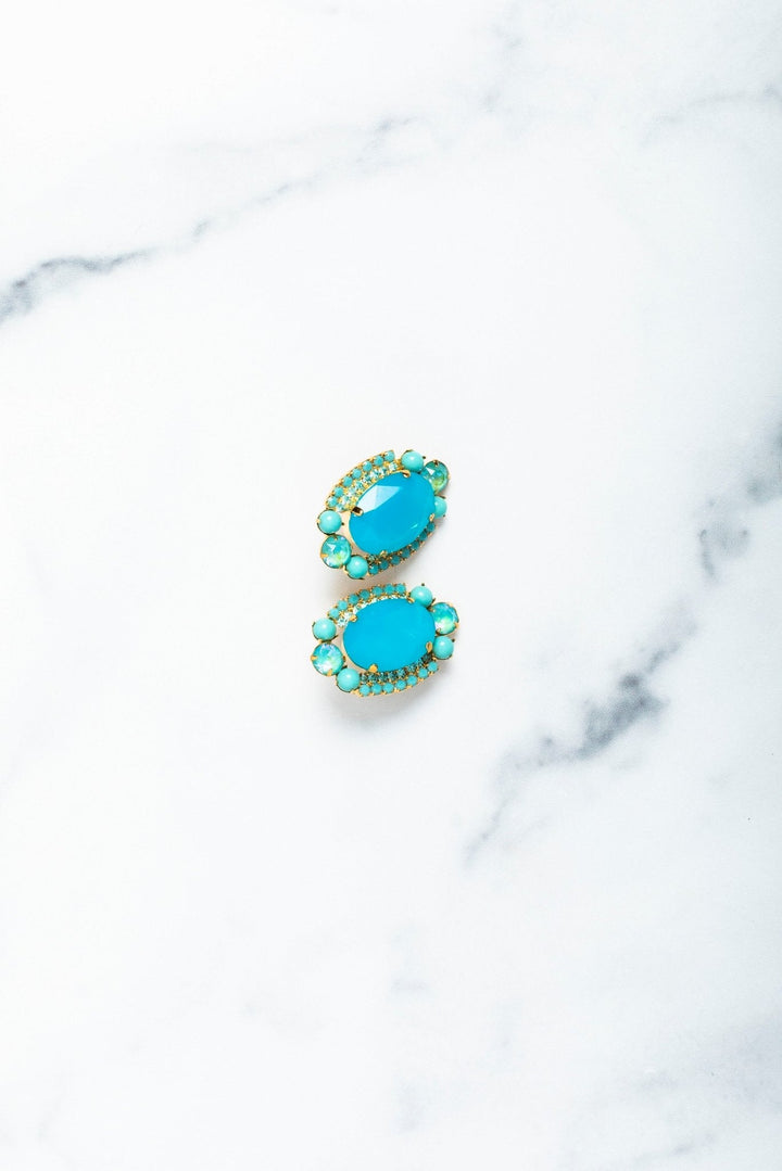 These Lana Earrings by Elizabeth Cole make a big impression with large bold blue ovals, enhanced by smaller sparkling blue crystals. These statement studs are perfect for adding a bold and eye-catching accent to any ensemble.