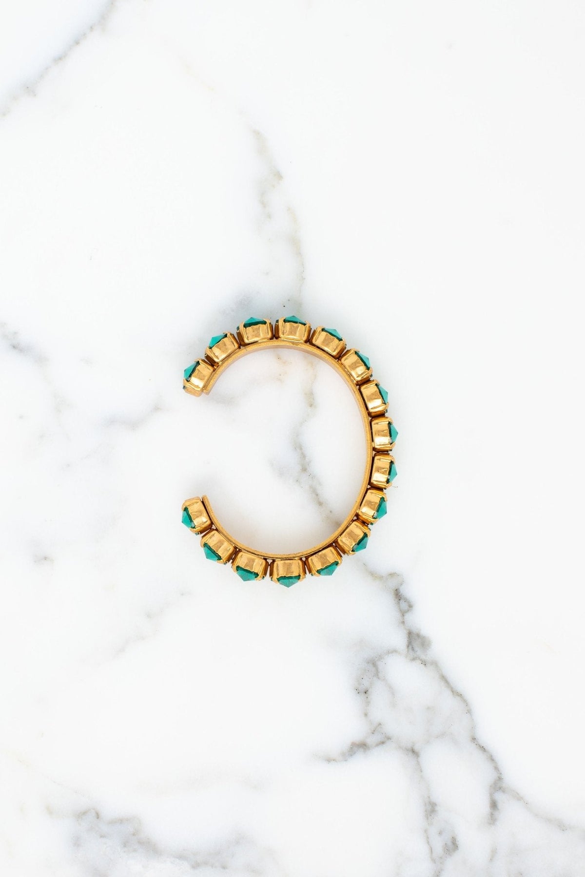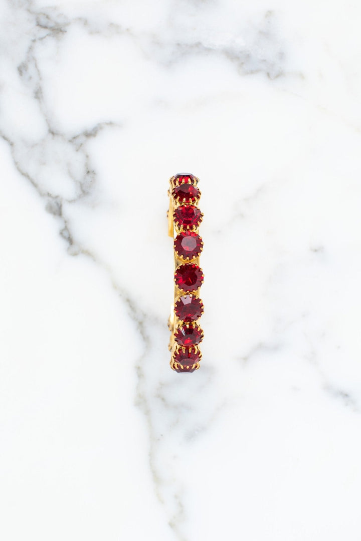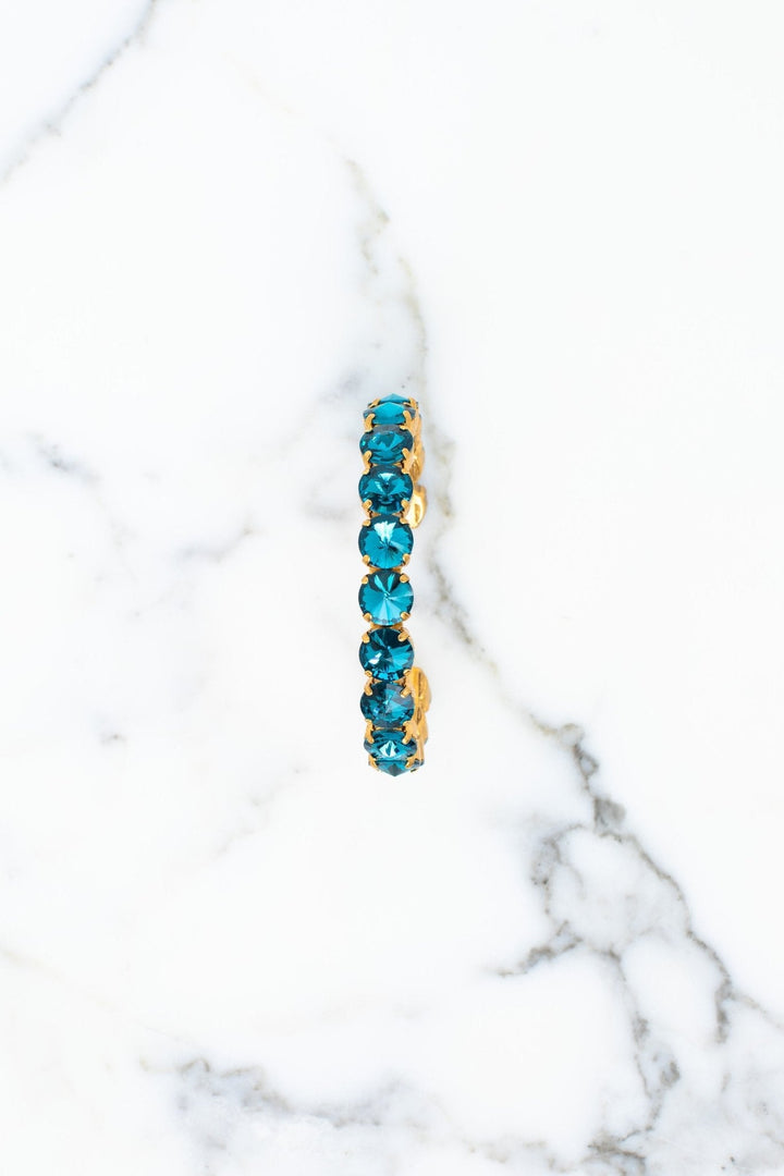 This Lesia Bracelet by Elizabeth Cole adds stunning elegance with its cuff design, adorned with clear, green, red, or blue crystals. A vibrant accessory perfect for elevating any look with a touch of sparkle.