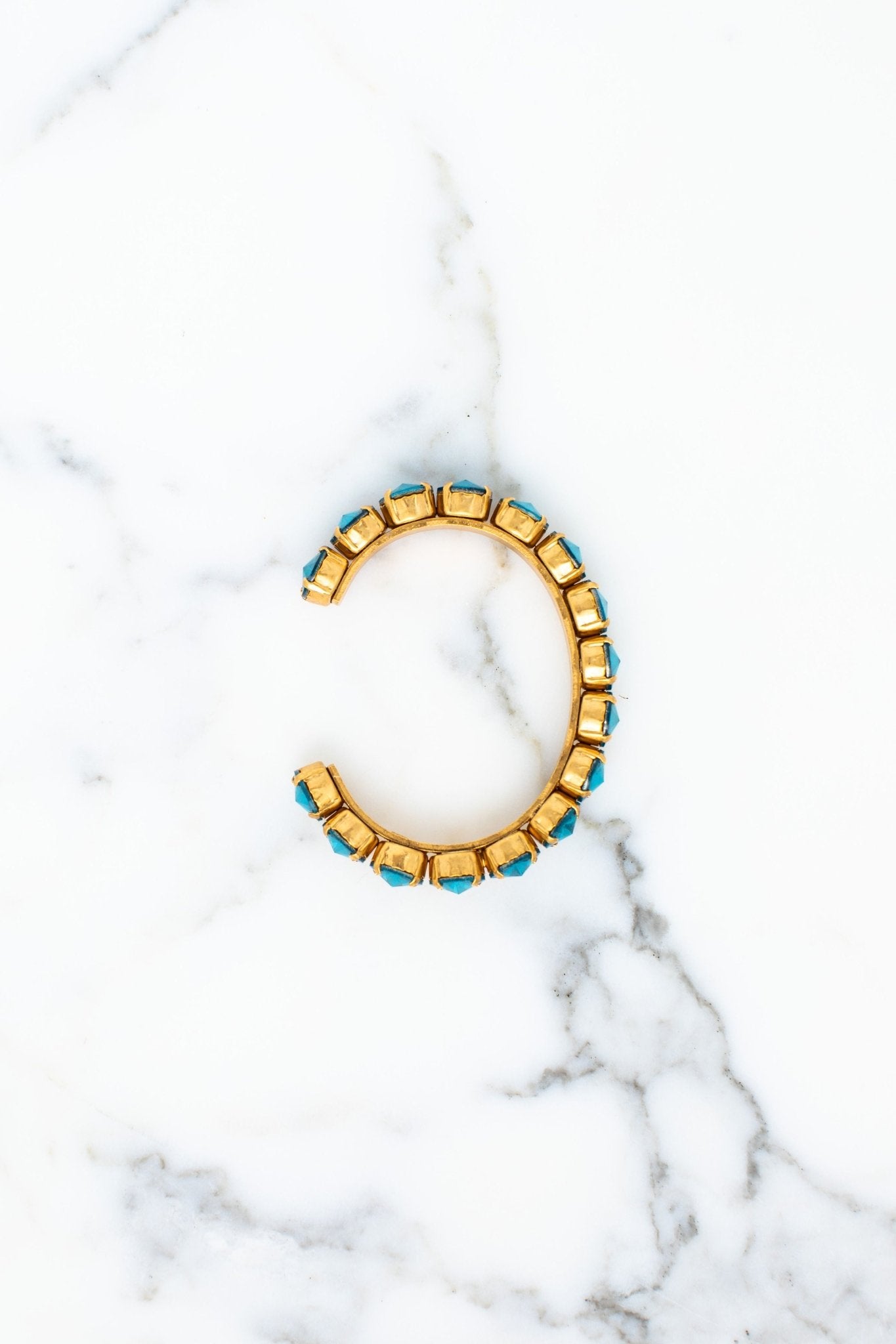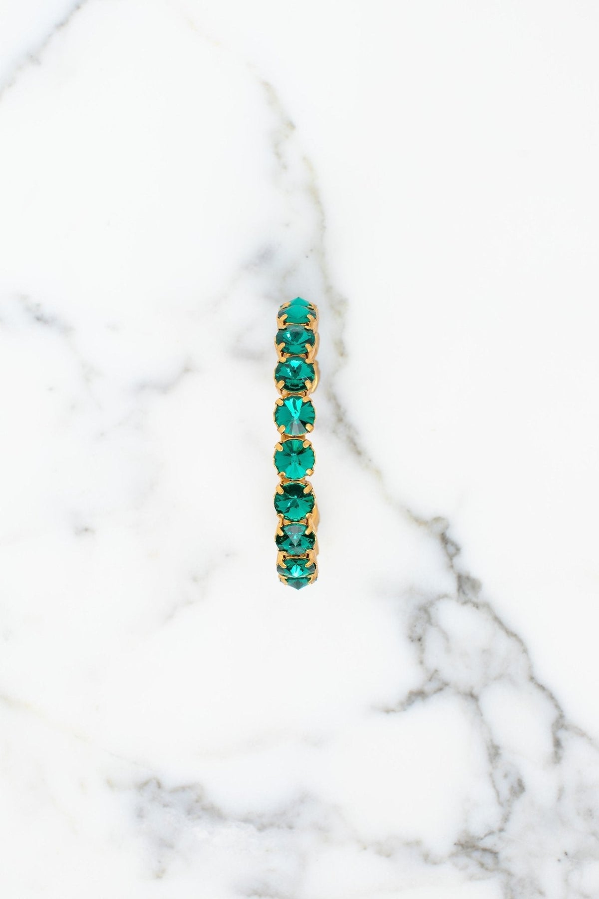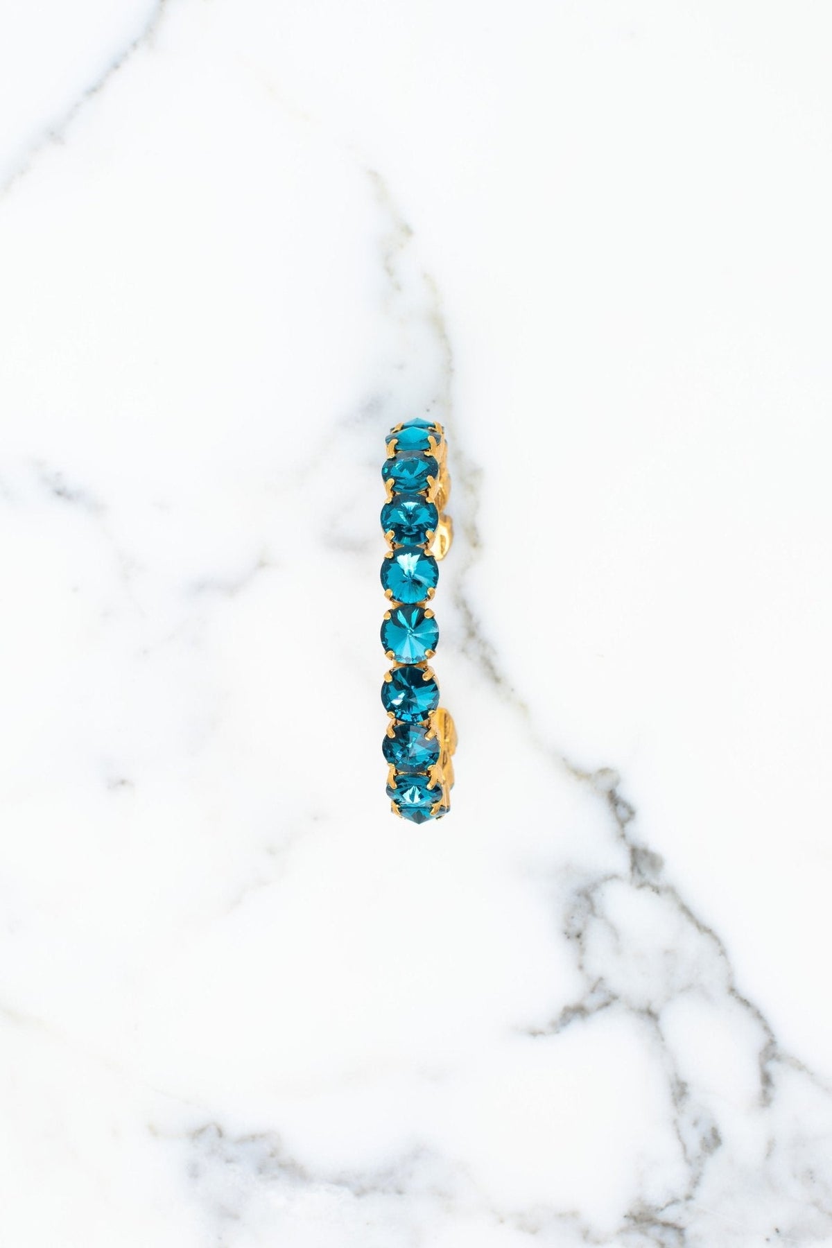 This Lesia Bracelet by Elizabeth Cole adds stunning elegance with its cuff design, adorned with clear, green, red, or blue crystals. A vibrant accessory perfect for elevating any look with a touch of sparkle.