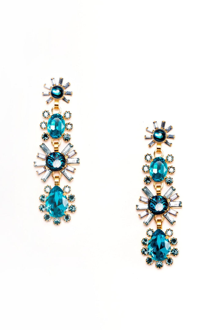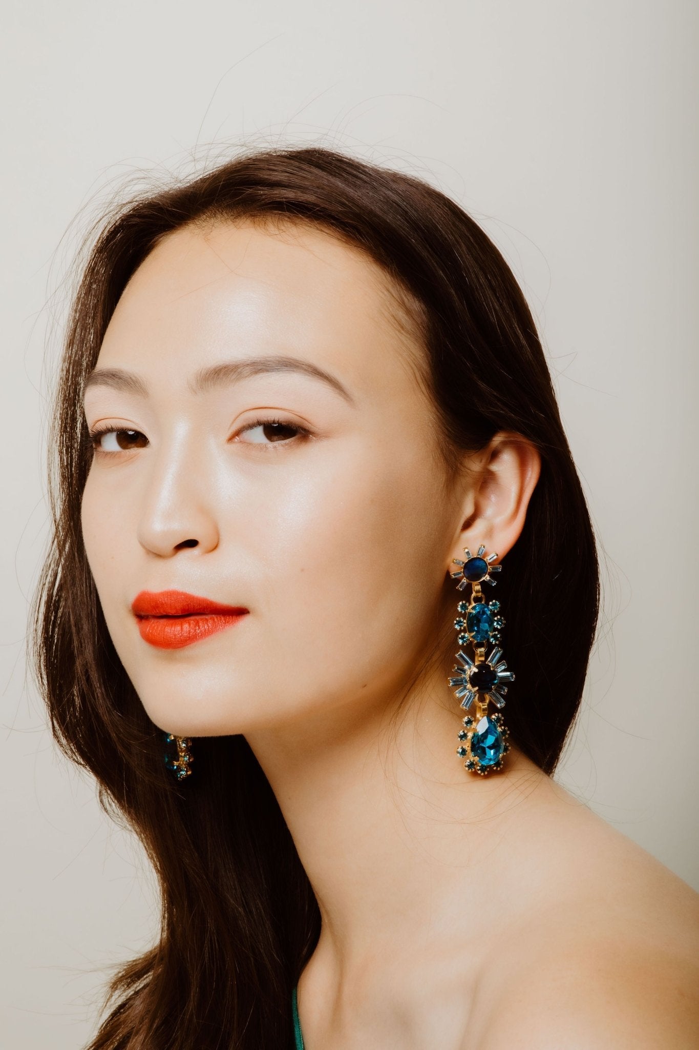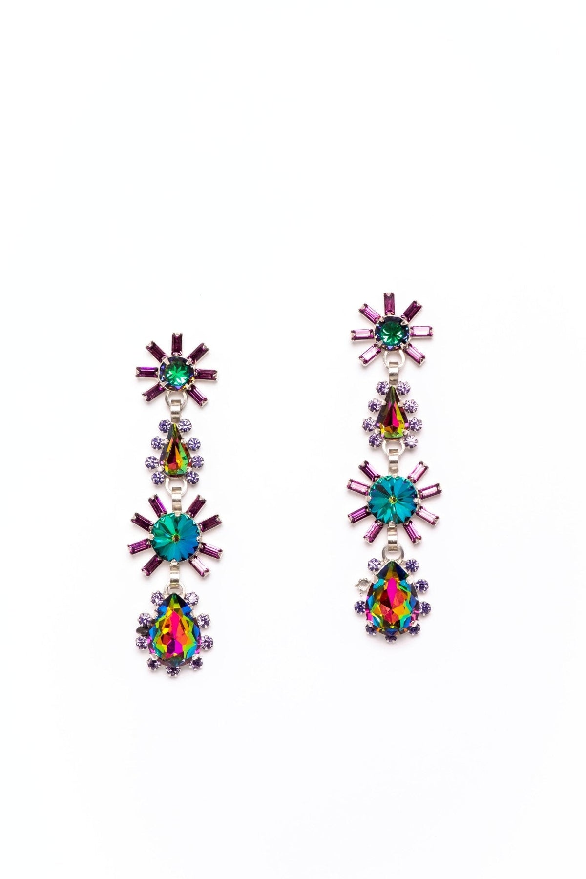 These Lila Earrings by Elizabeth Cole are show-stopping linear earrings showcasing brilliant ovals, rounds, baguettes, and pears. Available in a variety of colors, they add a dramatic, glamorous touch to any look.