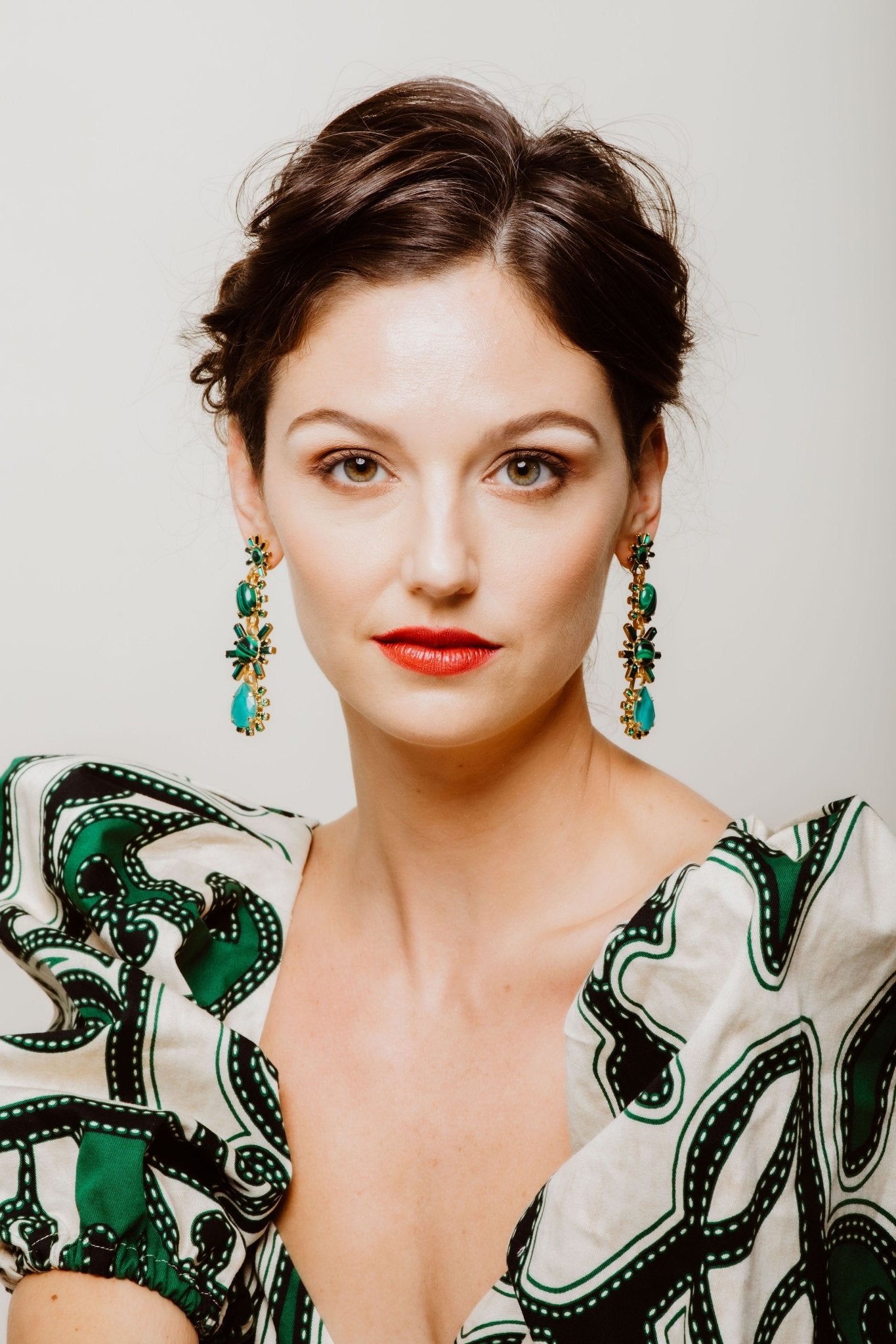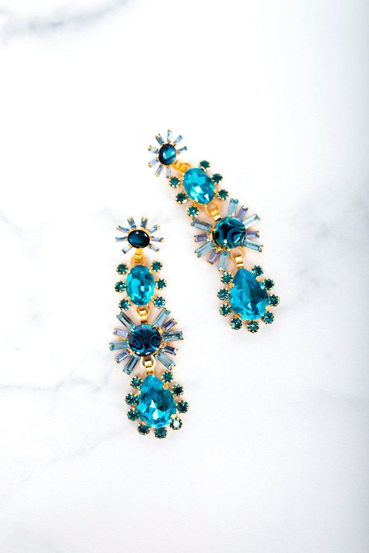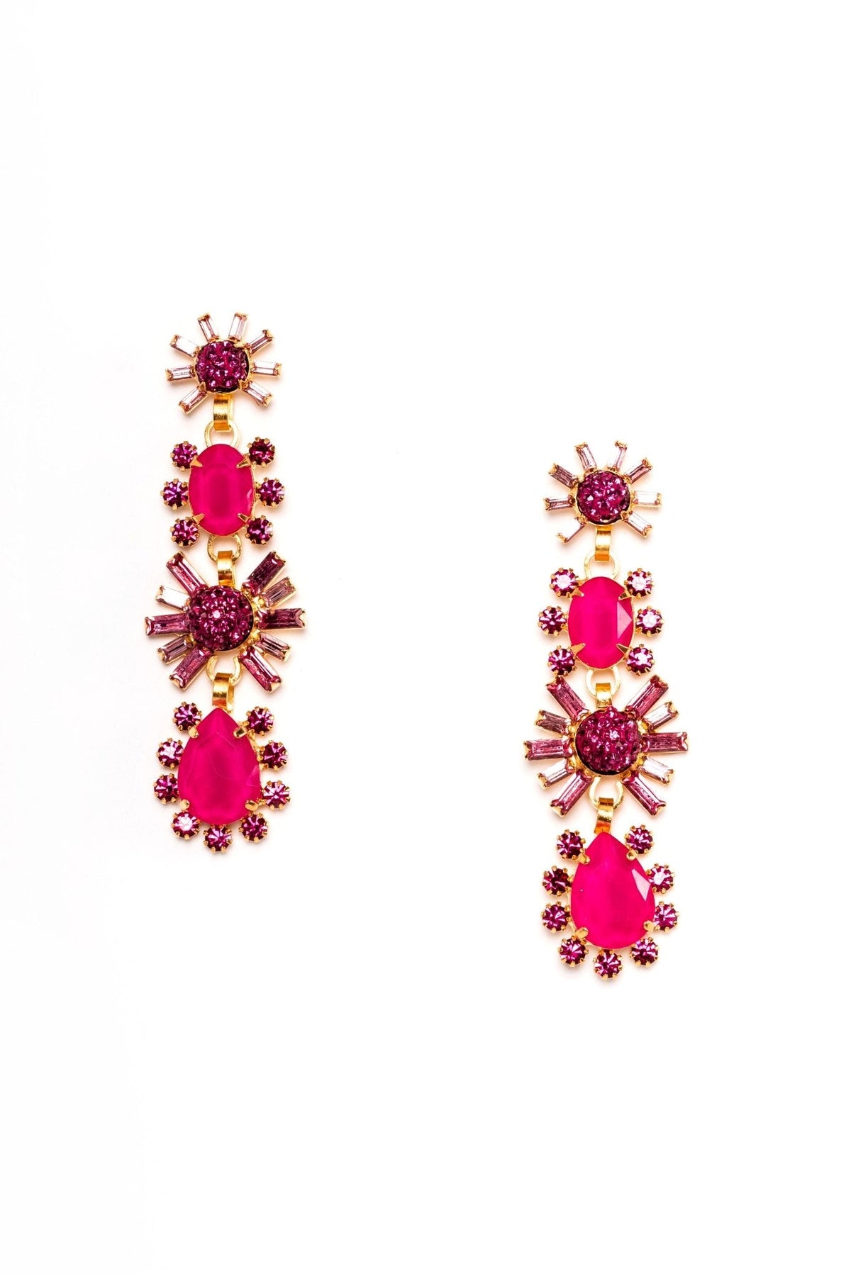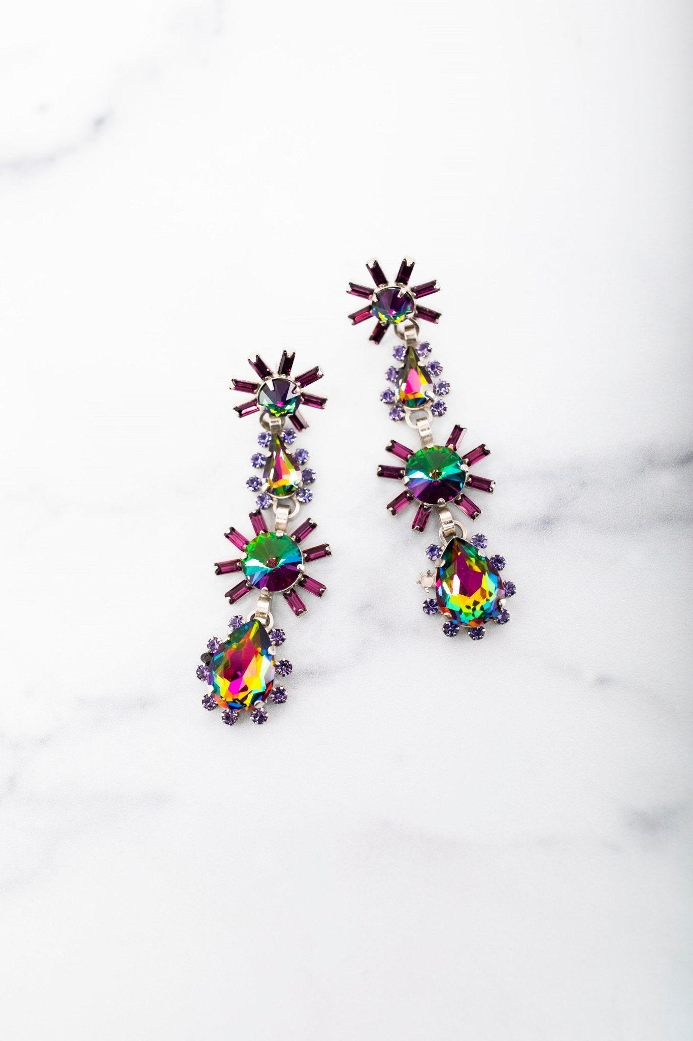 These Lila Earrings by Elizabeth Cole are show-stopping linear earrings showcasing brilliant ovals, rounds, baguettes, and pears. Available in a variety of colors, they add a dramatic, glamorous touch to any look.