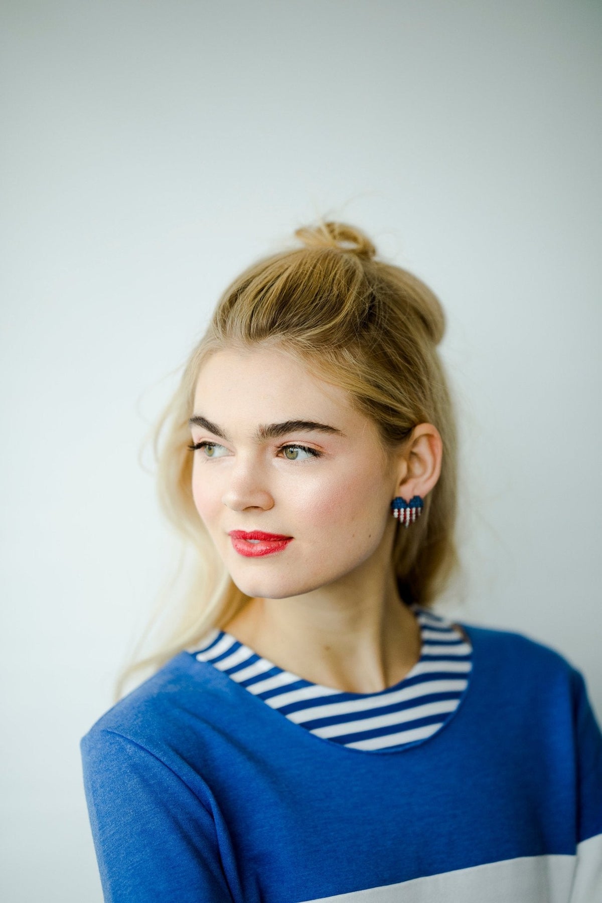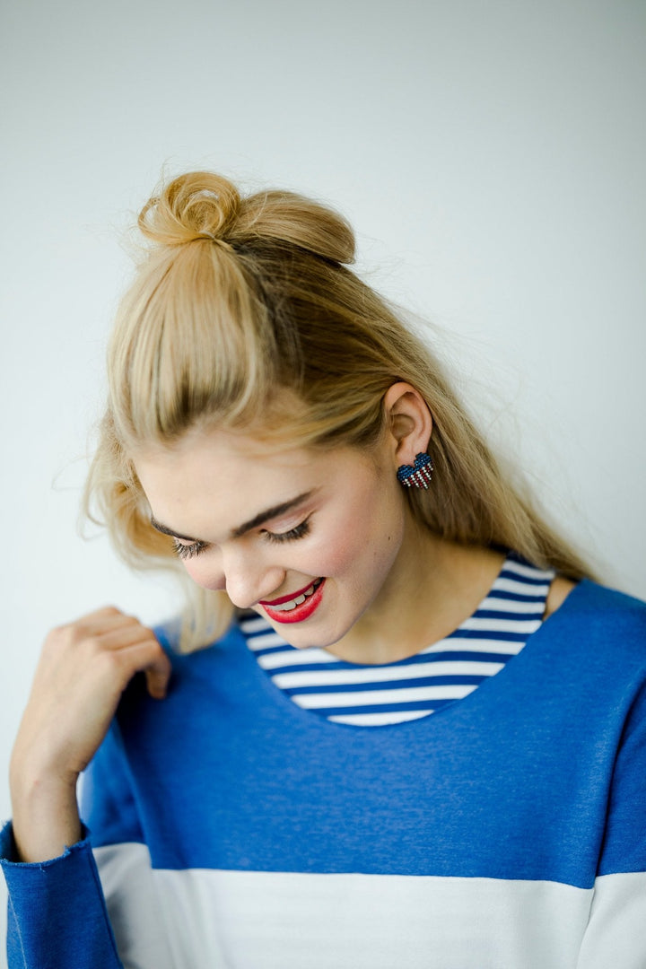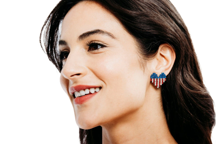 These Louisa Earrings by Elizabeth Cole let you show your patriotism in style with Swarovski crystals arranged in an American flag heart design. Perfect for adding a blingy touch to your 4th of July celebrations.