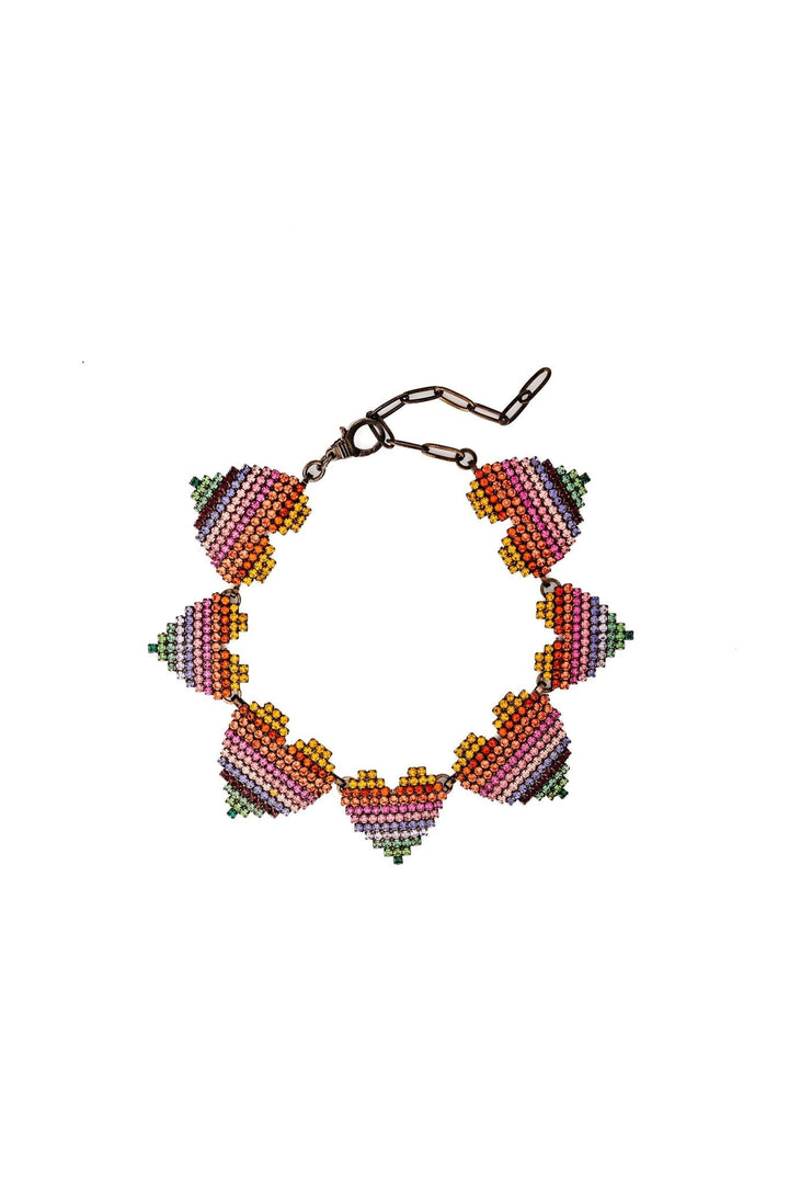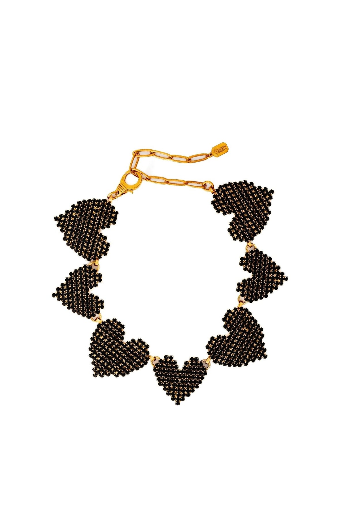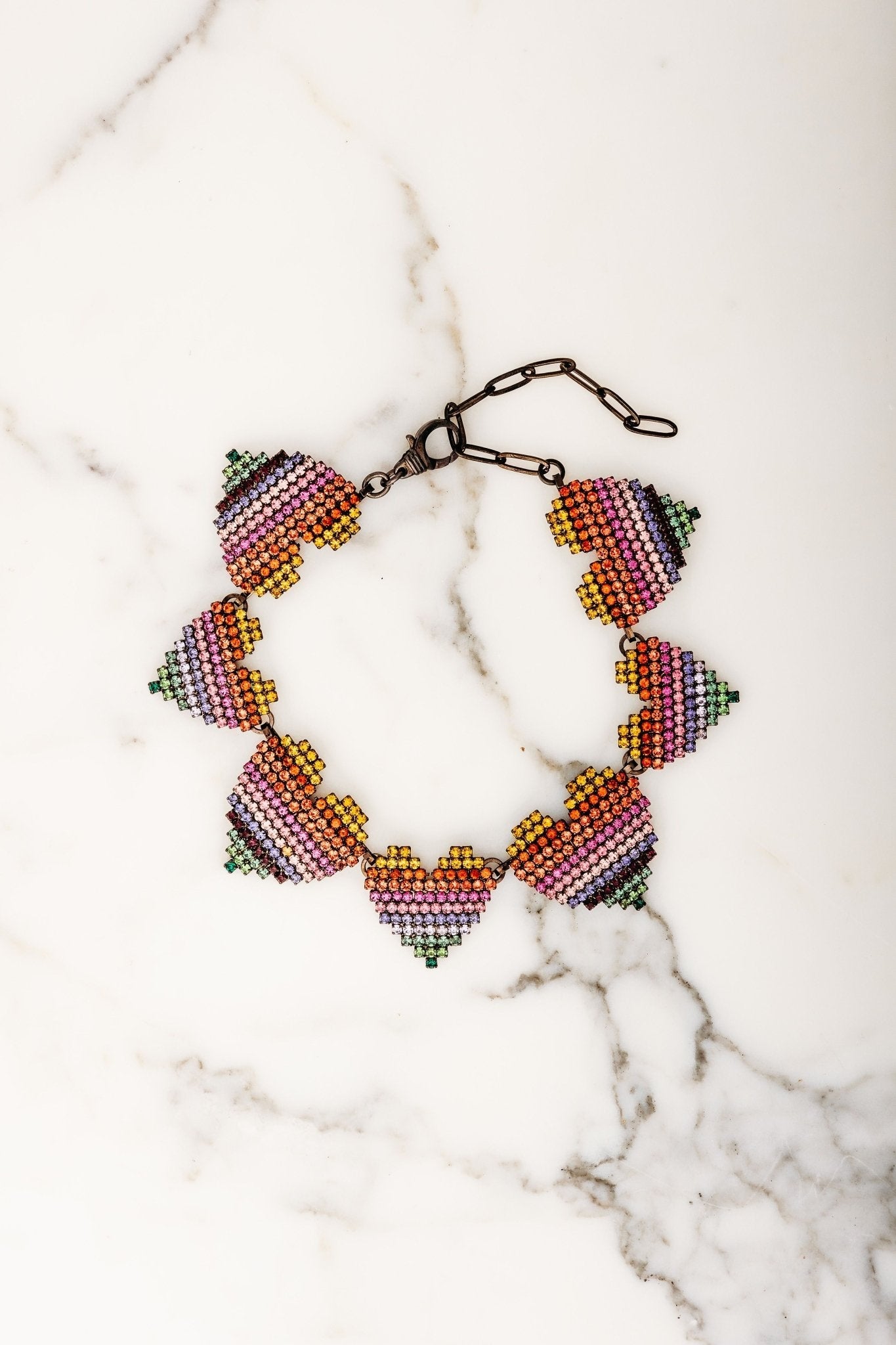 This Love Marie Necklace by Elizabeth Cole is a stunning collar-style piece featuring alternating crystal hearts in either soft rainbow or classic black. Effortlessly glamorous, this necklace will add a touch of sparkle and boldness to any look.
