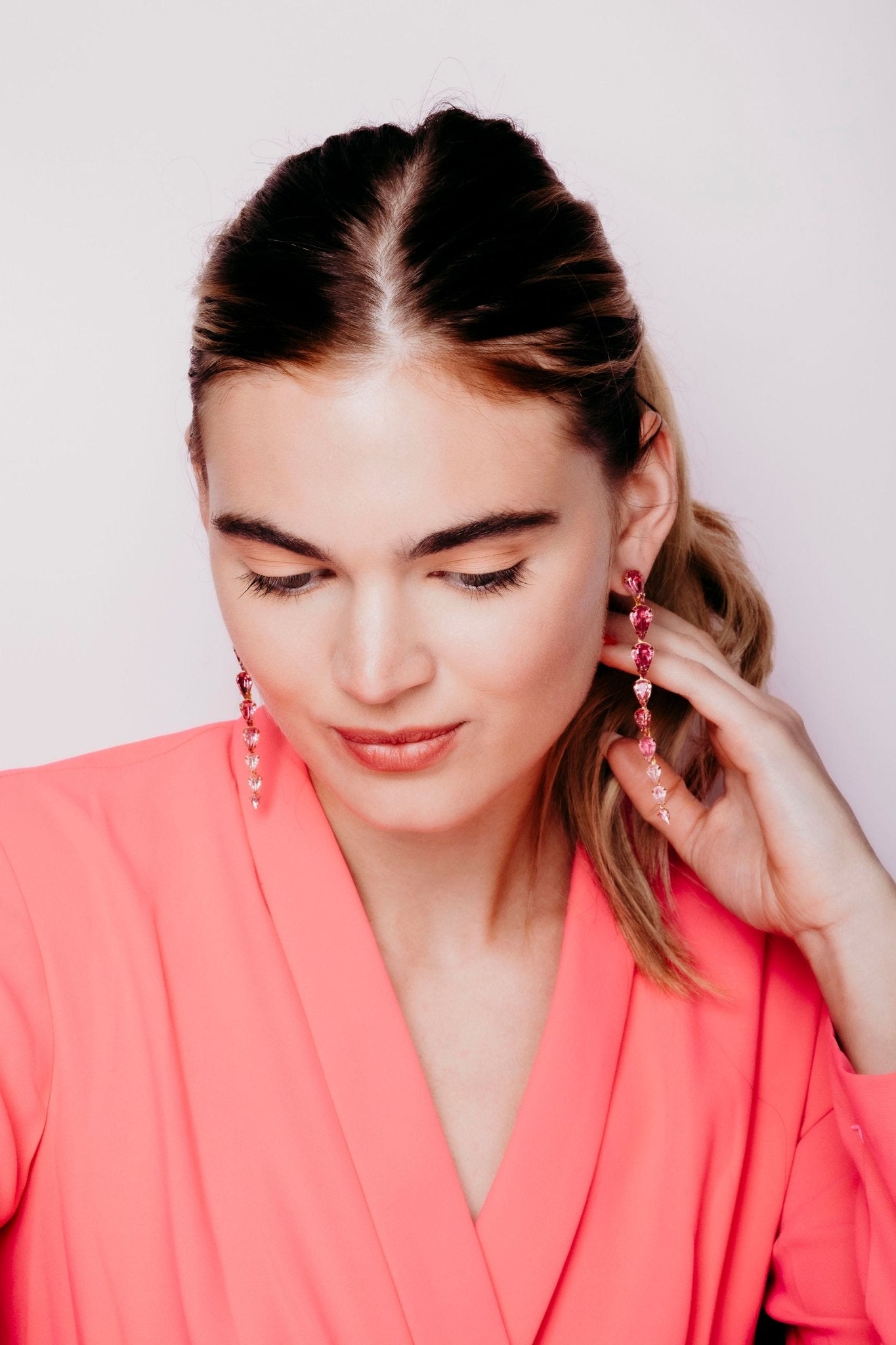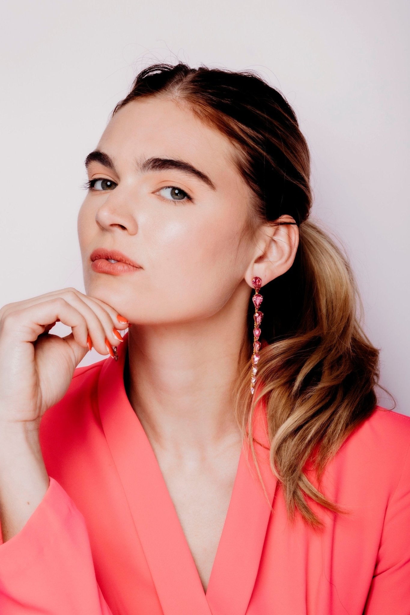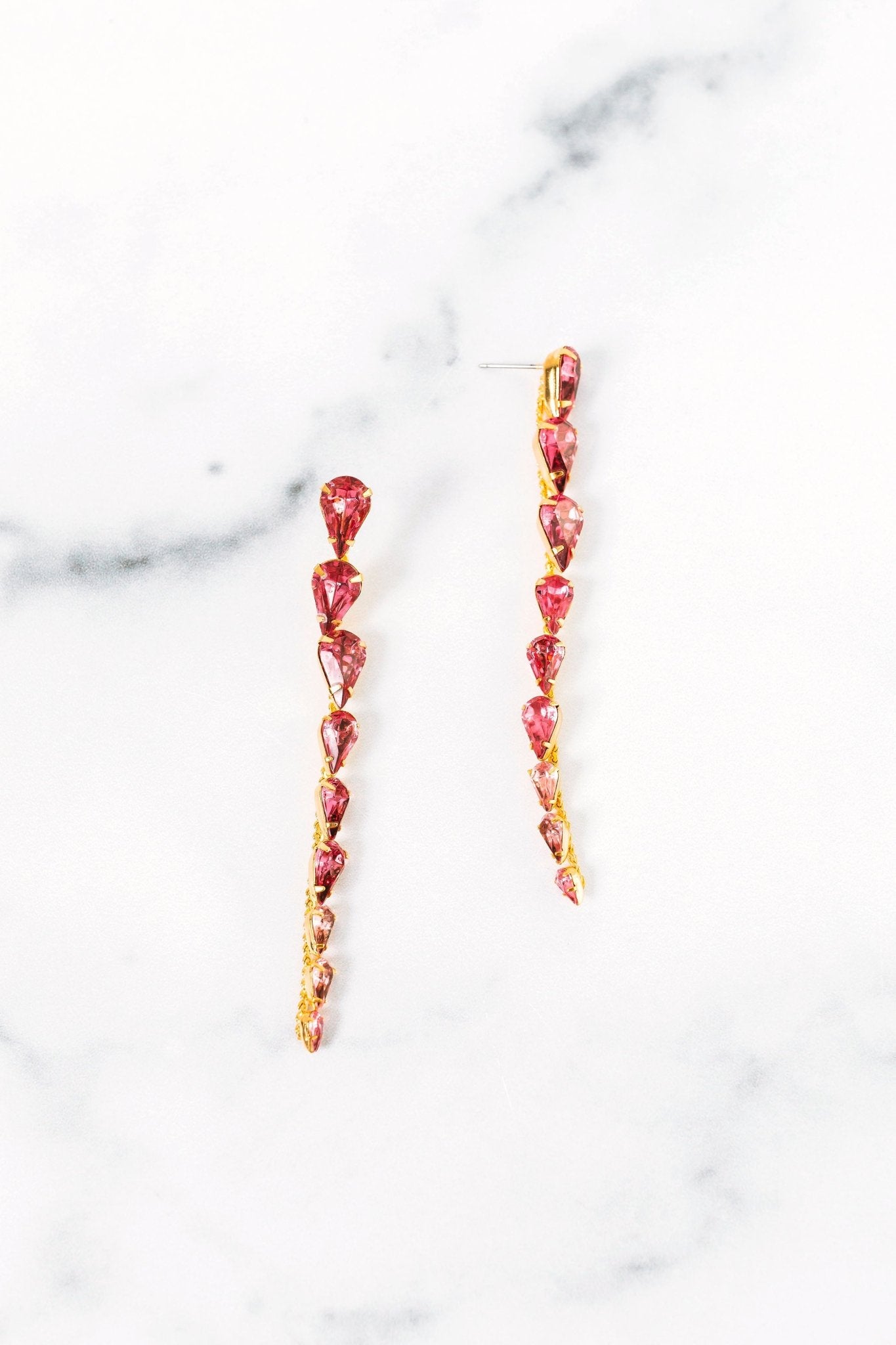 Style Notes: These Luca Earrings by Elizabeth Cole feature an ombré design with graduated pear stones in shades of pink, creating a chic, linear look that’s perfect for adding a polished finish to your outfit.