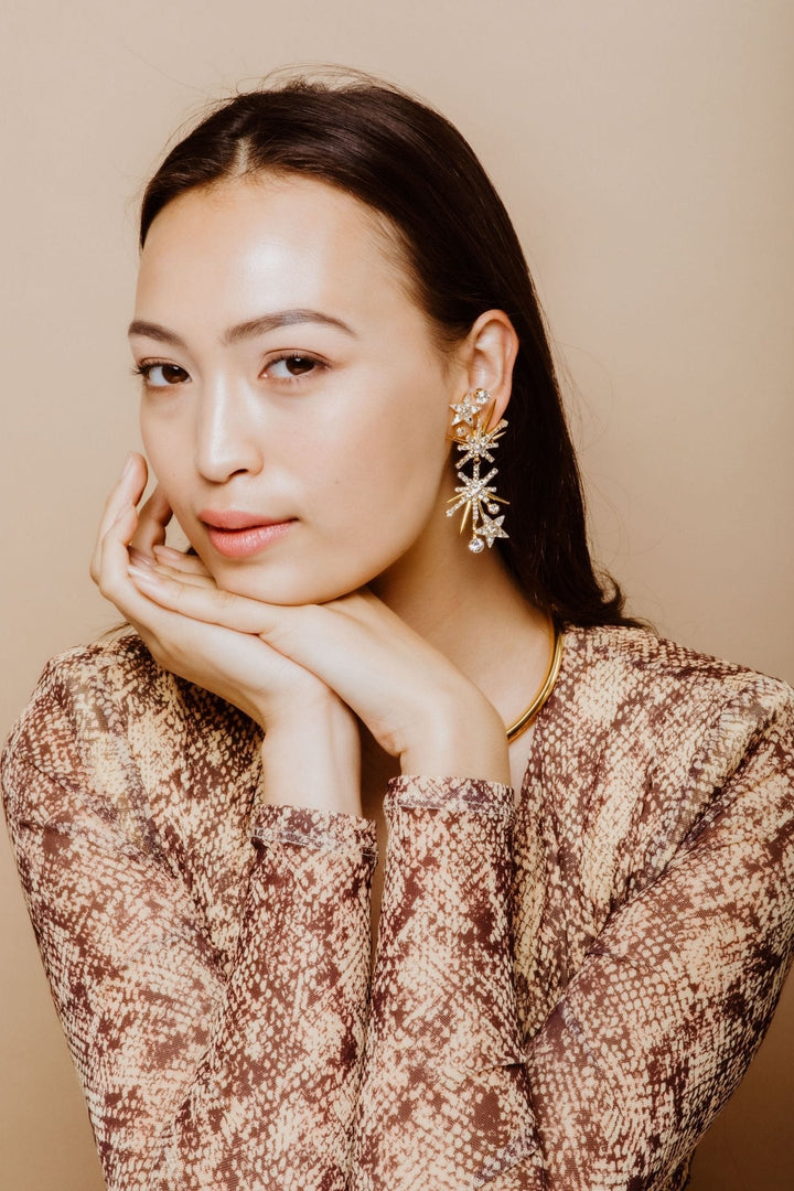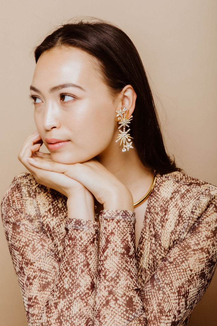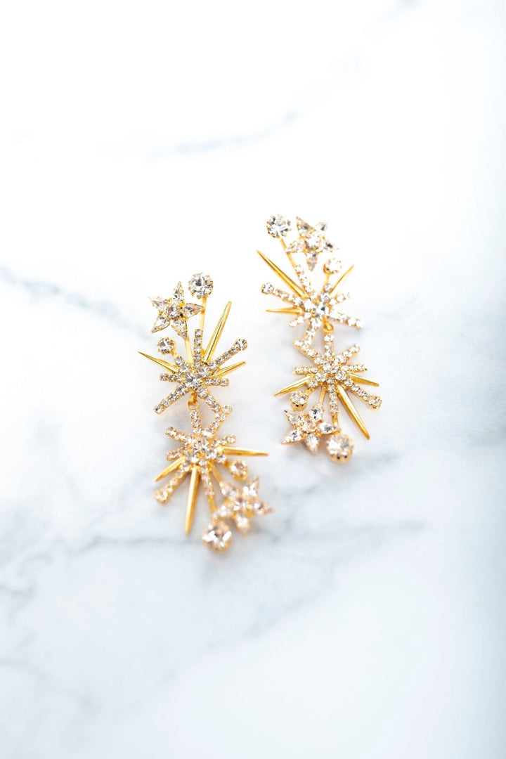 These Lyra Earrings by Elizabeth Cole bring the stars to your style with their ethereal collection of glittering shooting stars, available in classic crystal and deep blue. A perfect accessory for adding celestial charm to any look.