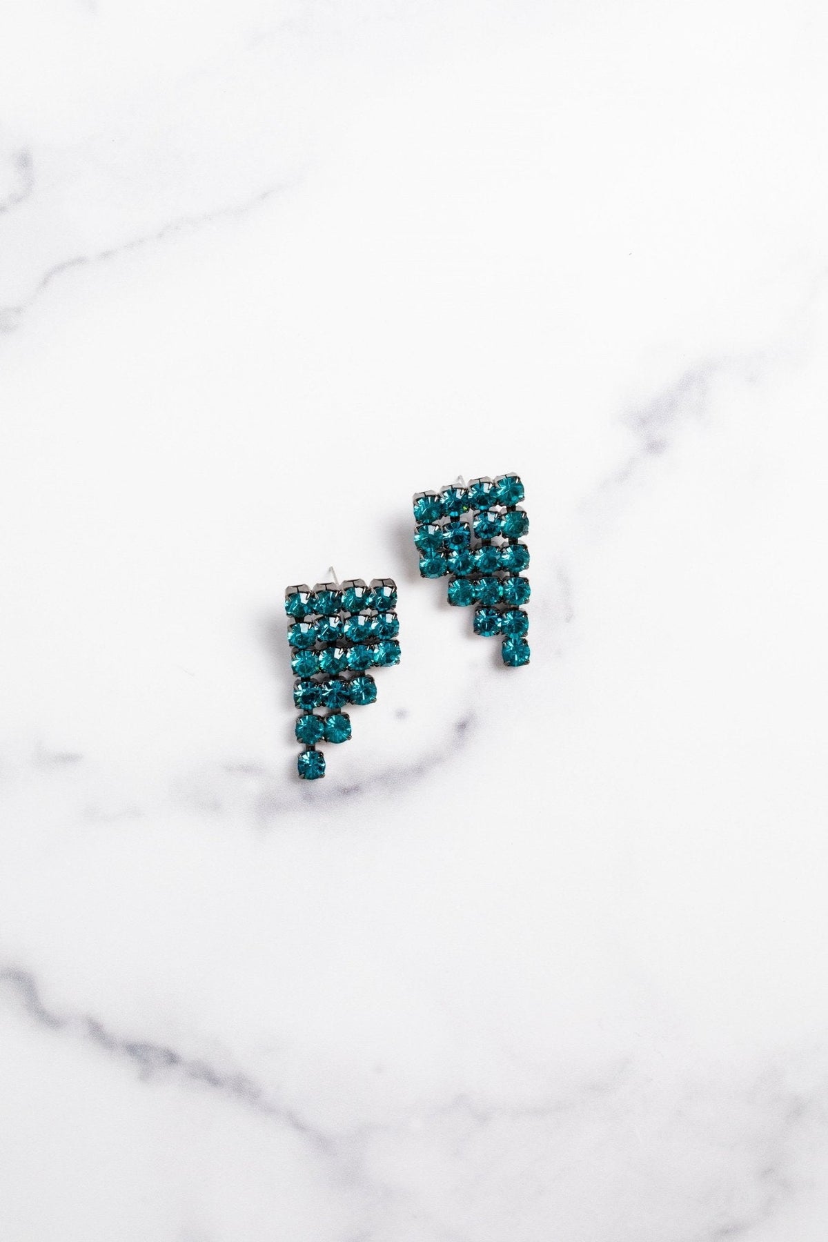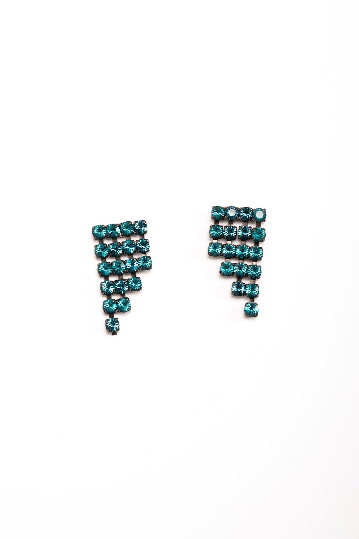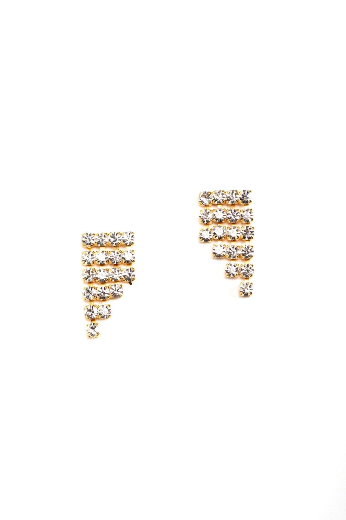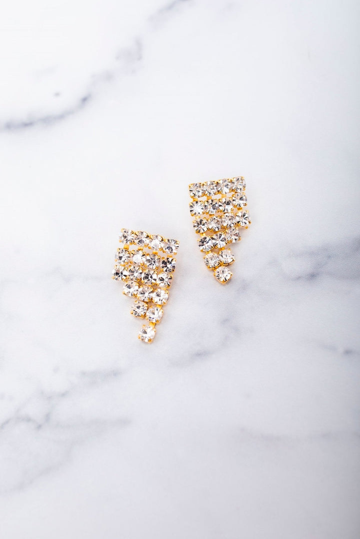 Czech crystals, 24kt gold plate or hematite plate. Length: 1.75in (4.4cm), Weight: 7.8g. Post closure. Proudly made in the USA.