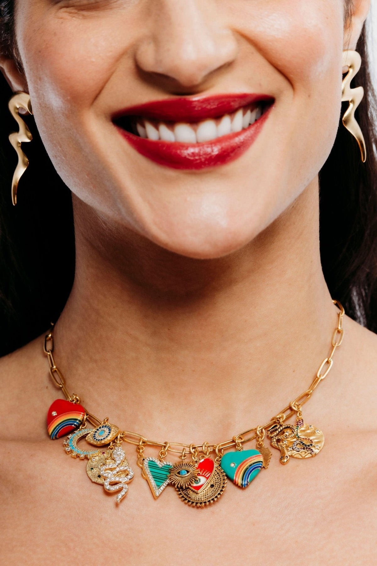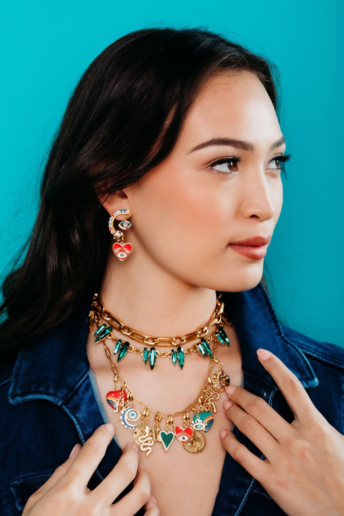 This Orabelle Necklace by Elizabeth Cole brings a playful pop of personality with its colorful charms. Wear it alone or layered for a quirky, fun look that adds a unique flair to any outfit.
