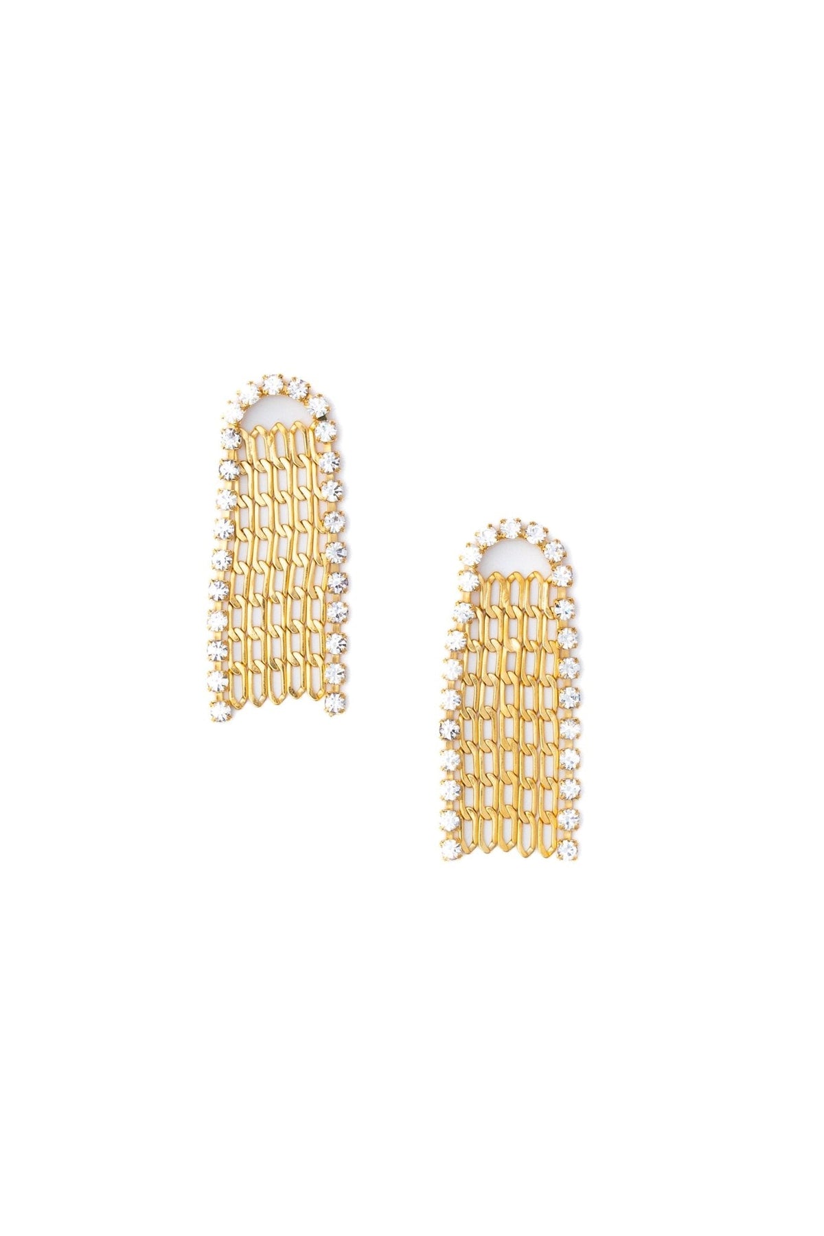 These Penny Earrings by Elizabeth Cole shimmer and shine with intricately linked golden links adorned with sparkling crystals, creating a dazzling effect that’s perfect for any occasion.