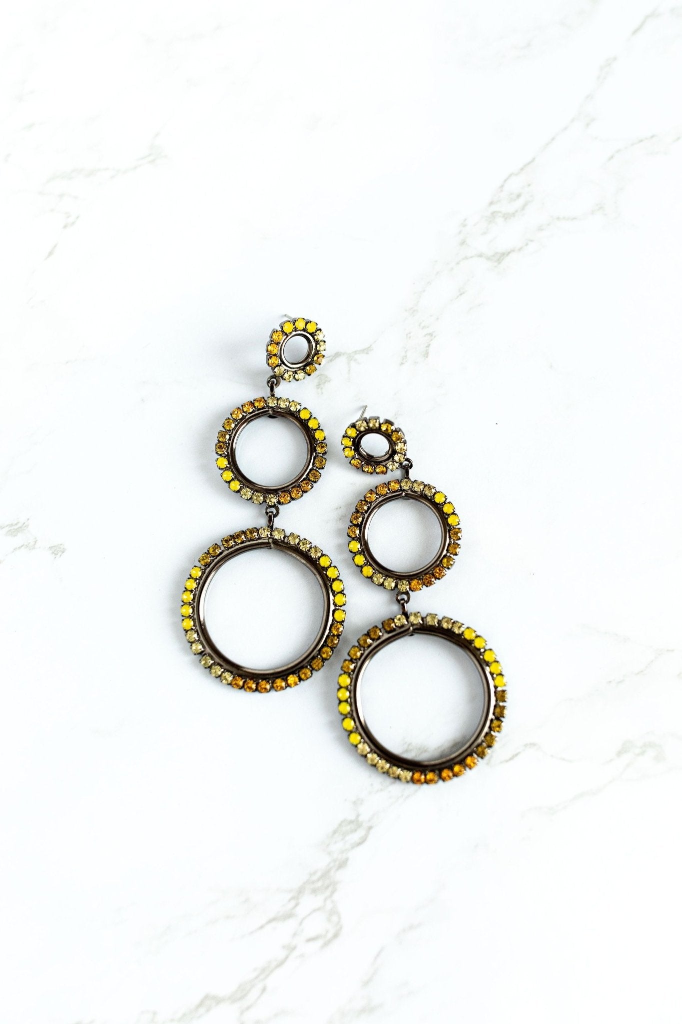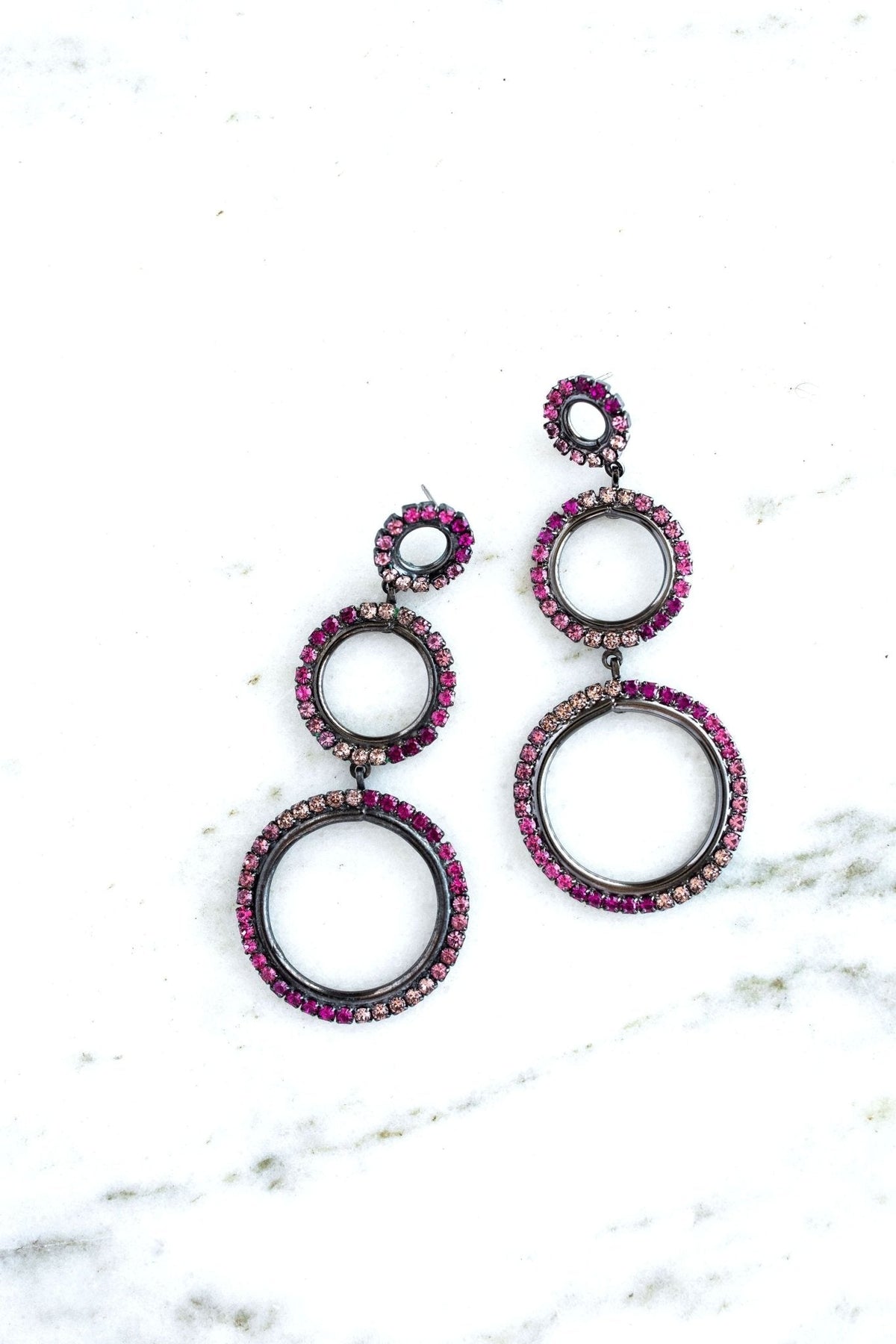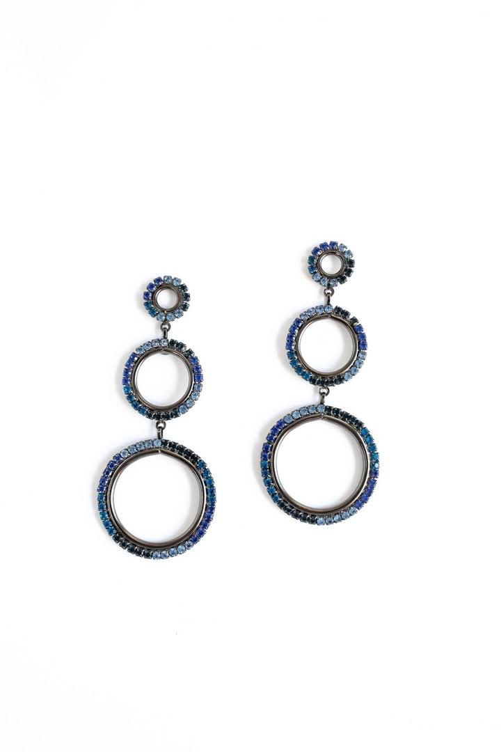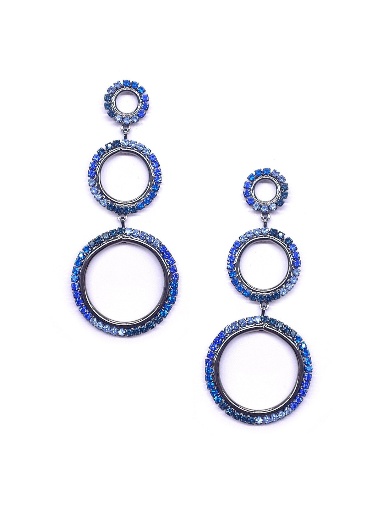 These Phoebe Earrings by Elizabeth Cole showcase ombré blue crystals arranged in graduated circles, bringing a touch of sparkle and sophistication to your look.