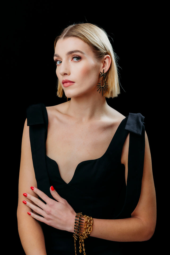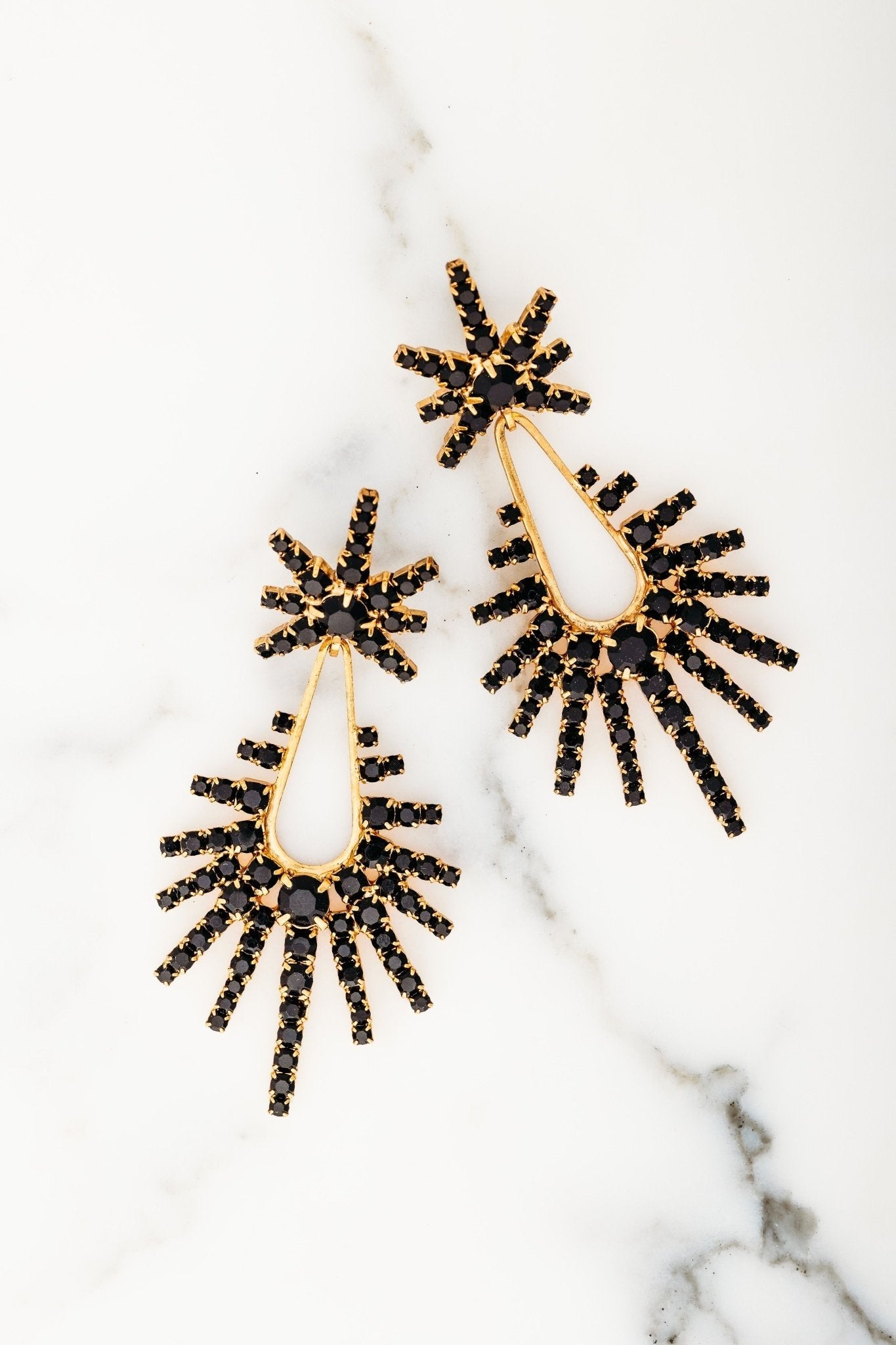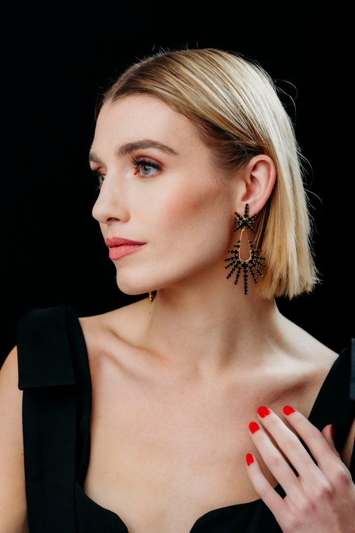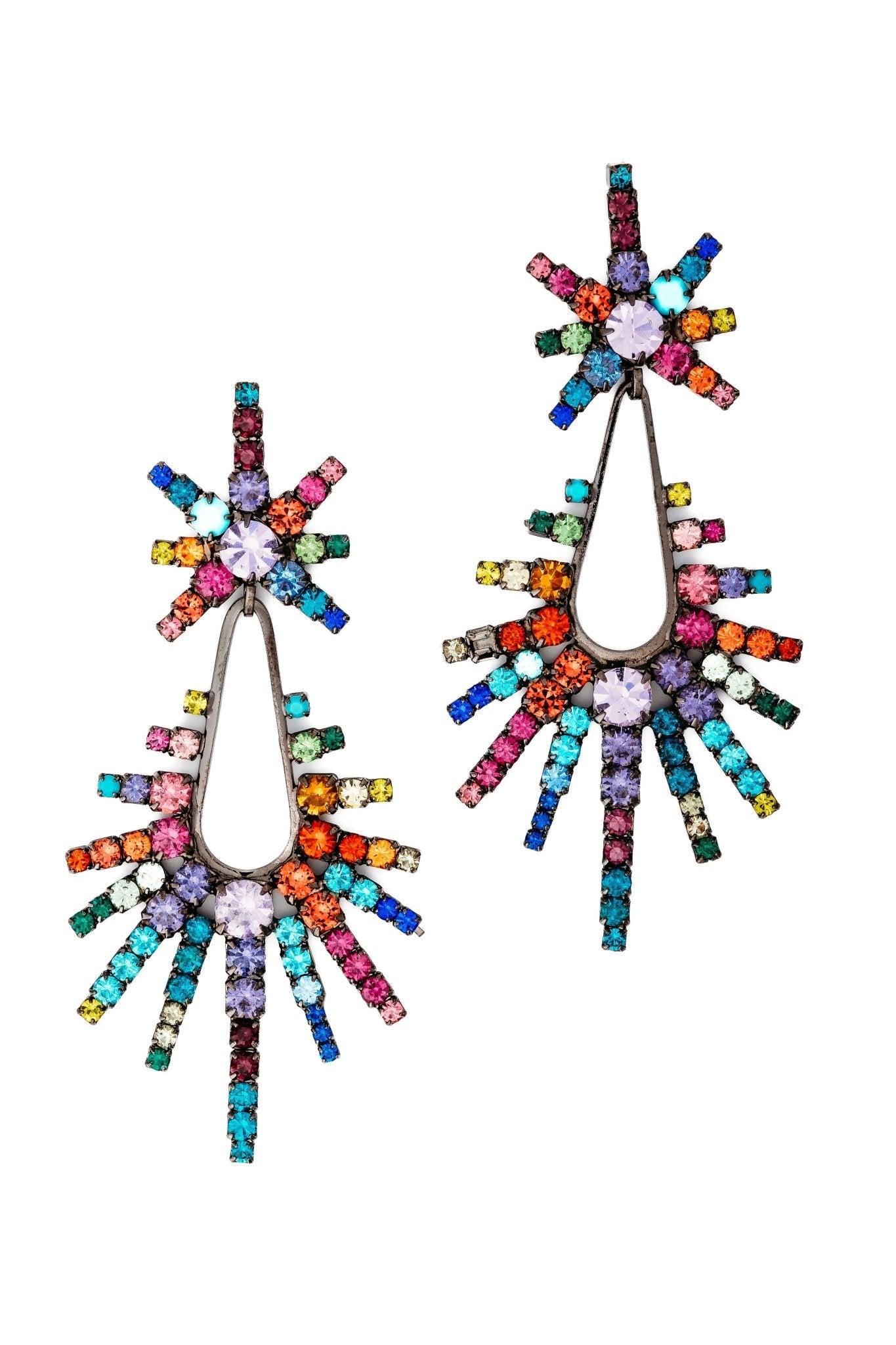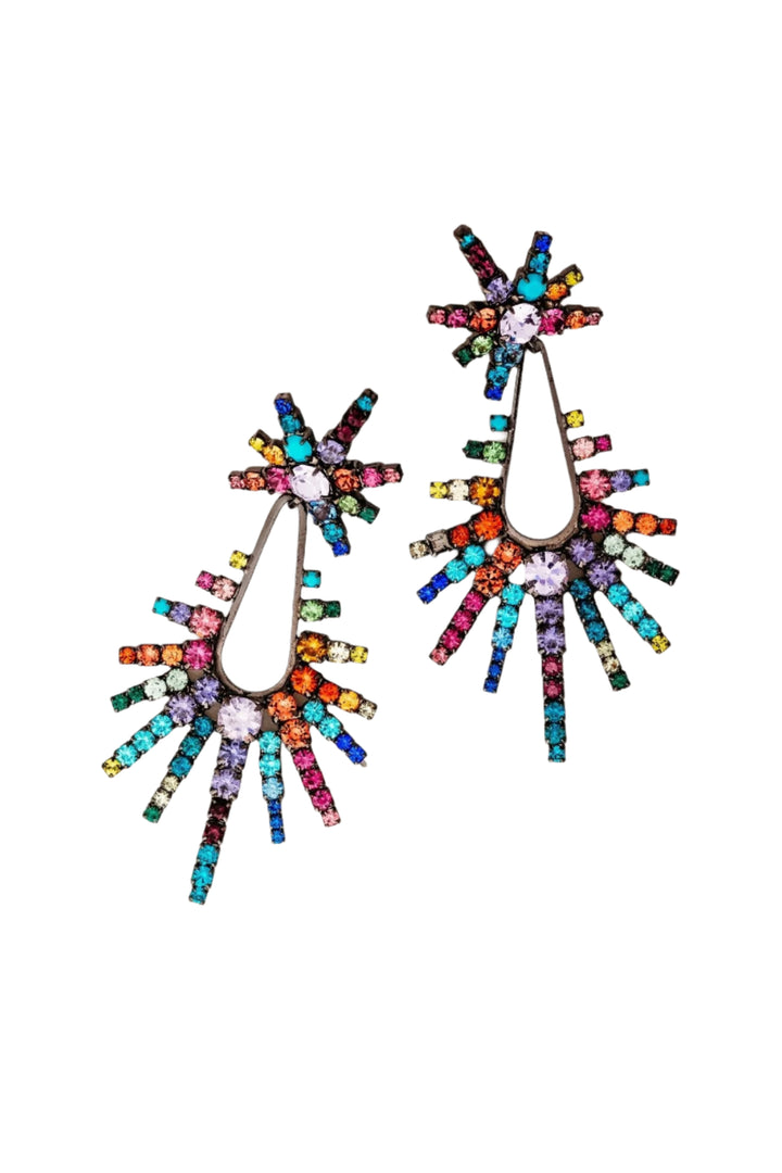 These Remington Earrings by Elizabeth Cole will give your look a serious sparkle upgrade. Featuring graduated crystal daggers in rainbow sparkle or classic jet, these earrings are designed to add a dazzling edge to any outfit. The versatile design makes them perfect for standing out at special events or adding glam to everyday style. Proudly made in the USA, they are a bold, glamorous addition to any jewelry collection.