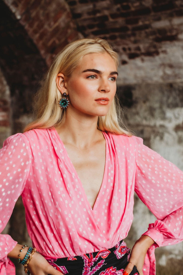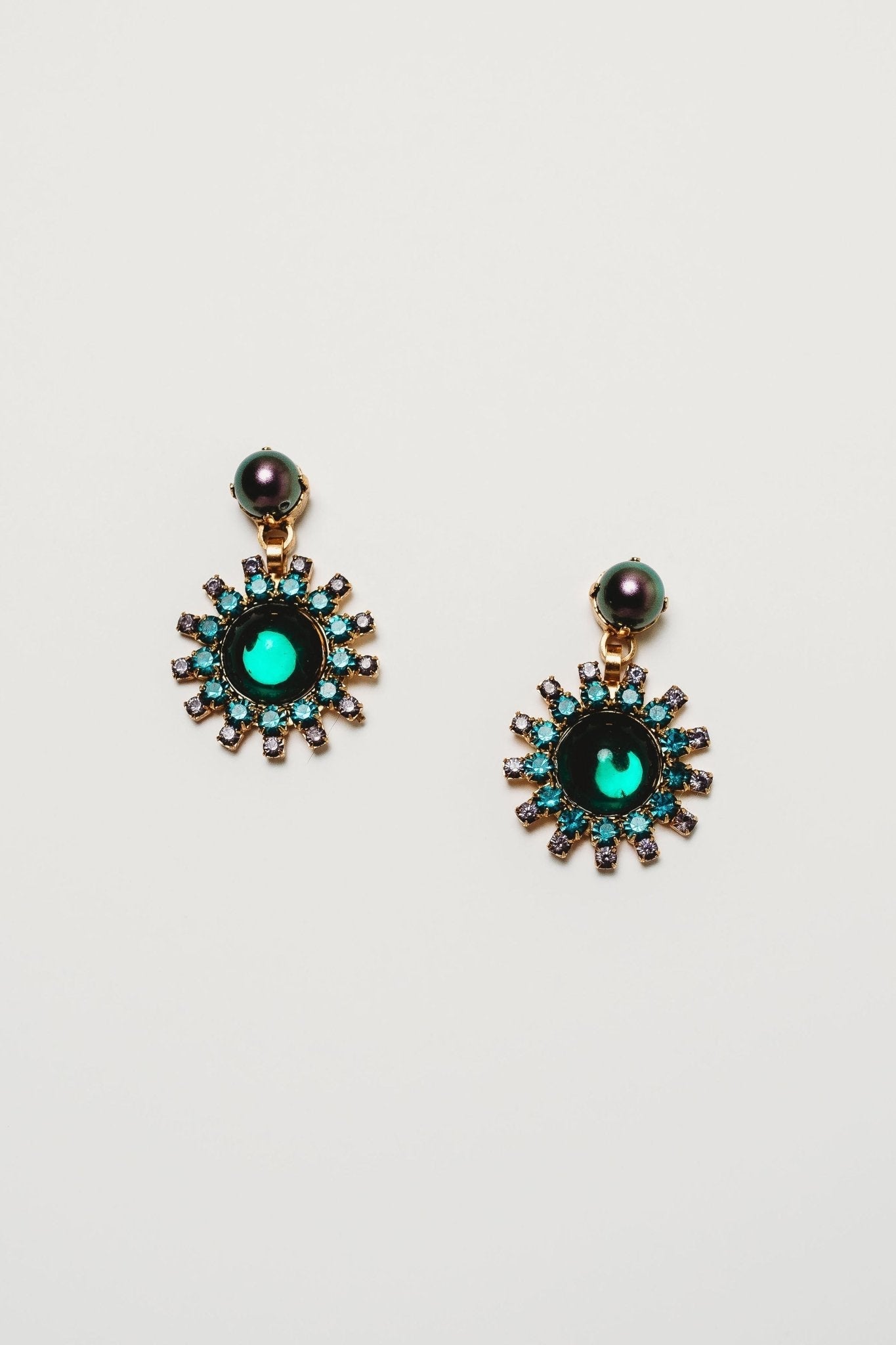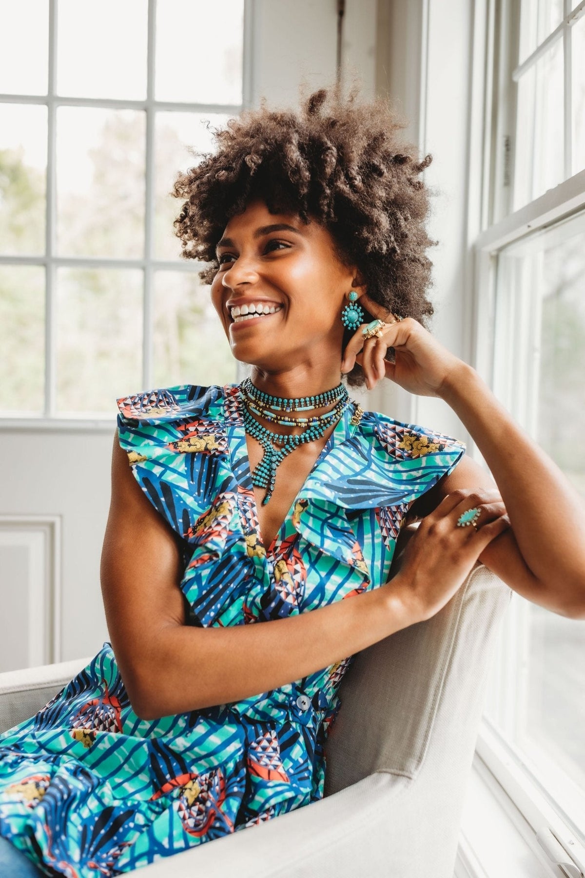 These Roscoe Earrings by Elizabeth Cole are petite and playful, featuring two pairs of graduated round stones with turquoise matrix details and finished with graduated turquoise stones. Available in different finishes, these earrings are a vibrant and versatile addition to your collection. Proudly made in the USA.