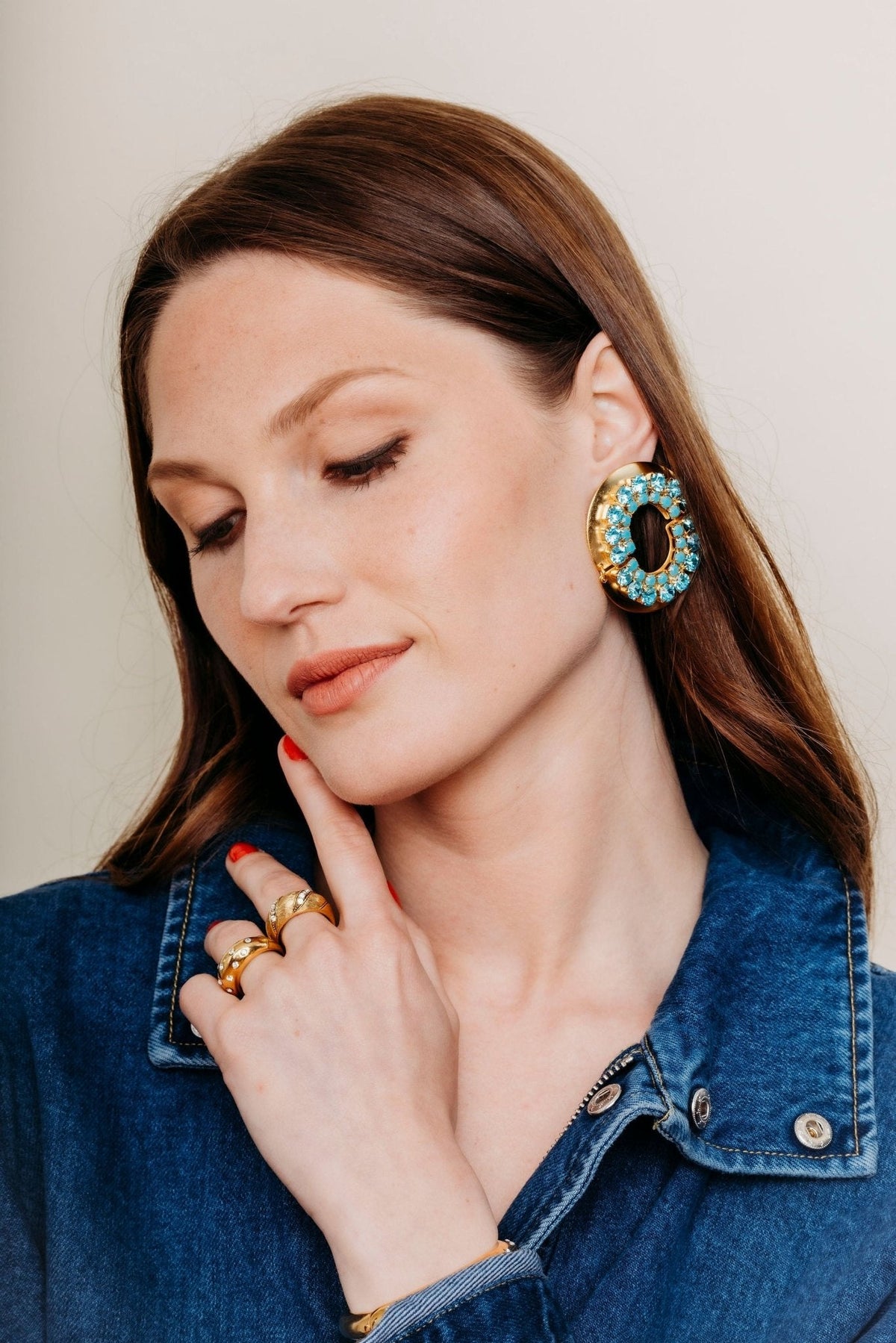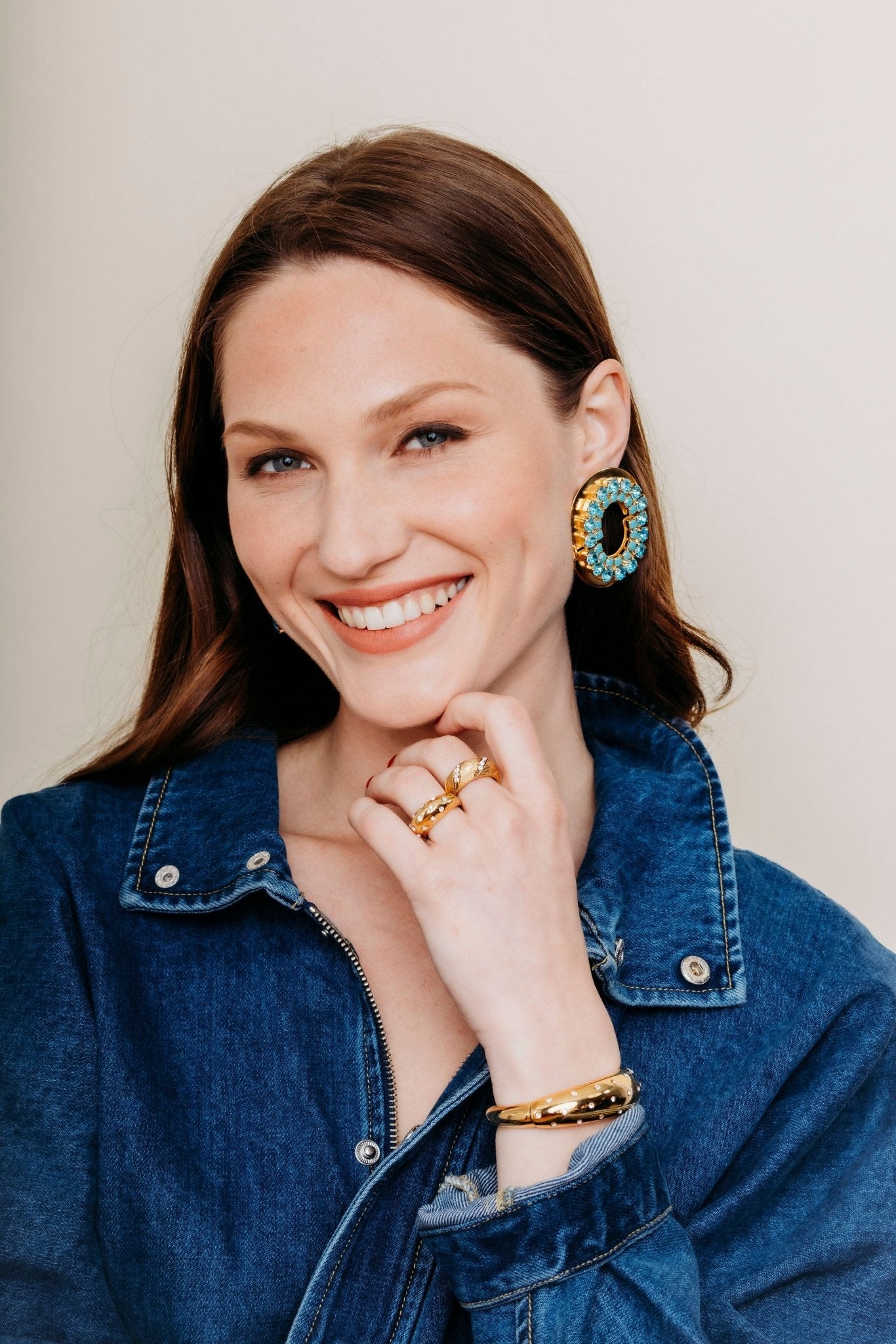 Premium crystals, 24K gold plate, post closure, handcrafted in the USA.