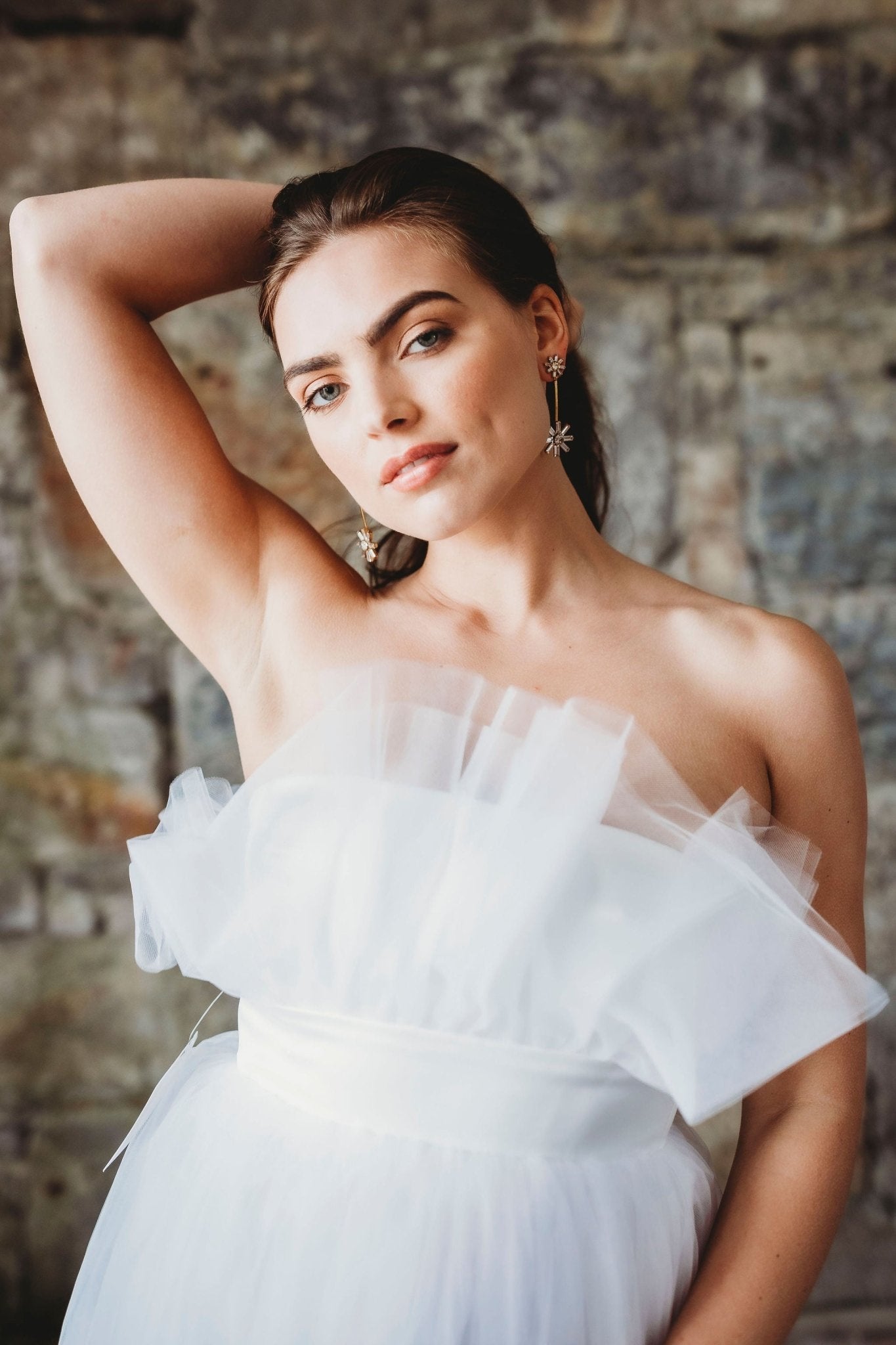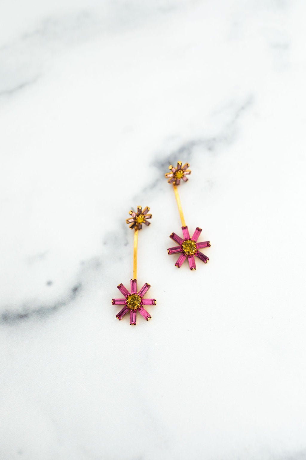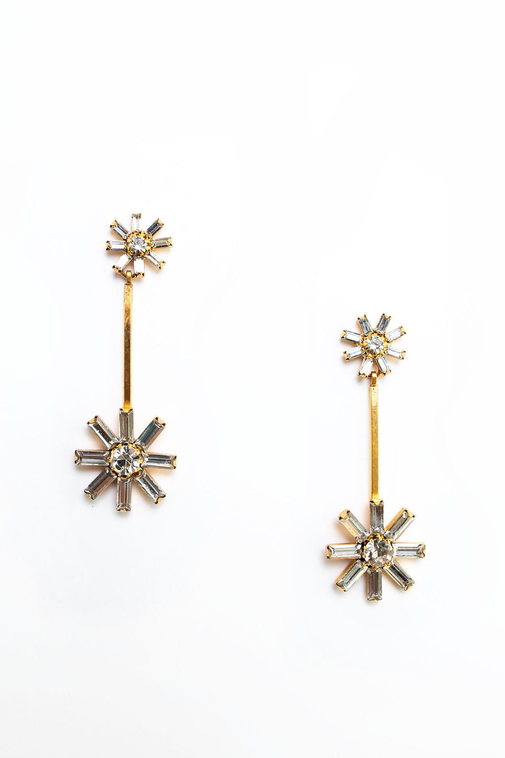 These Saylor Earrings by Elizabeth Cole feature delicate crystal baguette flowers in a lightweight, flirtatious drop design. Perfect for finishing any look with a touch of elegance and sparkle. Proudly made in the USA.