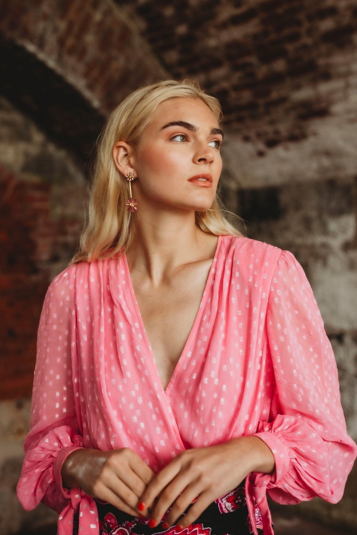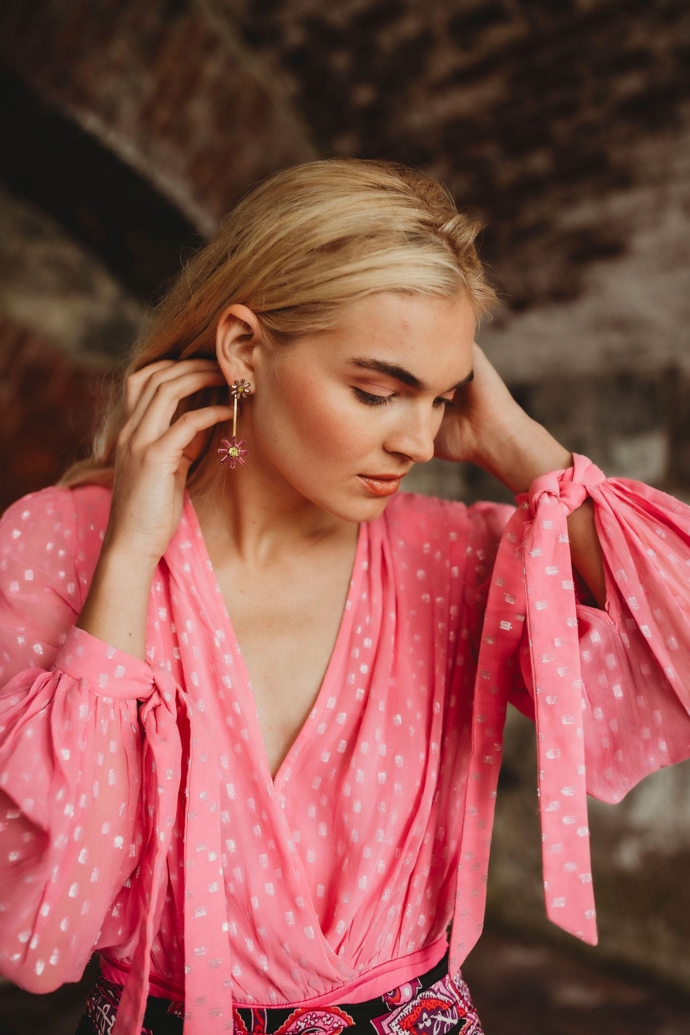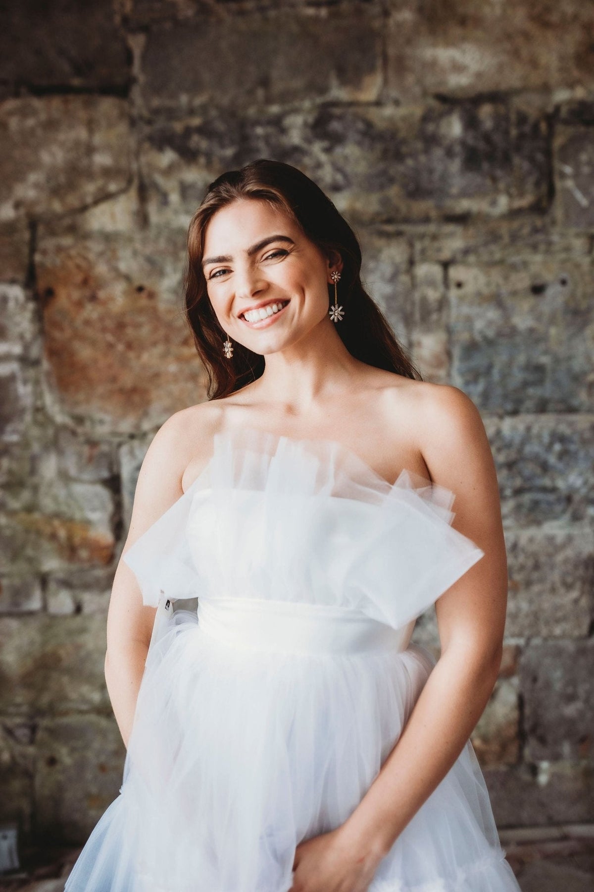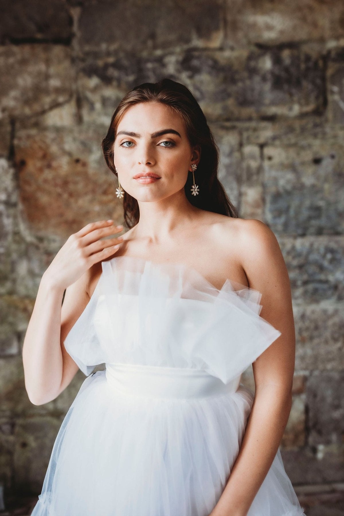 These Saylor Earrings by Elizabeth Cole feature delicate crystal baguette flowers in a lightweight, flirtatious drop design. Perfect for finishing any look with a touch of elegance and sparkle. Proudly made in the USA.