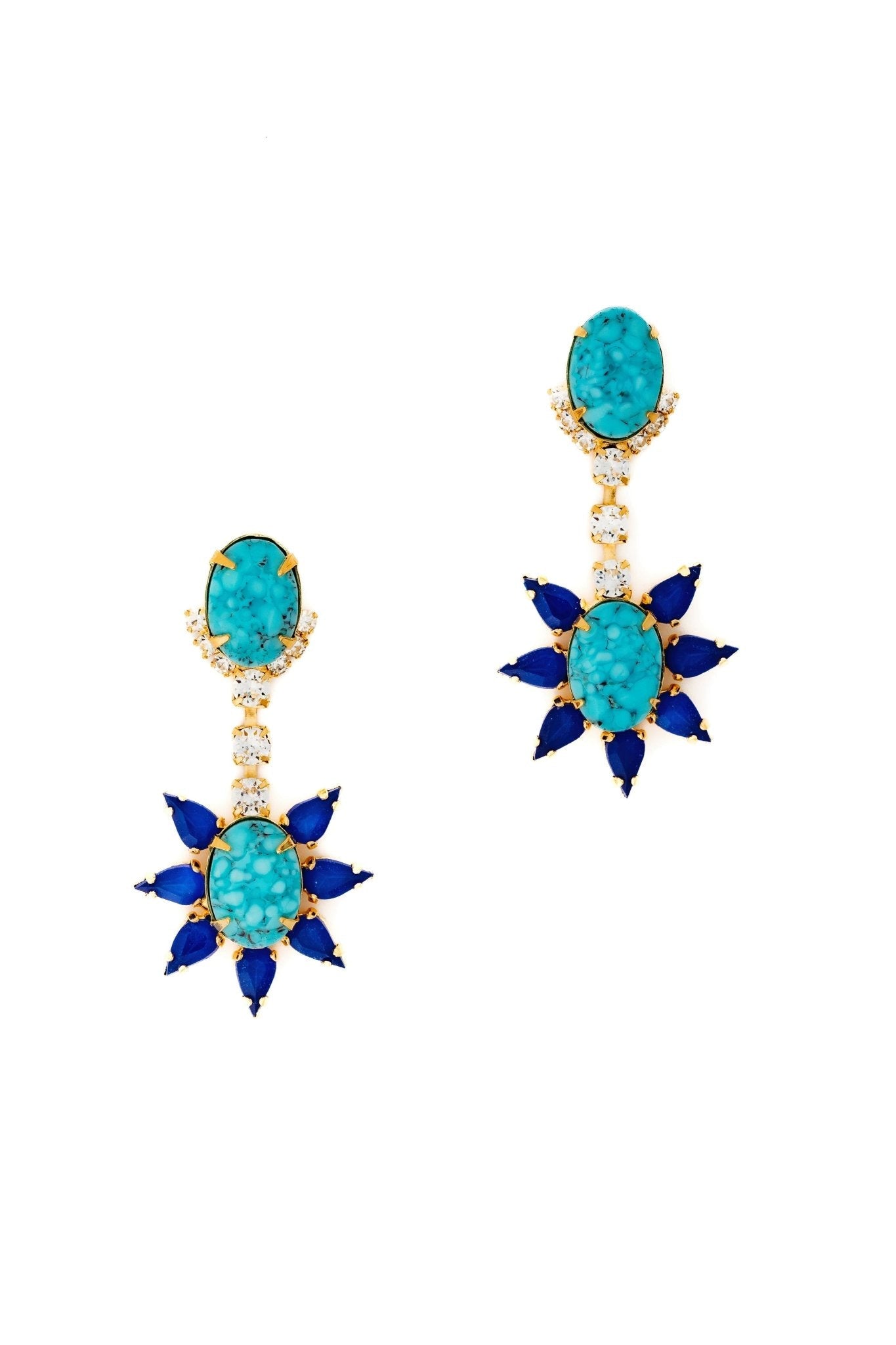 These Seara Earrings by Elizabeth Cole elevate your look with multi-shaped stones in stunning pink and blue shades, accented by a flower detail. These feminine earrings add an elegant touch to any outfit. Proudly made in the USA.