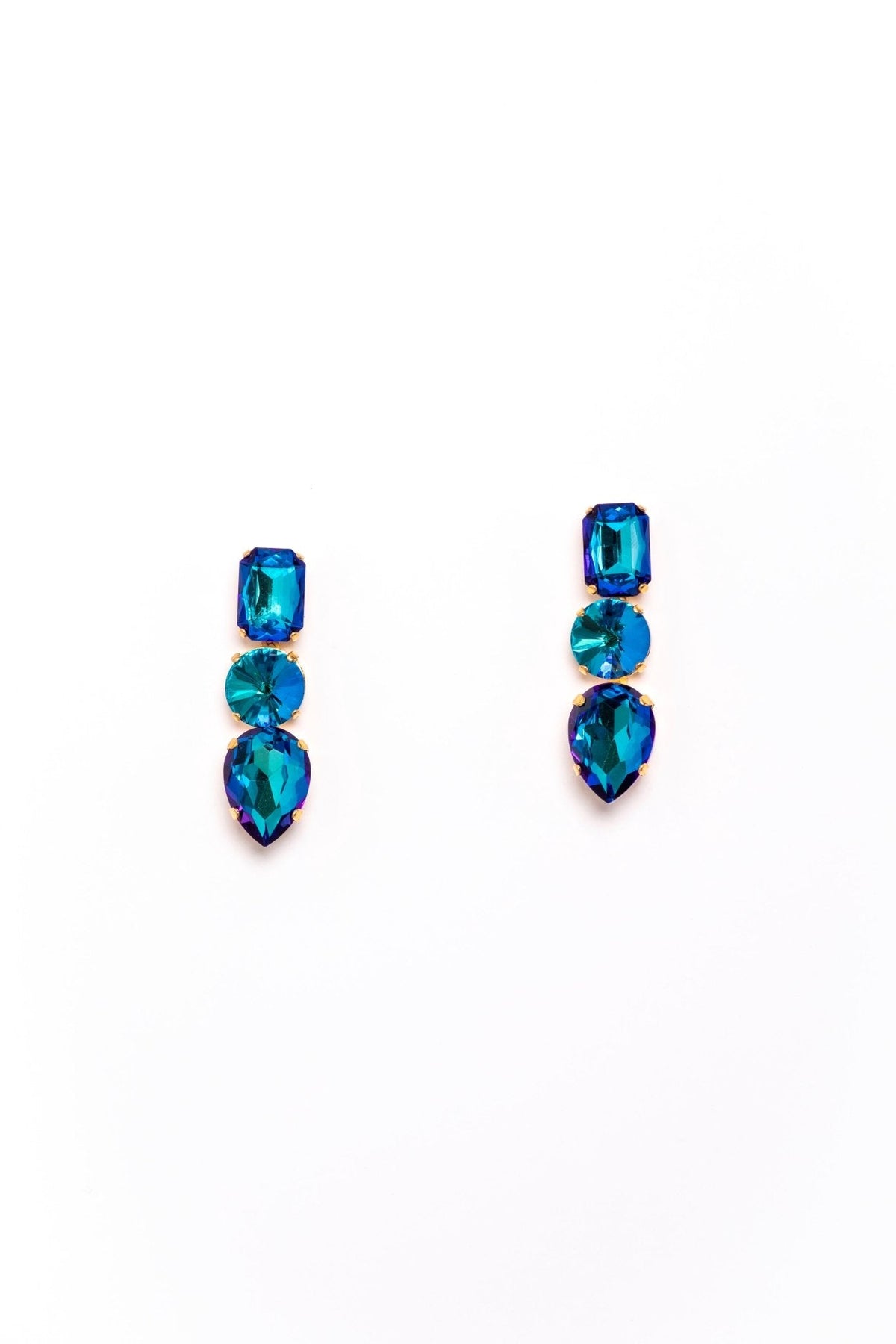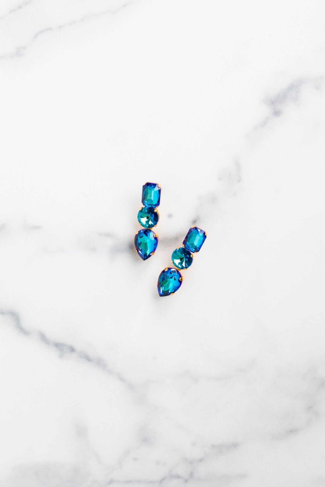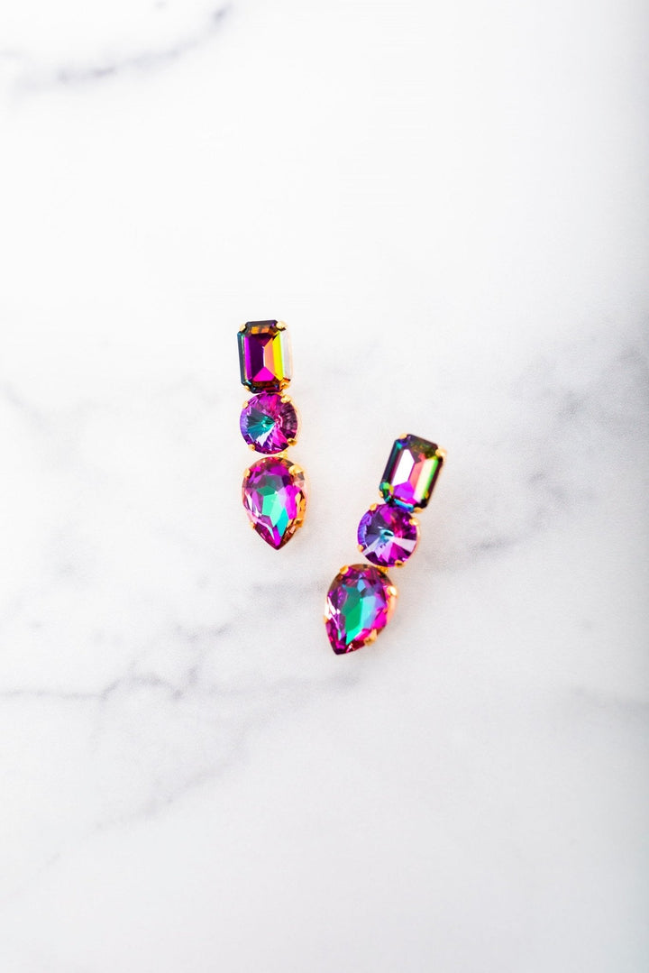 These Shyla Earrings by Elizabeth Cole embrace bold, chunky style with stones in Bermuda blue, deep greens, pinks, or purples. These earrings add a vibrant, statement-making touch to any outfit. Proudly made in the USA.