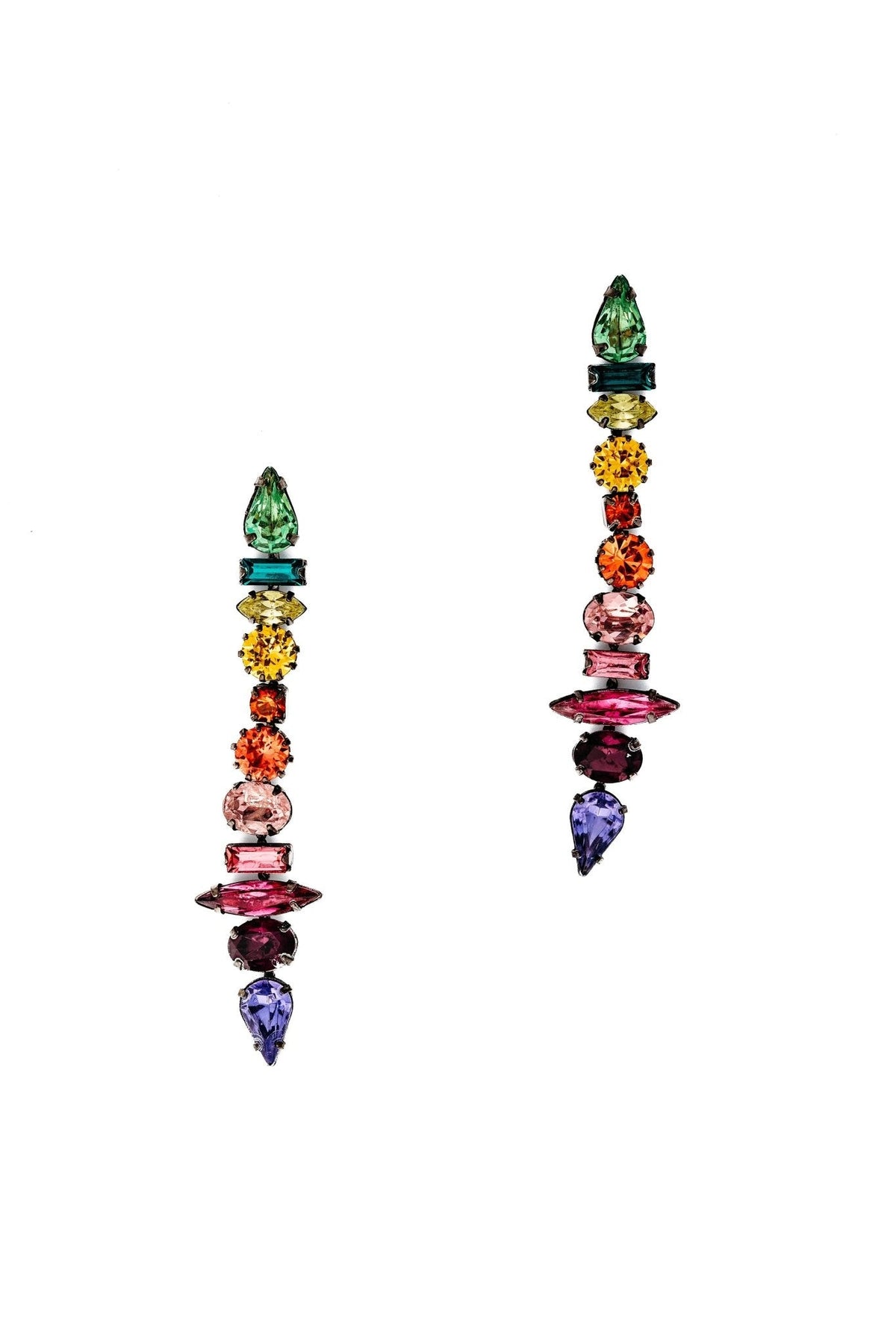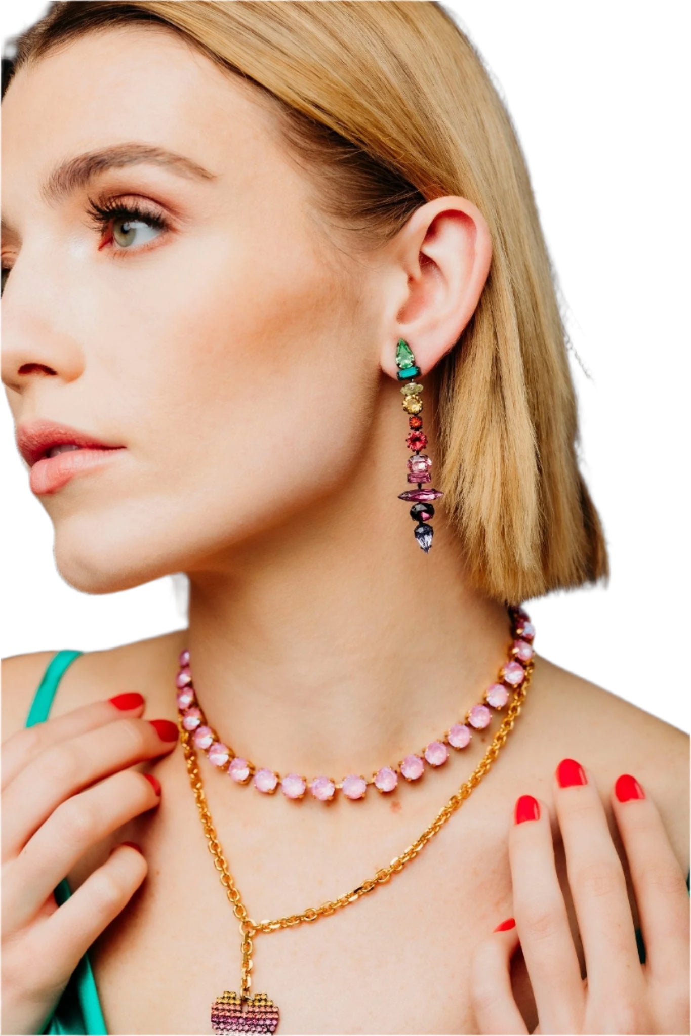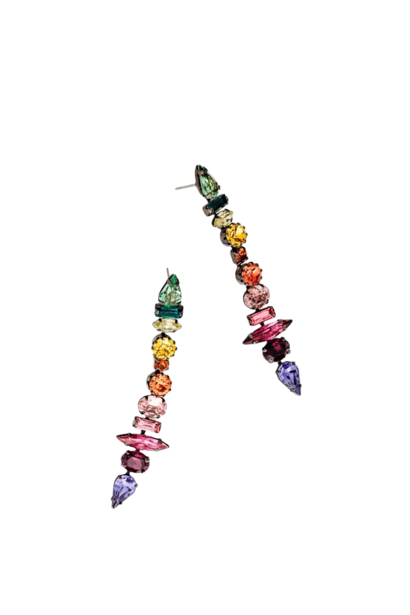 These Starla Earrings by Elizabeth Cole offer an eye-catching update to the classic design, now featuring a kaleidoscope of vibrant rainbow hues. With a unique linear silhouette and different-shaped stones, these earrings brighten any look with their bold and playful charm. Proudly made in the USA, they are perfect for adding a pop of color and personality to your outfit.