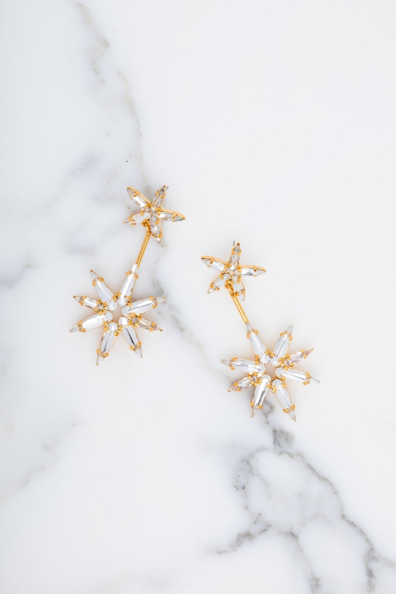 These Starr Earrings by Elizabeth Cole let you shine with glittering graduated stars in premium crystals. These dazzling beauties are perfect for adding glitz and glamour to any outfit. Proudly made in the USA.