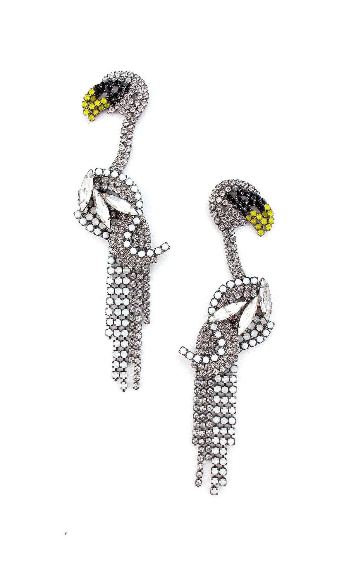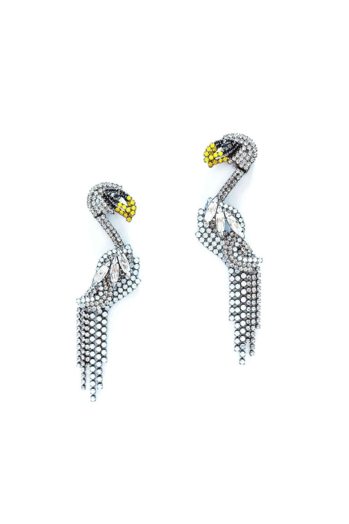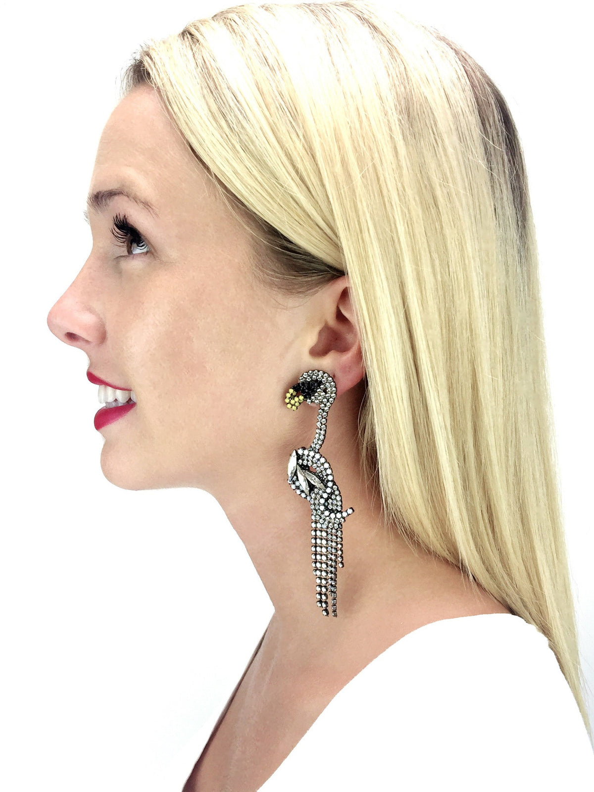 These Svenja Earrings by Elizabeth Cole capture the majesty of the swan with shades of crystal, white, and opalescent stones, featuring bright yellow beaks and brilliant sparkling wings. Proudly made in the USA.
