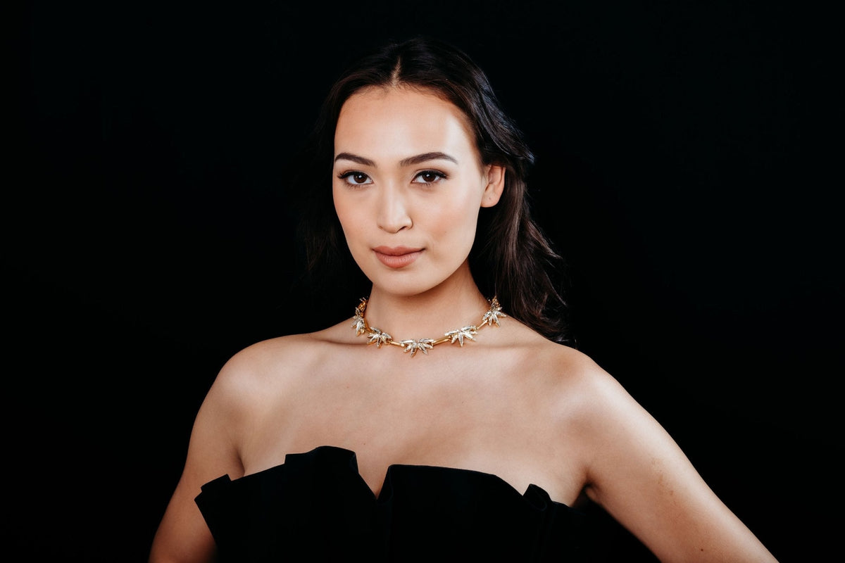 Marquis-cut crystals, 24K gold plate, lobster claw closure, handcrafted in the USA.