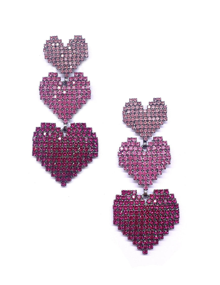 These Valentina Earrings by Elizabeth Cole showcase three sets of graduated hearts in ombre pinks or classic jet, adding a charming and bold touch to your look. These earrings are perfect for expressing love and style. Proudly made in the USA.