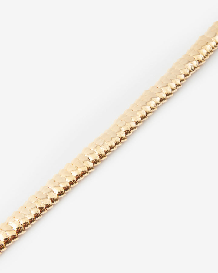 Made from gold-finish brass with scale-shaped metal pieces. Features a spring ring clasp and Isabel Marant engraving.