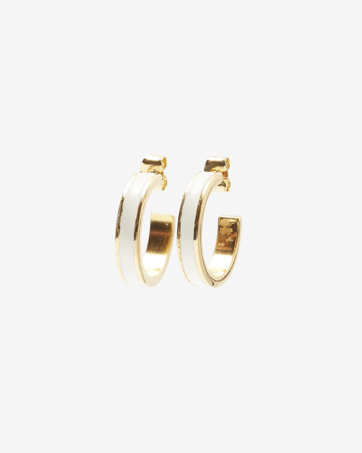 These Casablanca Small Hoop Earrings by Isabel Marant feature elegant gold-tone metal with ecru resin accents. Their understated design adds a touch of sophistication, making them a versatile piece for any occasion.