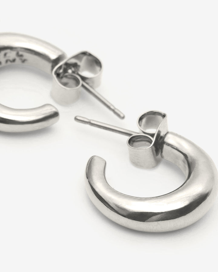 These Saya Earrings by Isabel Marant feature silver-finish brass hoops with a semi-open design, offering a classic yet modern look. Their sleek finish and versatile size make them perfect for both casual and formal outfits.