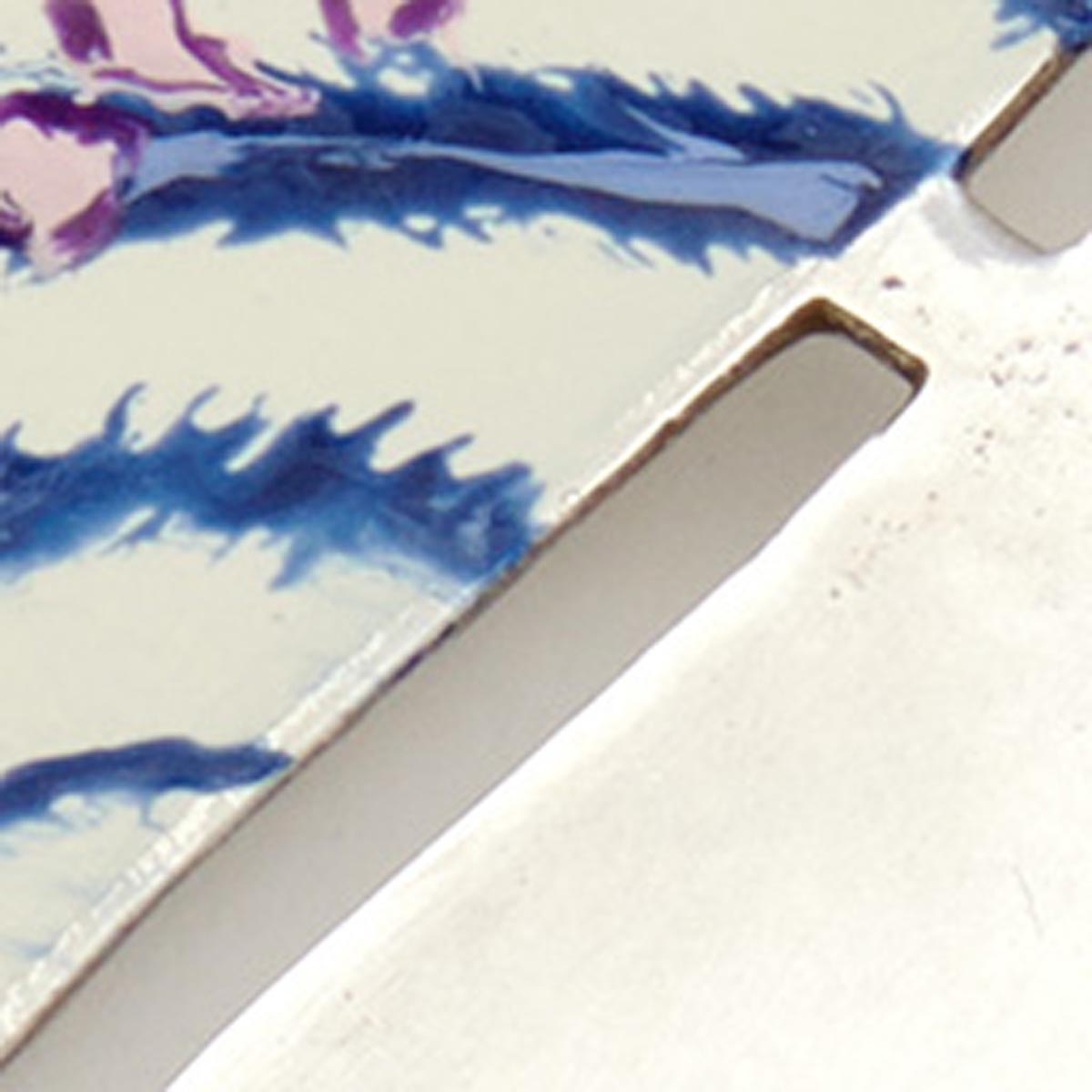 Crafted from silver-finish brass with hand-enameled details. Features a hook clasp.