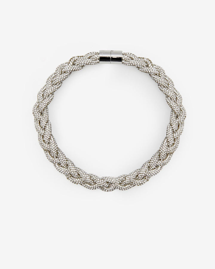 This Yua Choker by Isabel Marant is a braided cotton choker embellished with rhinestones, offering a bold yet elegant design. The silver-finish brass magnetic clasp adds a modern touch, making it perfect for both casual and formal wear.
